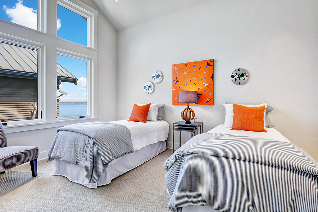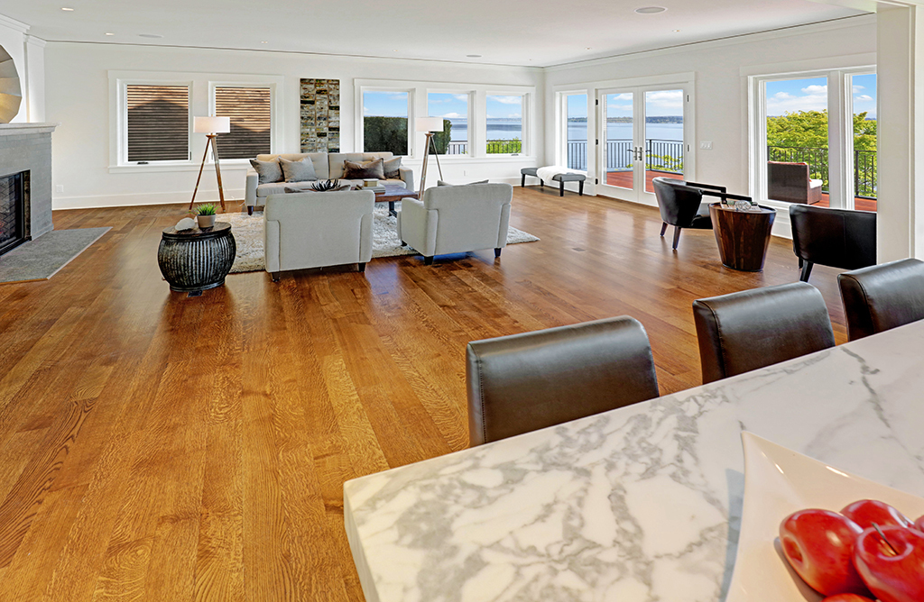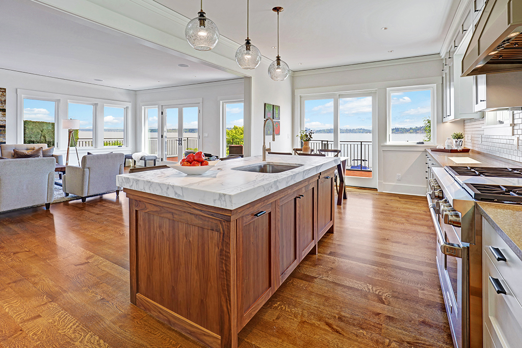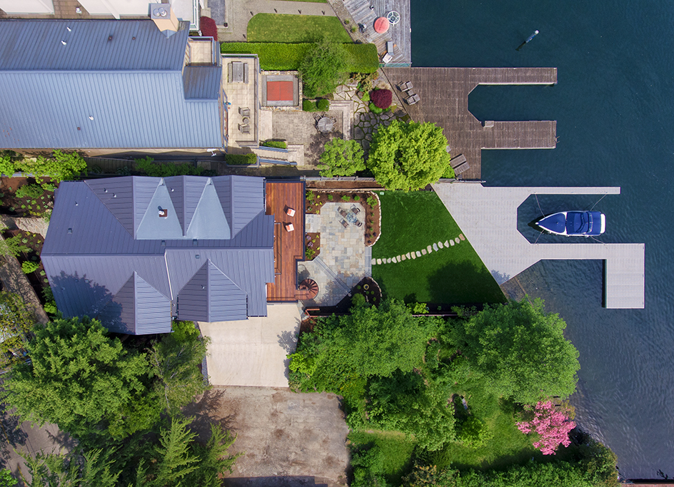 Stunning new construction NW Contemporary home on 45 ft prime waterfront. Grand entry w/ vaulted ceilings, main floor guest suite, chef's gourmet kit w/ marble ctrs, top-end appls, custom cabts, frml dining w/ built in wet bar, huge lvng rm opens to entertainment size deck, and 4 hrdwd qtr sawn flrs. Lavish master suite w/ marble bath, walk-in closets, 2 addtl bdrms, full bth, and 2nd laundry. Lower level has media rm, wine cellar, exercise rm, great rm, tons of storage. Stylish and sophisticated!