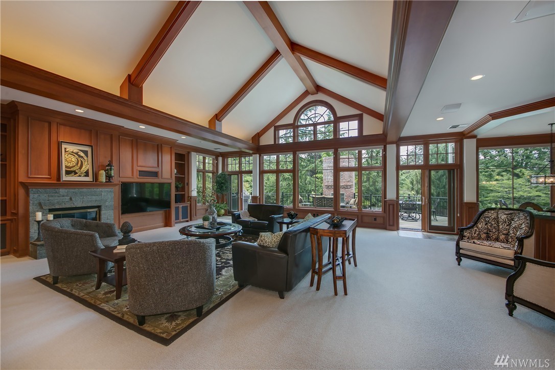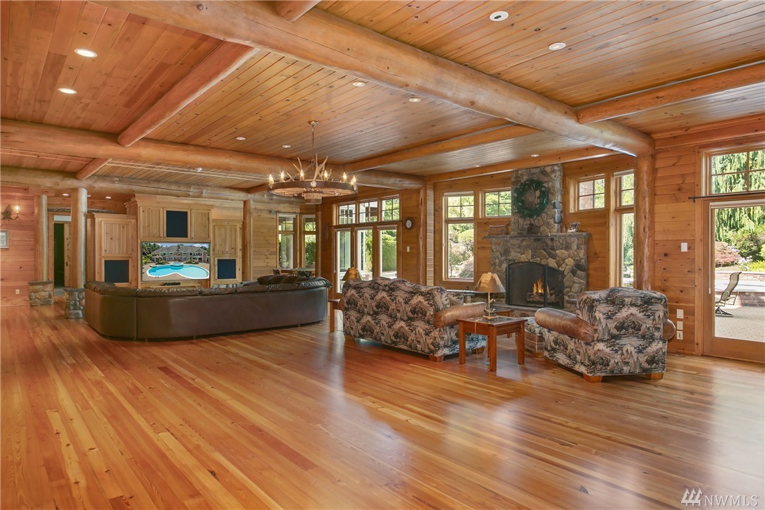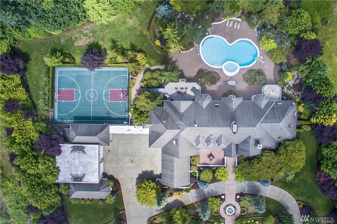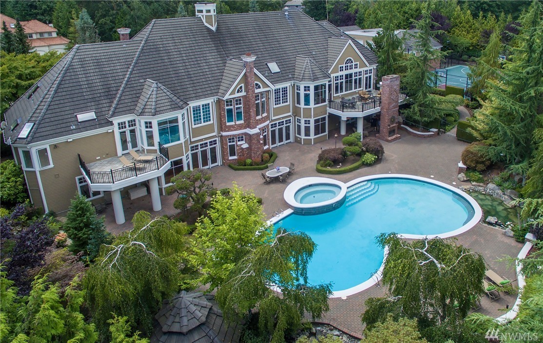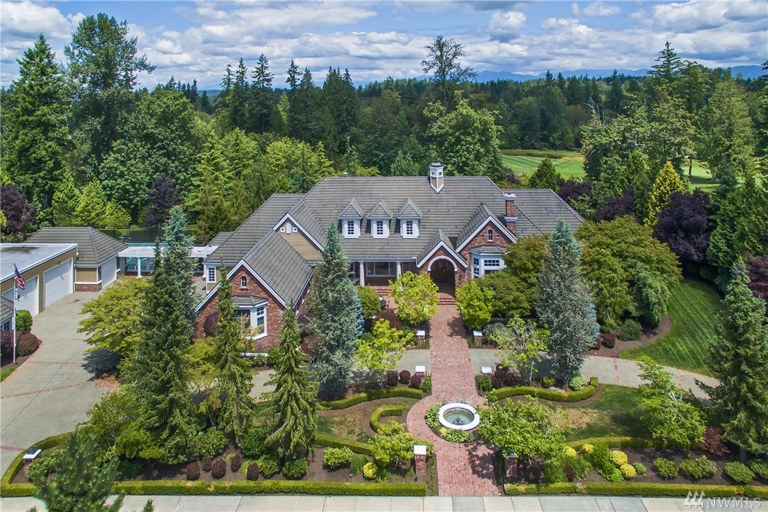 Enveloped by lush PNW greenery this prized Windsor Greens estate exudes rustic elegance as well as all the necessary modern comforts. From the generous living spaces, to the organic materials, this home is perfect for entertaining. Custom millwork and warm hues invite you to explore the spacious living spaces boasting heated natural hardwood floors, wainscoting, crown molding, barrel ceilings and chandeliers. Host large gatherings poolside in the secluded outdoor oasis complete with hot-tub, sports court, fountains, waterfalls, fire-pit, fireplace, gazebo and outdoor kitchen with granite counters and Viking gas BBQ nestled on a lush 1.77 acres. Remodeled kitchen with epicurean finishes including granite slab counters, Viking gas range, Sub-Zero refrigerator, Bosch double-ovens, wine cooler and a walk-in pantry. Elegant main floor master suite with light and bright sitting area, spa like 5-piece bath with jetted tub, luxe shower, custom walk-in closet and a private balcony overlooking the perfectly manicured grounds. Five additional spacious bedrooms including two ensuite bedrooms and lower-level guest suite with built-in desk. The lower level also includes a fully-equipment second kitchen with granite counters, gas range, beer tap & wine cooler. Other notable spaces; billiards room, gym and movie theatre with surround-sound. The blending of the lower level entertainment center and the outdoor pool create the ultimate luxury lifestyle experience. Sprawling grounds with portico extending from home to second garage with a total of ten garage spaces and two tall bays for RV’s or boats. Ideal home amenities include air conditioning, radiant floor heating and Control 4 automation for easy control of interior/exterior music, cameras and temperature. Situated on a secluded lot with quick access to the 13th hole, parks and award winning Issaquah Schools, including sought-after Skyline High School. Incomparable Sammamish estate with rich interior tones radiating luxury living. Don't miss the 3D home tour link.