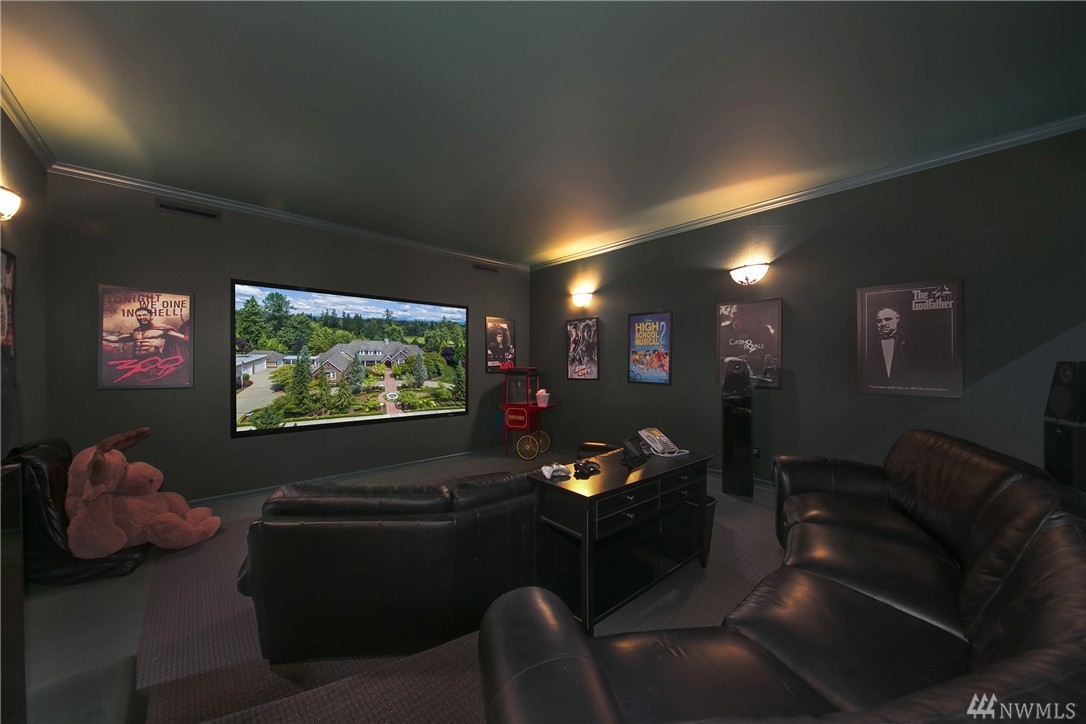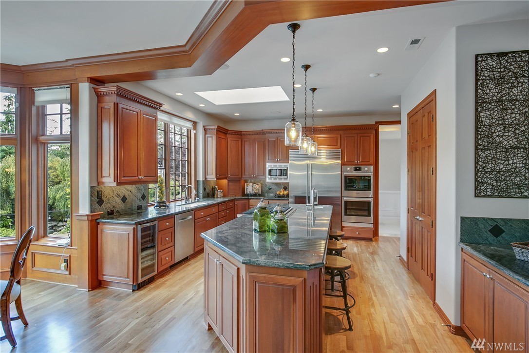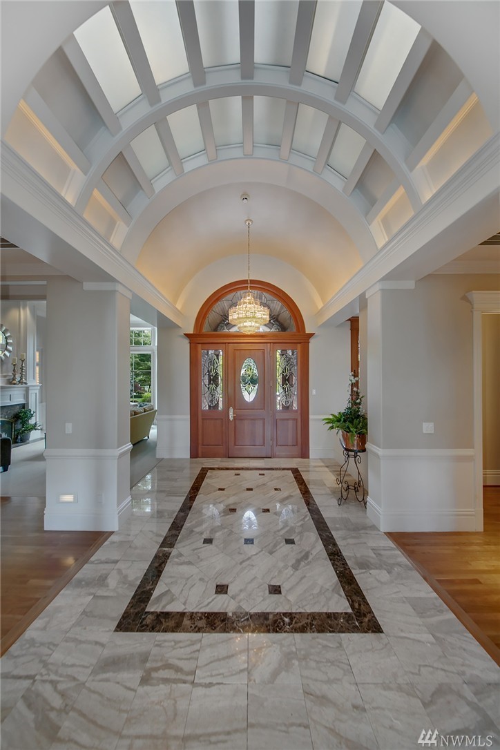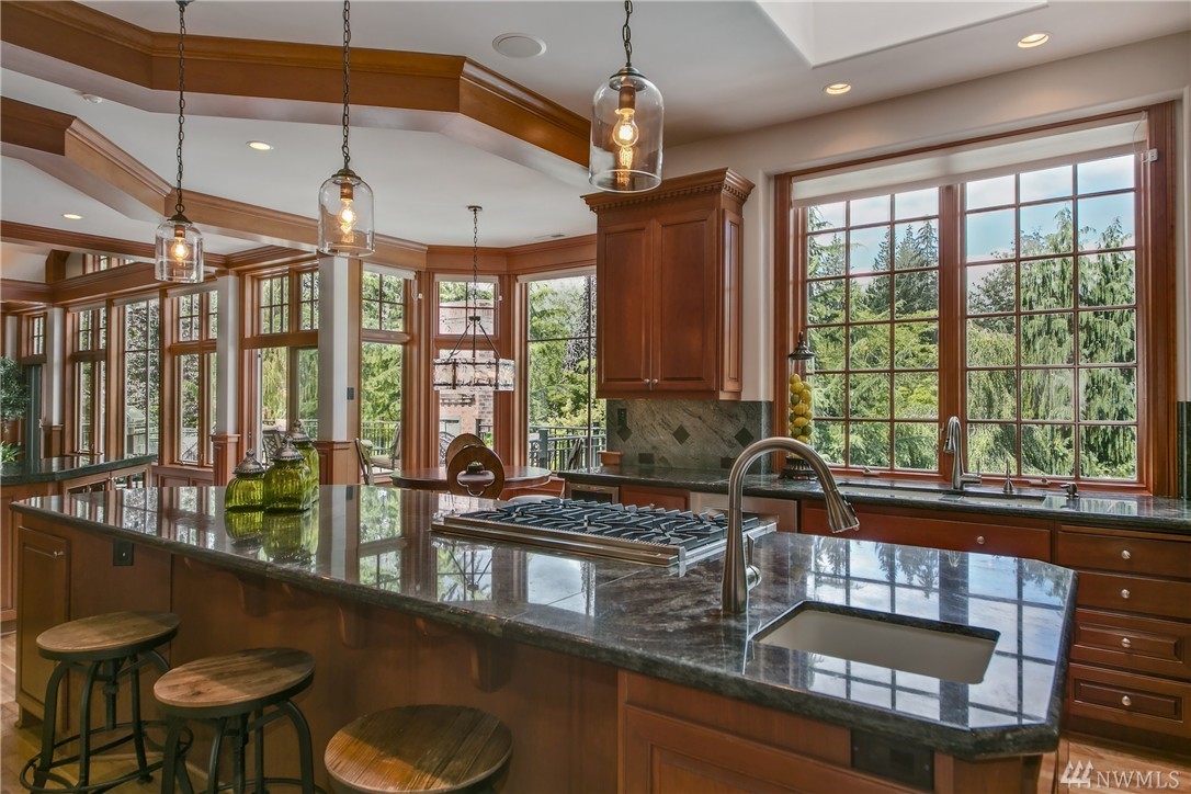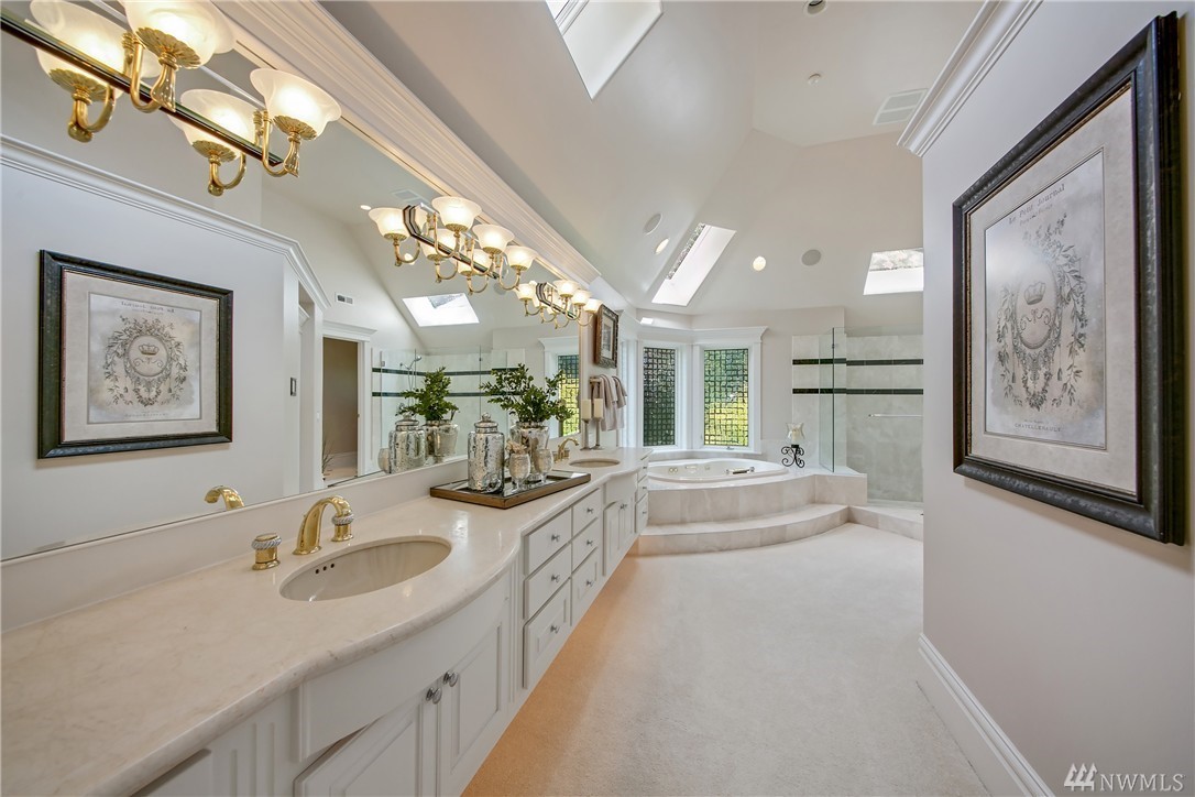 Enveloped by lush PNW greenery this prized Windsor Greens estate exudes rustic elegance as well as all the necessary modern comforts. From the generous living spaces, to the organic materials, this home is perfect for entertaining. Custom millwork and warm hues invite you to explore the spacious living spaces boasting heated natural hardwood floors, wainscoting, crown molding, barrel ceilings and chandeliers. Host large gatherings poolside in the secluded outdoor oasis complete with hot-tub, sports court, fountains, waterfalls, fire-pit, fireplace, gazebo and outdoor kitchen with granite counters and Viking gas BBQ nestled on a lush 1.77 acres. Remodeled kitchen with epicurean finishes including granite slab counters, Viking gas range, Sub-Zero refrigerator, Bosch double-ovens, wine cooler and a walk-in pantry. Elegant main floor master suite with light and bright sitting area, spa like 5-piece bath with jetted tub, luxe shower, custom walk-in closet and a private balcony overlooking the perfectly manicured grounds. Five additional spacious bedrooms including two ensuite bedrooms and lower-level guest suite with built-in desk. The lower level also includes a fully-equipment second kitchen with granite counters, gas range, beer tap & wine cooler. Other notable spaces; billiards room, gym and movie theatre with surround-sound. The blending of the lower level entertainment center and the outdoor pool create the ultimate luxury lifestyle experience. Sprawling grounds with portico extending from home to second garage with a total of ten garage spaces and two tall bays for RV’s or boats. Ideal home amenities include air conditioning, radiant floor heating and Control 4 automation for easy control of interior/exterior music, cameras and temperature. Situated on a secluded lot with quick access to the 13th hole, parks and award winning Issaquah Schools, including sought-after Skyline High School. Incomparable Sammamish estate with rich interior tones radiating luxury living. Don't miss the 3D home tour link.