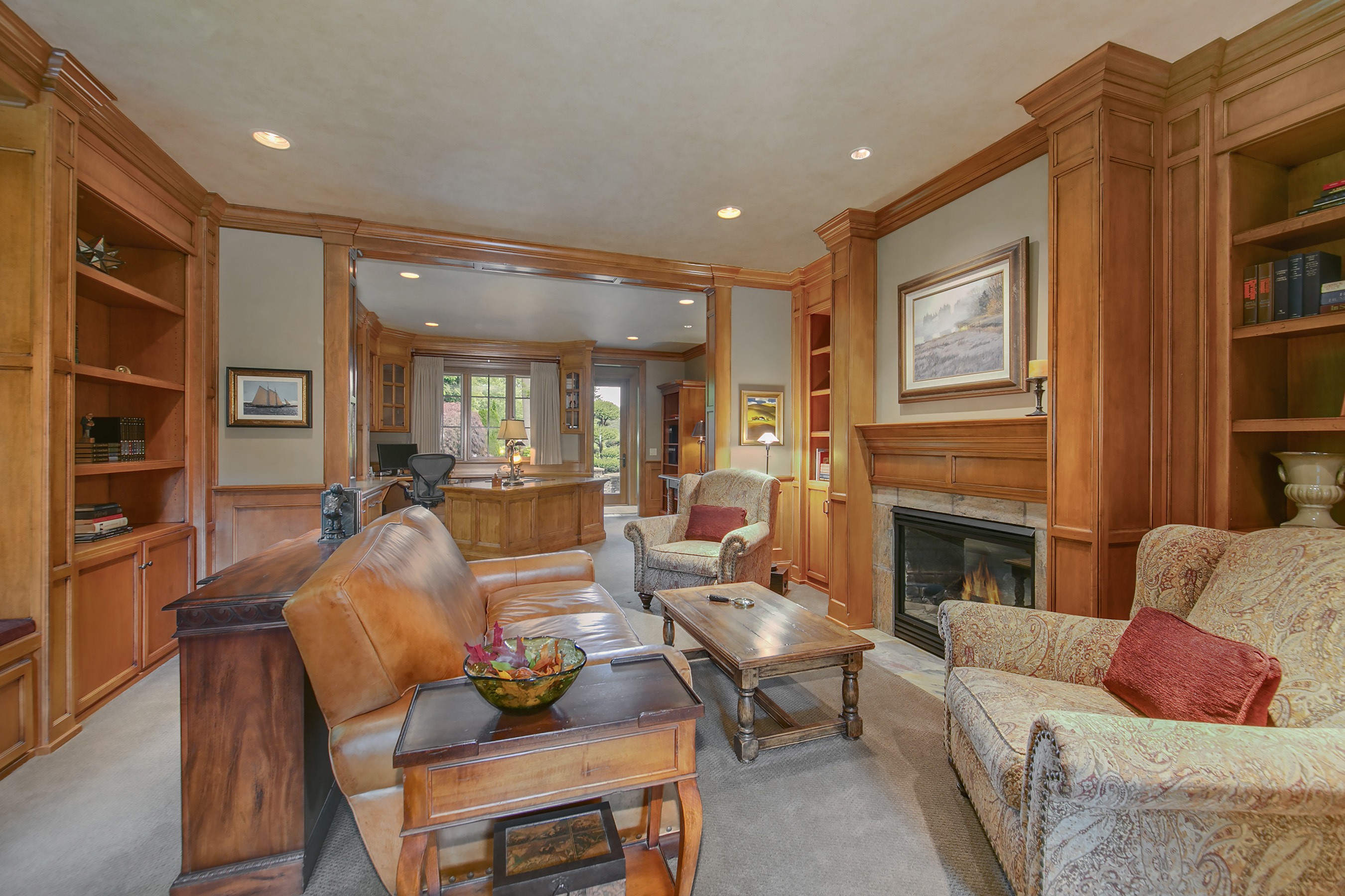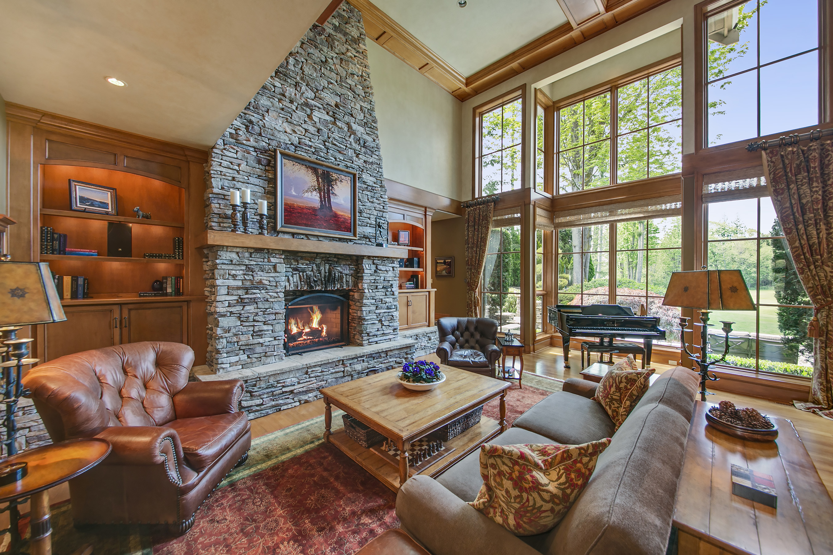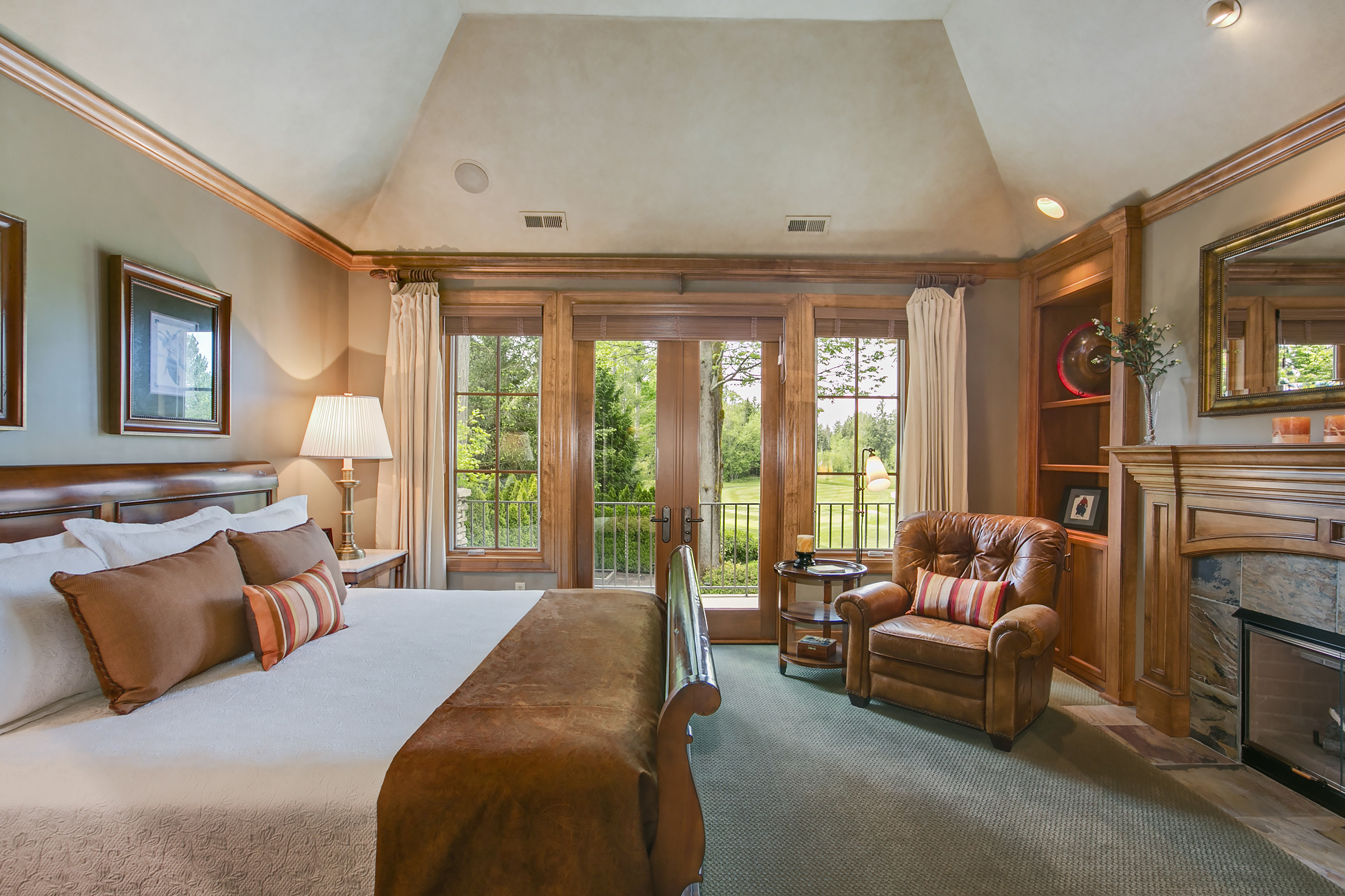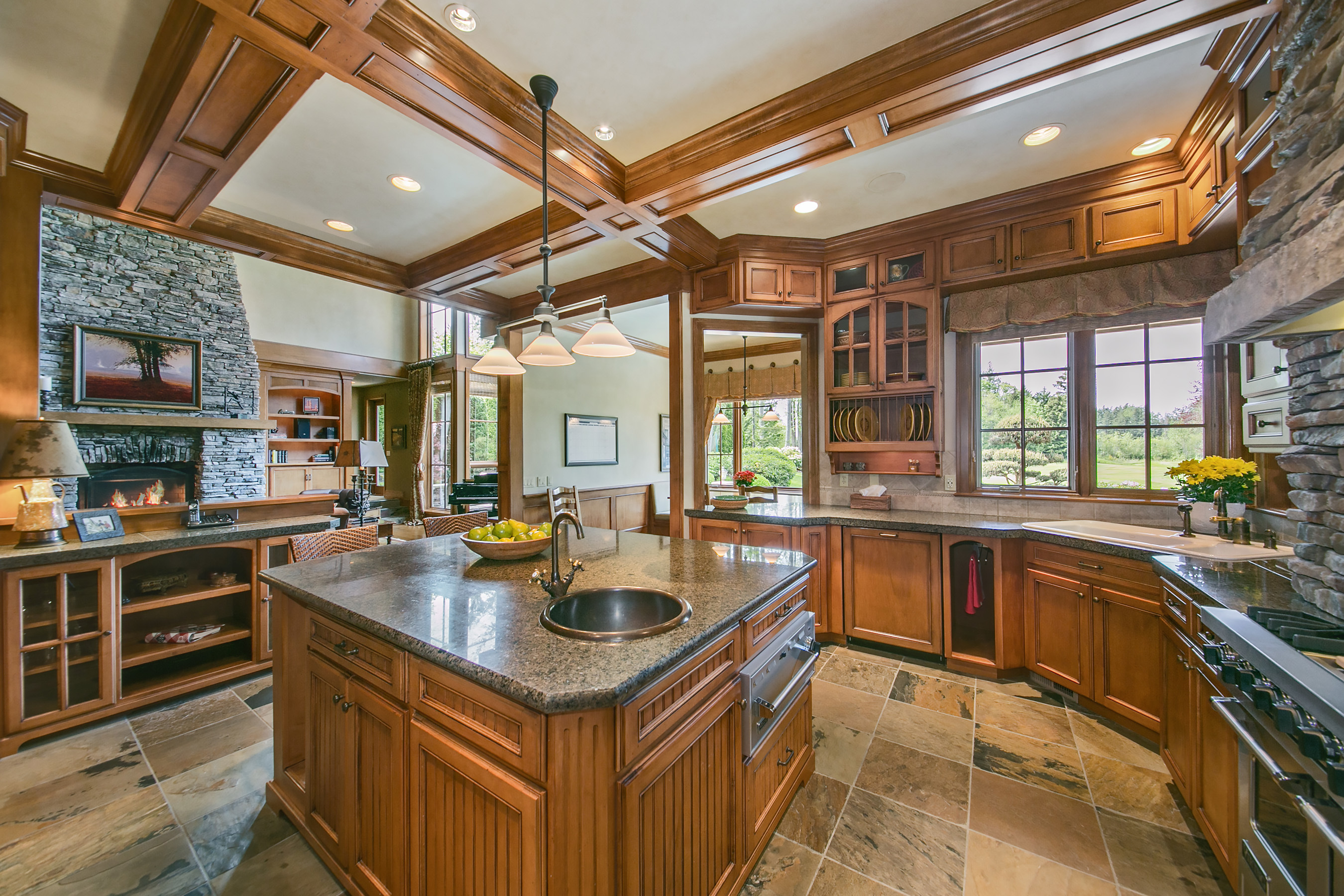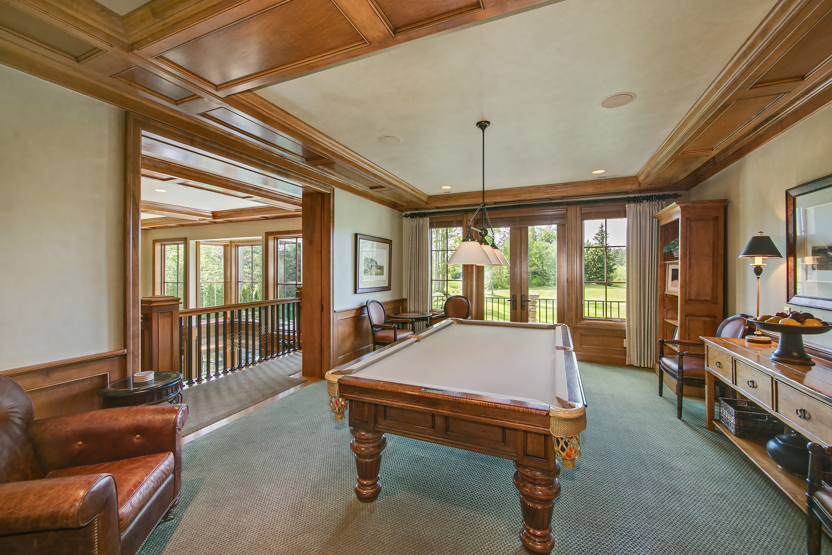 Walk out onto the 12th green from this sophisticated Windsor Greens estate, rich in architectural detailing with soaring coffered ceilings and refined woodwork surrounded by perfectly manicured landscaping. Distinctly NW in character and grand in scale. Chef's kitchen w/Viking gas range, slate floors and granite slab counters. Take in tranquil golf course views and expansive patio from the private master wing w/soaking tub and walk-in shower. Spacious lower level complete w/game rm and wine cellar.