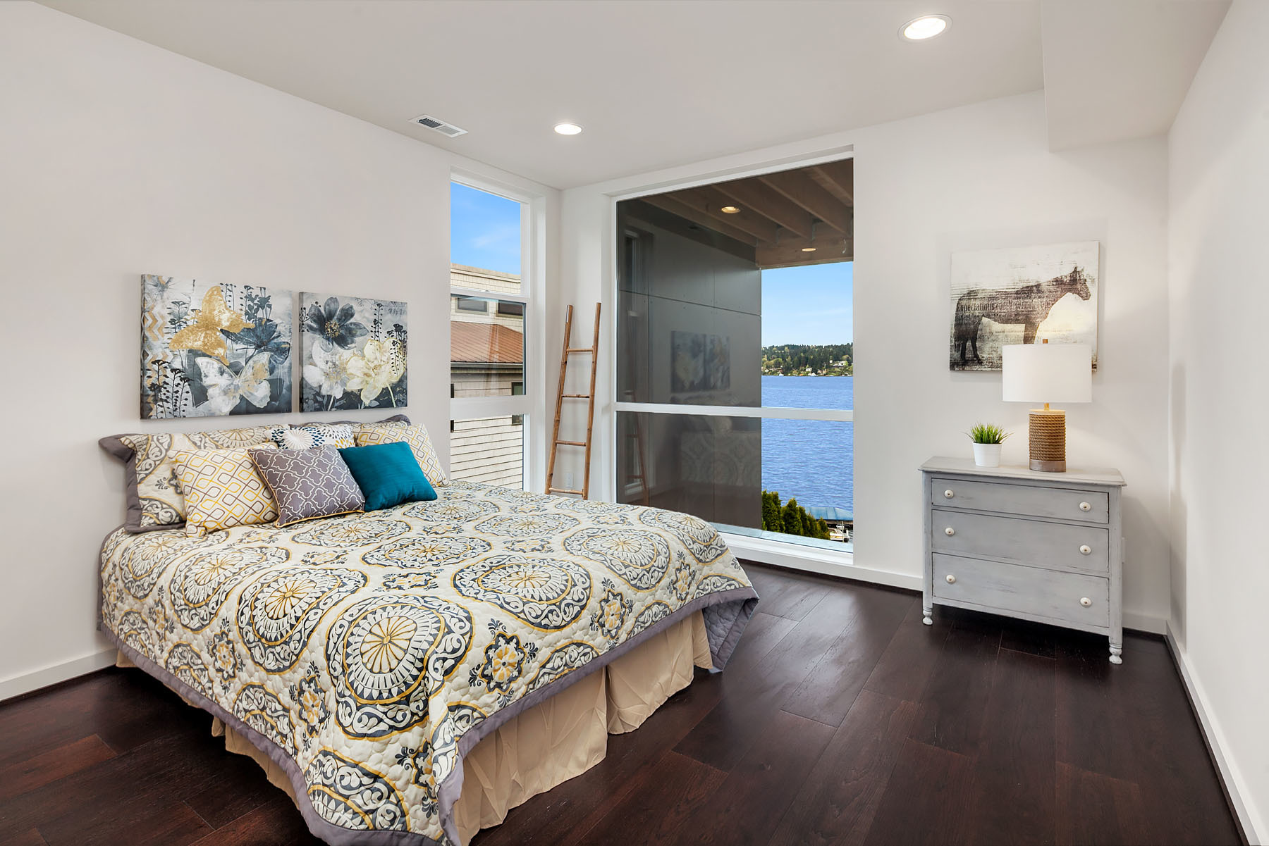 Wonderful waterfront new construction modern is unique from it's counterpart. This property has an entertainers dream kitchen and great room with direct access to the covered deck. There is a mudroom and an office on this floor. The over the top, gorgeous, master suite has remarkable views, enviable closet and stunning bathroom. The lowest level is all about optimizing the lake views from the covered patio. Shared dock with deeded slip. There is potential to build a boat house as well.