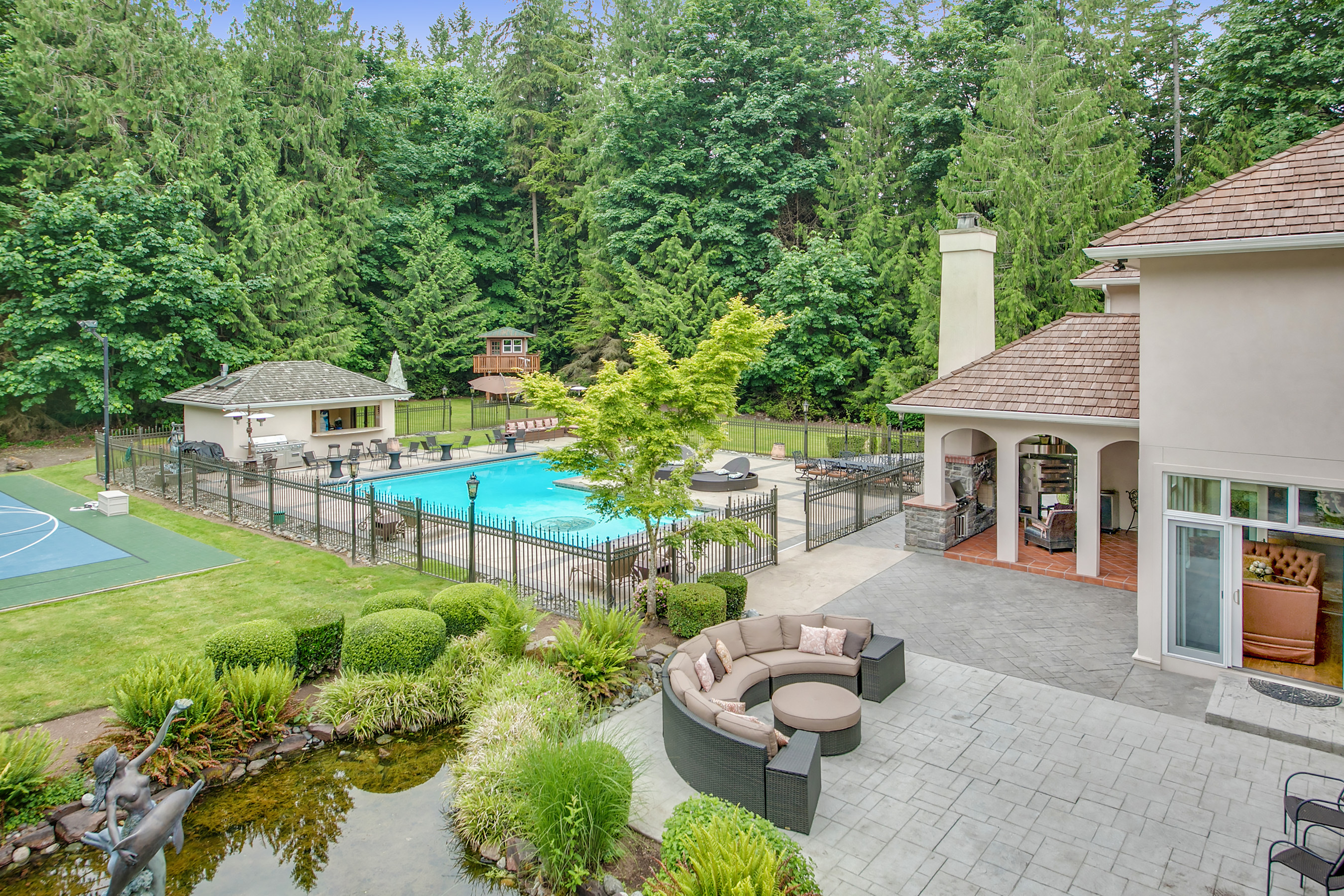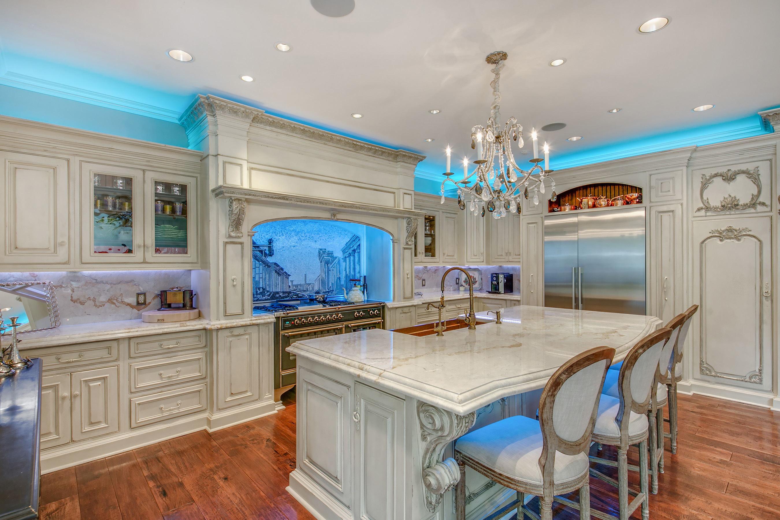 Old World elegance meets luxury dream home in this palatial masterpiece. Cathedral ceilings, interior columns and hand-painted murals transport you to the Tuscan countryside while the home theater, gym, sports court and sauna radiate luxury. Relax poolside from your private outdoor oasis w/ entertainers veranda, 2nd kitchen and 3.94 acres of lush grounds. Epicurean kitchen w/ Italian range, mosaic tile, granite and butlers pantry/wine cellar. Master suite w/ luxe bath and private balcony. 4 car garage!