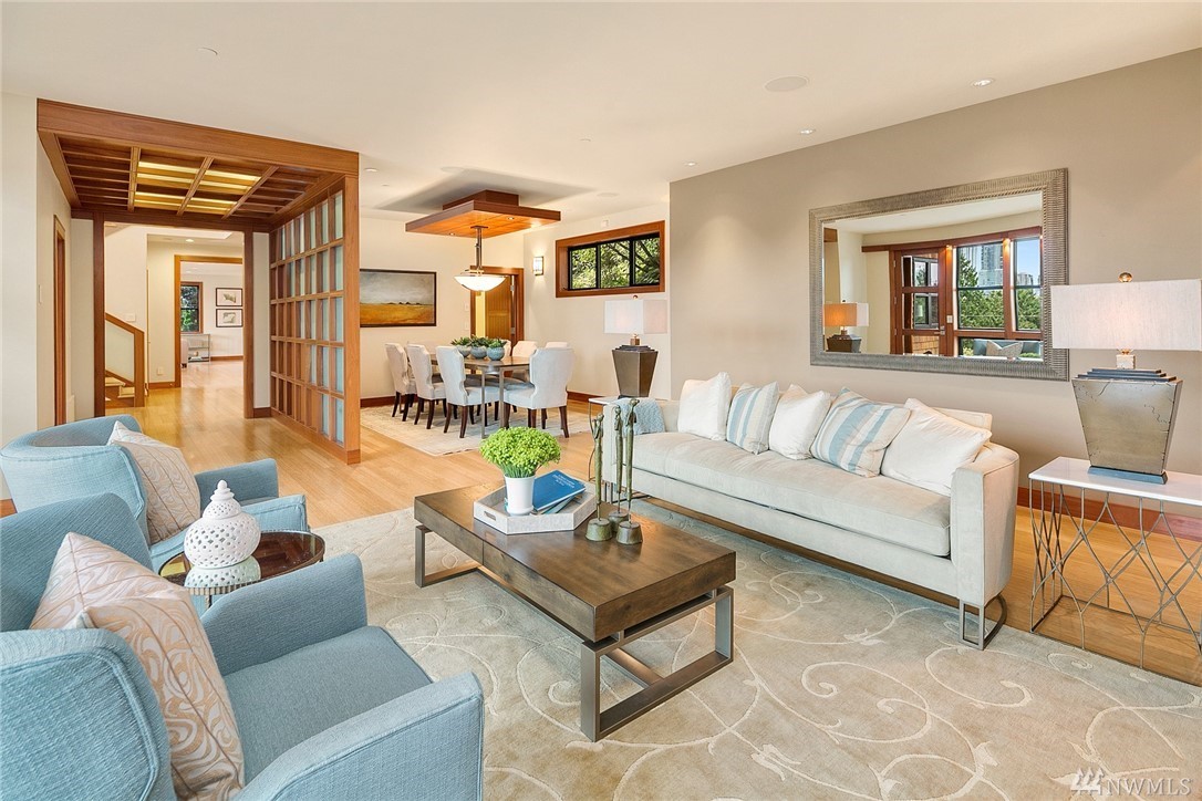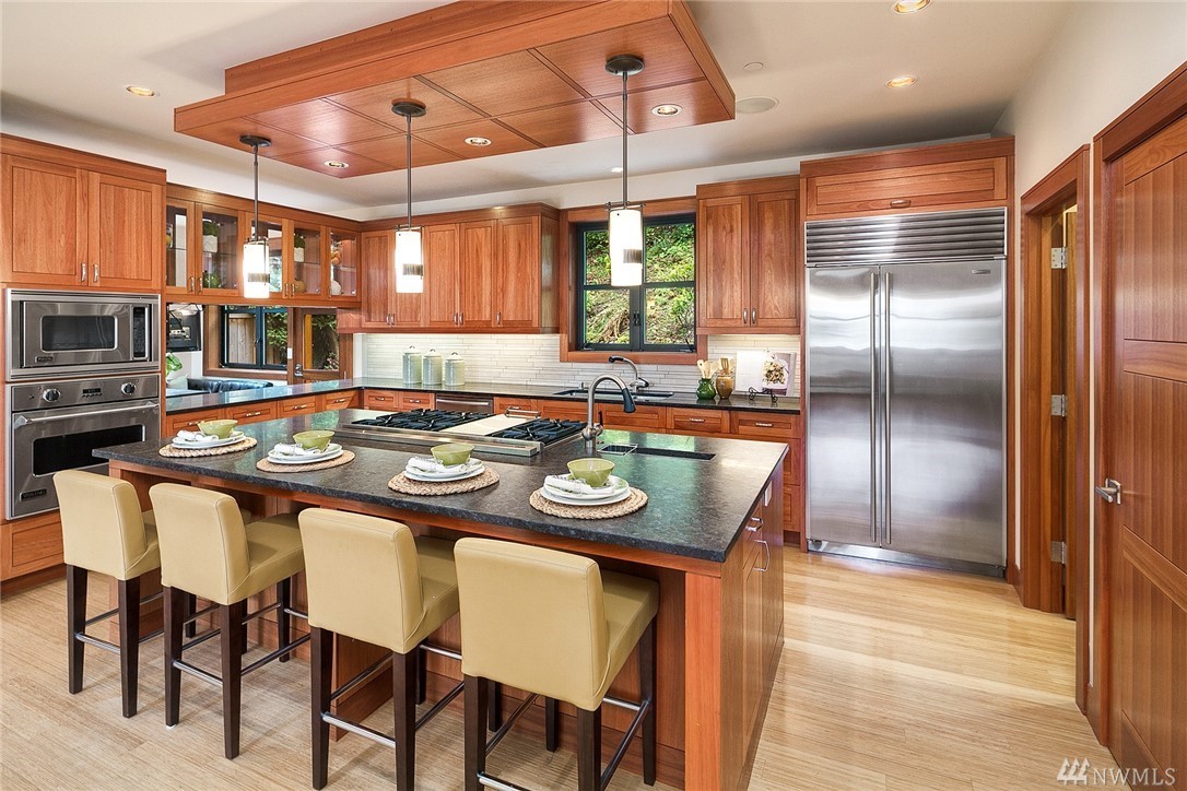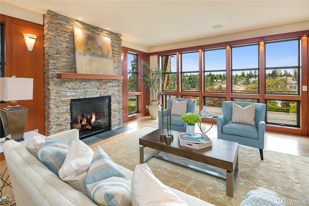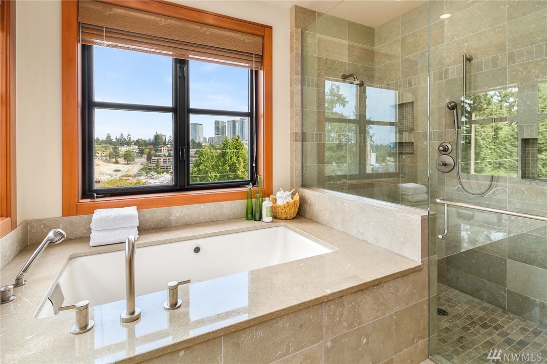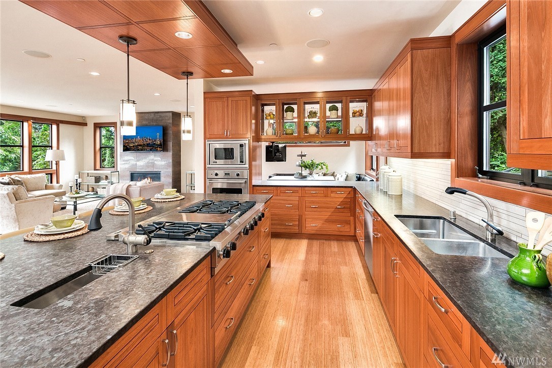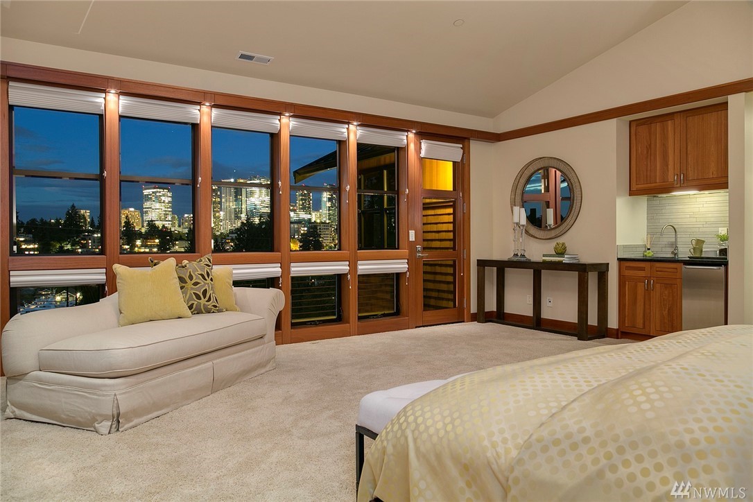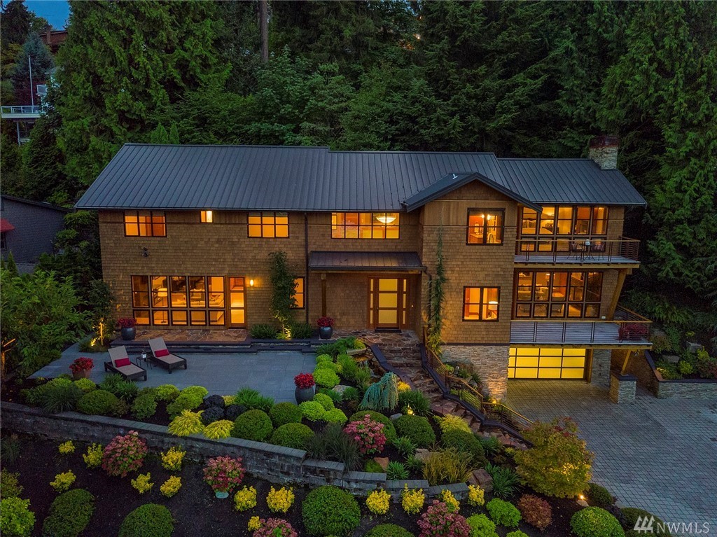 Nestled in the heart of Old Bellevue, this beautiful NW modern home is a designer's dream. Brazilian floors, heated granite island, high-end, furniture-quality millwork, luscious landscaping, waterfalls, and breathtaking views of Bellevue skyline and Meydenbauer Bay create a one of a kind masterpiece. The builder's steel frame construction and attention to aesthetic detail set the stage for a home in harmony w/ nature and the environment. Quiet neighborhood in award winning Bellevue School District.