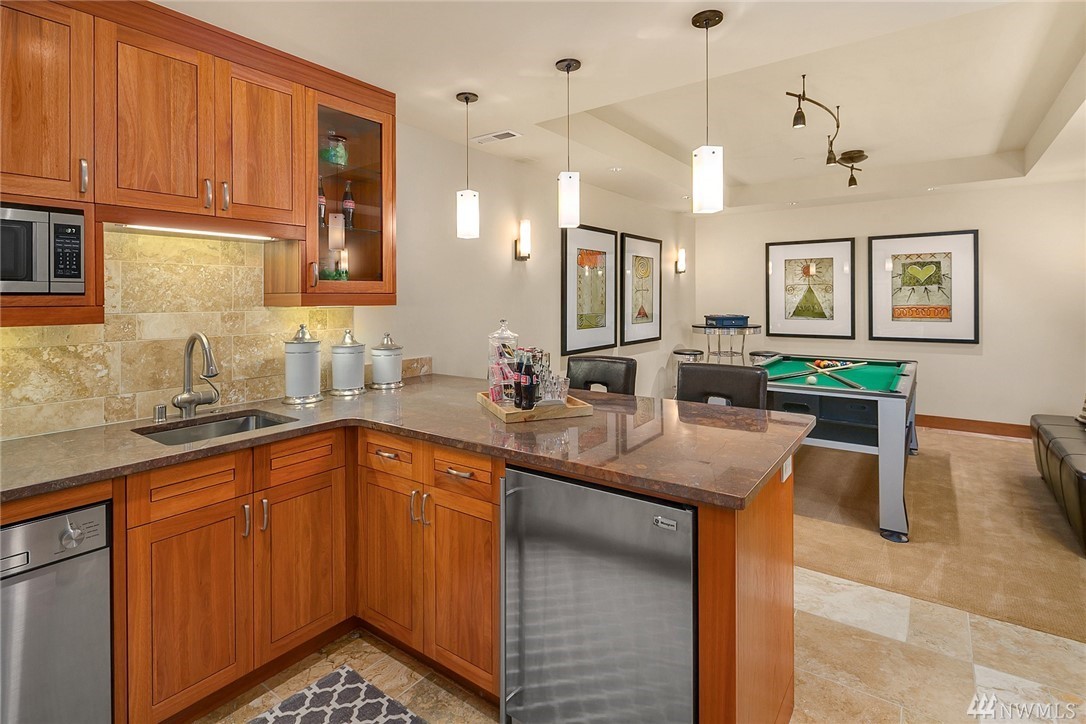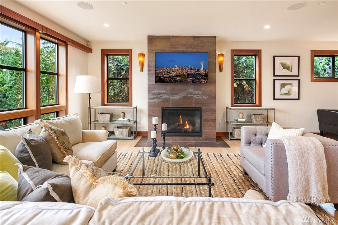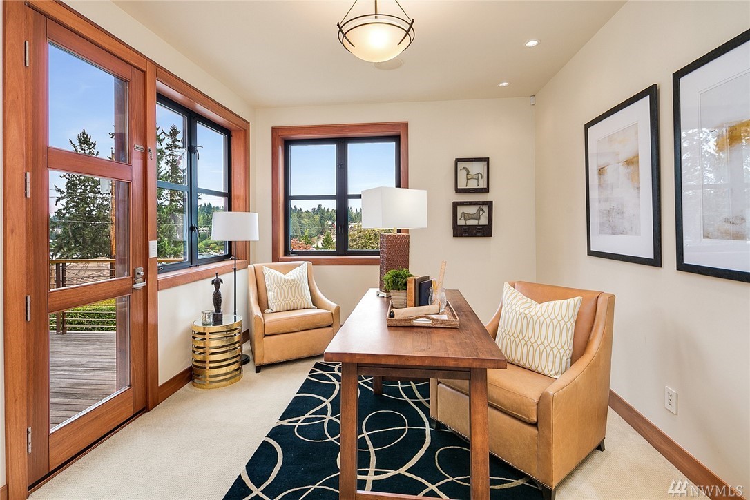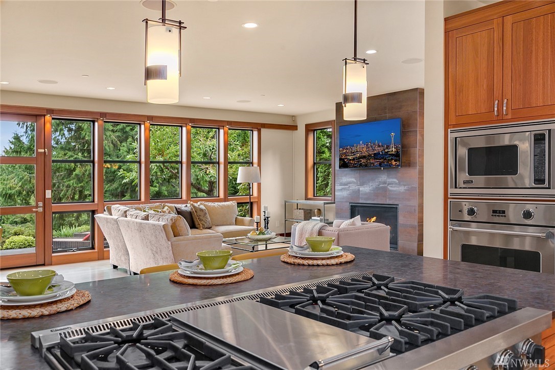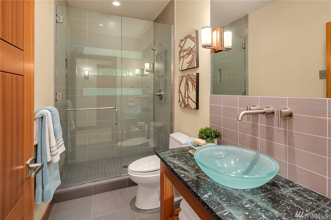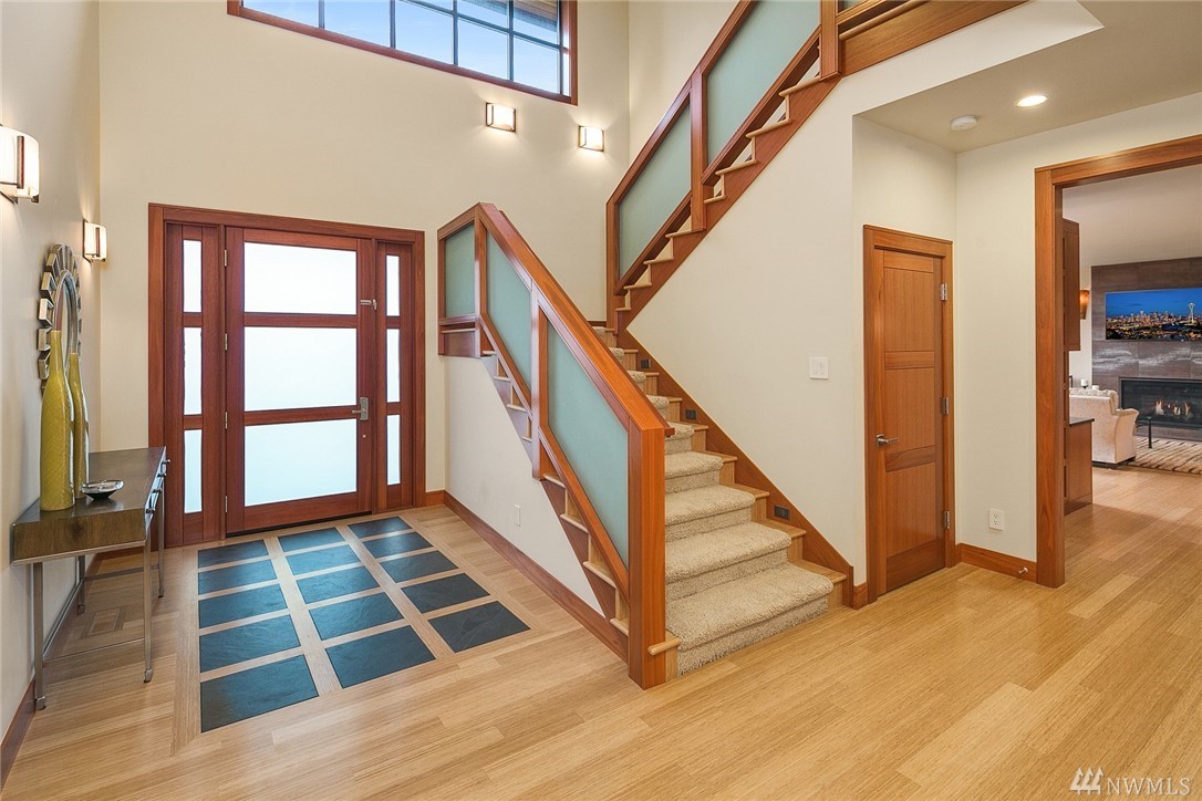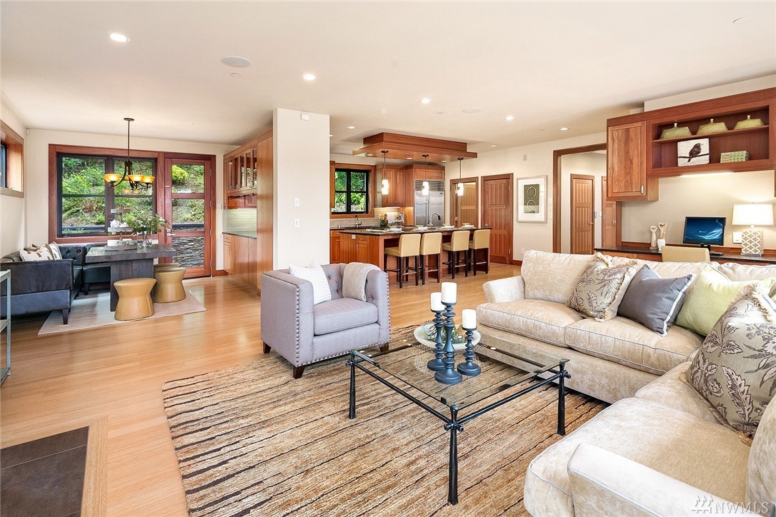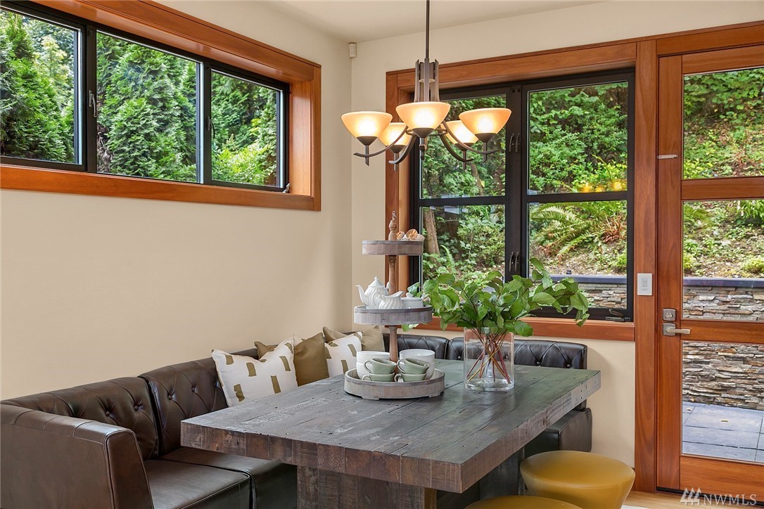 Nestled in the heart of Old Bellevue, this beautiful NW modern home is a designer's dream. Brazilian floors, heated granite island, high-end, furniture-quality millwork, luscious landscaping, waterfalls, and breathtaking views of Bellevue skyline and Meydenbauer Bay create a one of a kind masterpiece. The builder's steel frame construction and attention to aesthetic detail set the stage for a home in harmony w/ nature and the environment. Quiet neighborhood in award winning Bellevue School District.