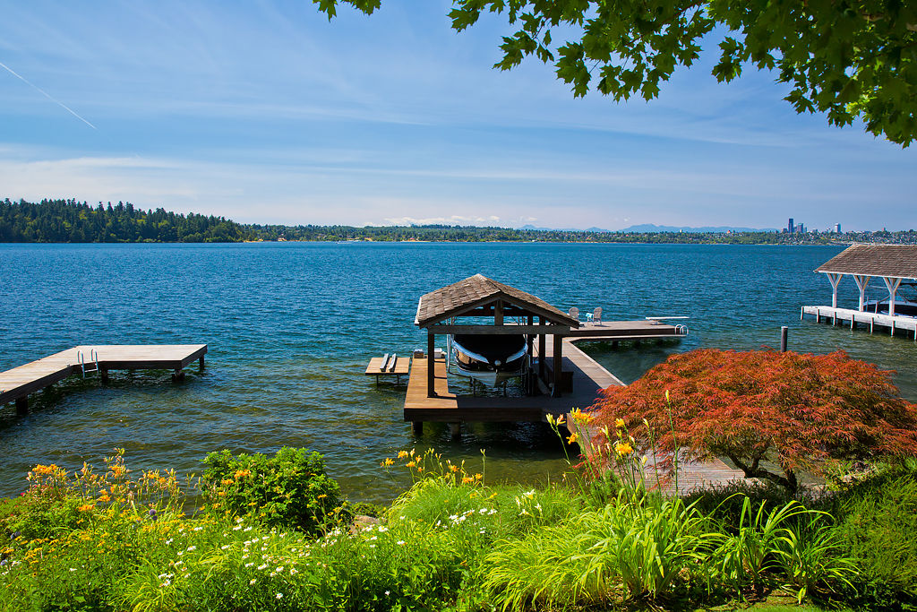 Offered for the first time, this private and sophisticated estate exemplifies timeless Northwest elegance. Custom built and perfectly sited on 130 ft of prime westside waterfront to capture stunning views of Seattle skyline, mountains and lake along w/ breathtaking sunsets. Exquisite amenities and finishes: VG fir millwork, Pennsylvania blue stone, 2 ironwood docks and boathouse, exercise pavilion, wine cellar, sport court, guest house, outdoor kitchen and glorious landscaping. A truly exceptional retreat.