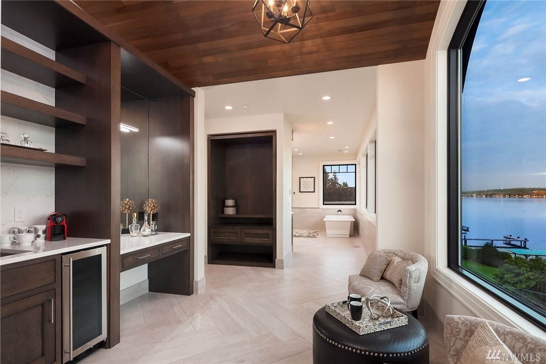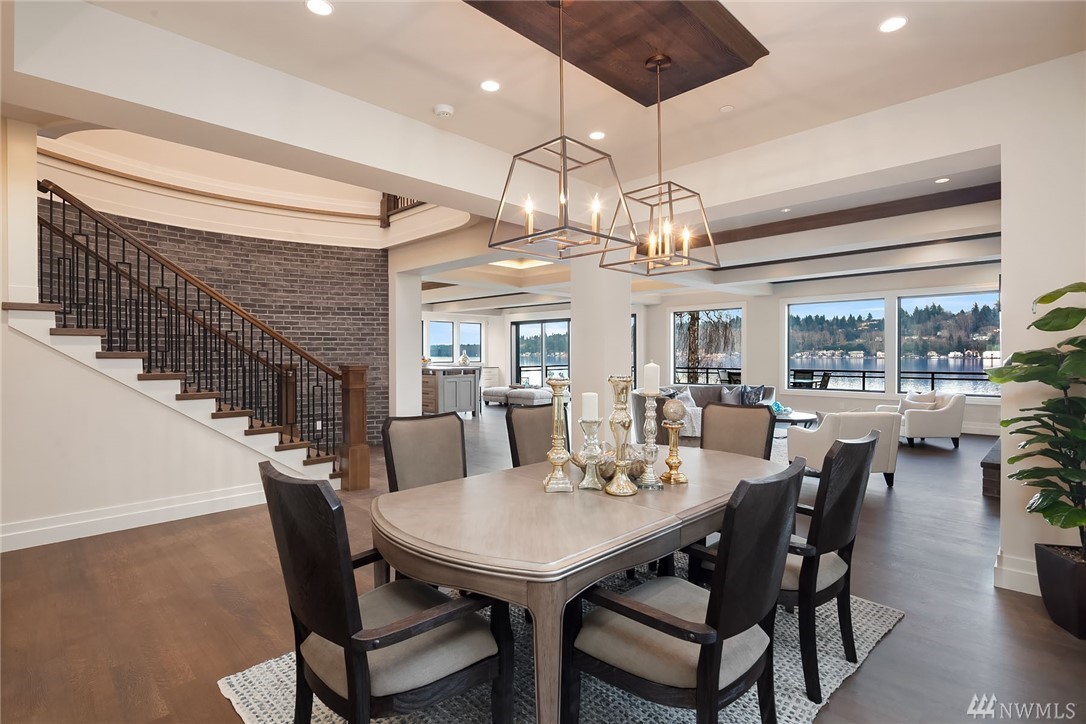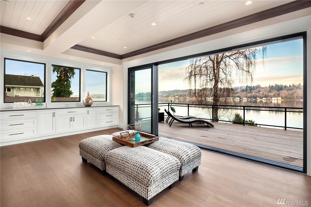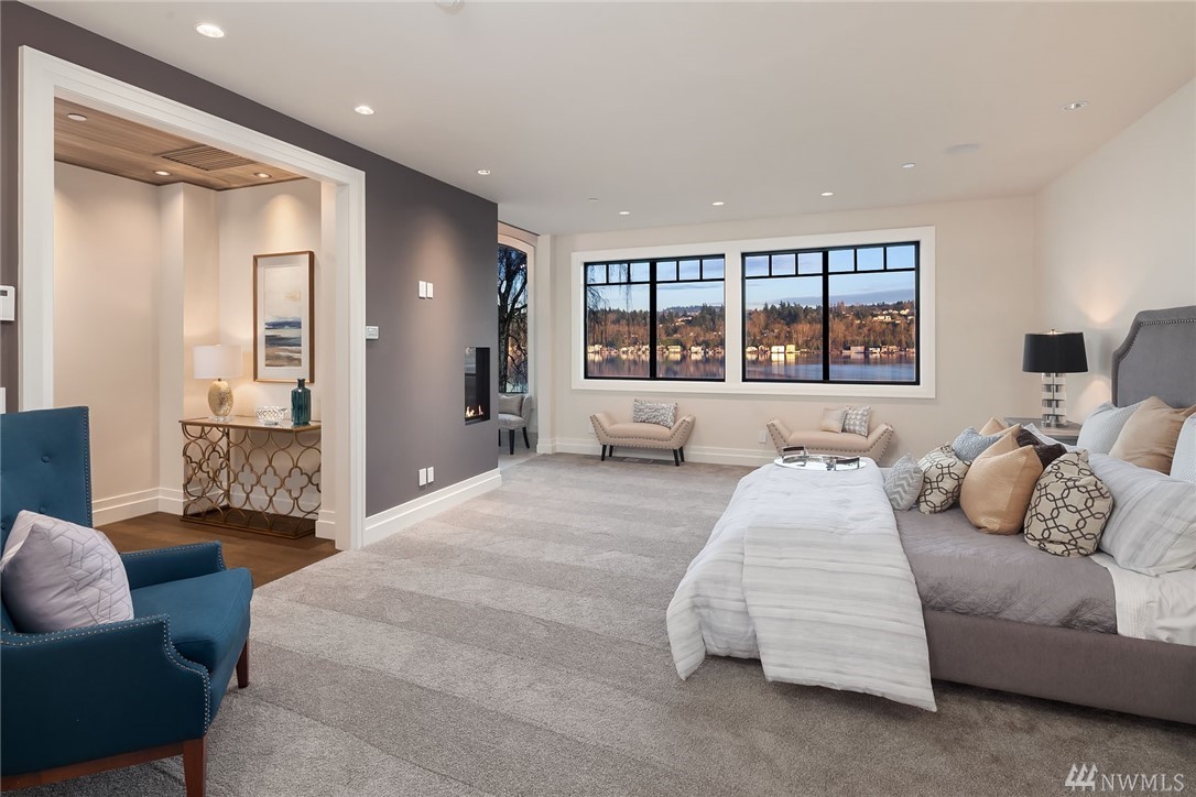 Waterfront living at its finest! Newly Constructed by Legacy Homes of WA. Classic architecture w/ a refreshing twist. Sweeping 180 degree lake views in the spa-like Owners Suite on upper floor. Second Master Suite on main. Elevator accessing 3 floors. The Lake Room on lower level is reminiscent of a world class resort where guests move freely between indoor and outdoor spaces for year round entertaining. Terraced lawn leads to new dock w/ deep water moorage and 75 of Lake WA shoreline.