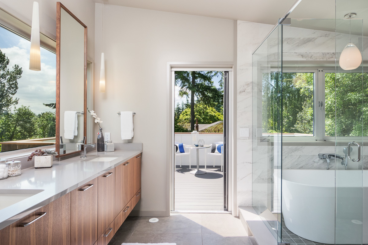 Understated modern elegance... Custom designed and built but never lived in, no detail was overlooked. Two master suites with spa-like baths. Subzero, Wolf, Fischer-Paykel and Lutron lighting. Walls of glass open to the outdoors with 3 patios that become an extension of the house. Custom built cabinetry throughout. Spend summer nights on the deck overlooking the outstanding views of Overlake Golf Course, Clyde Hill and the Bellevue skyline. Easy access to Medina Park, DT Bellevue and more.
