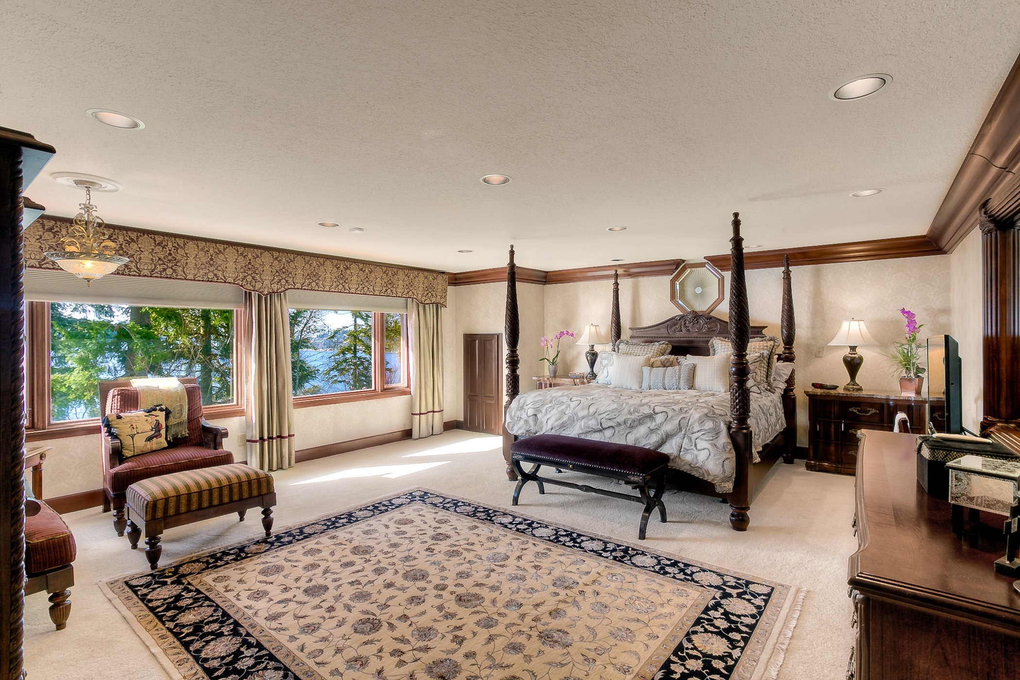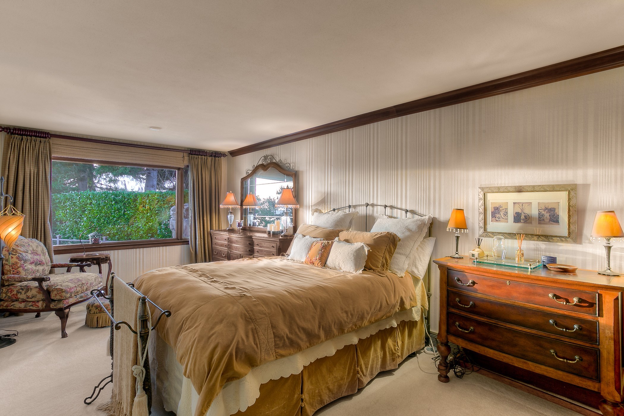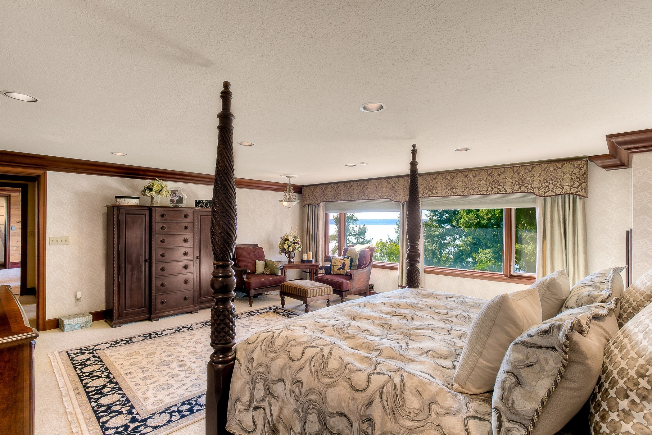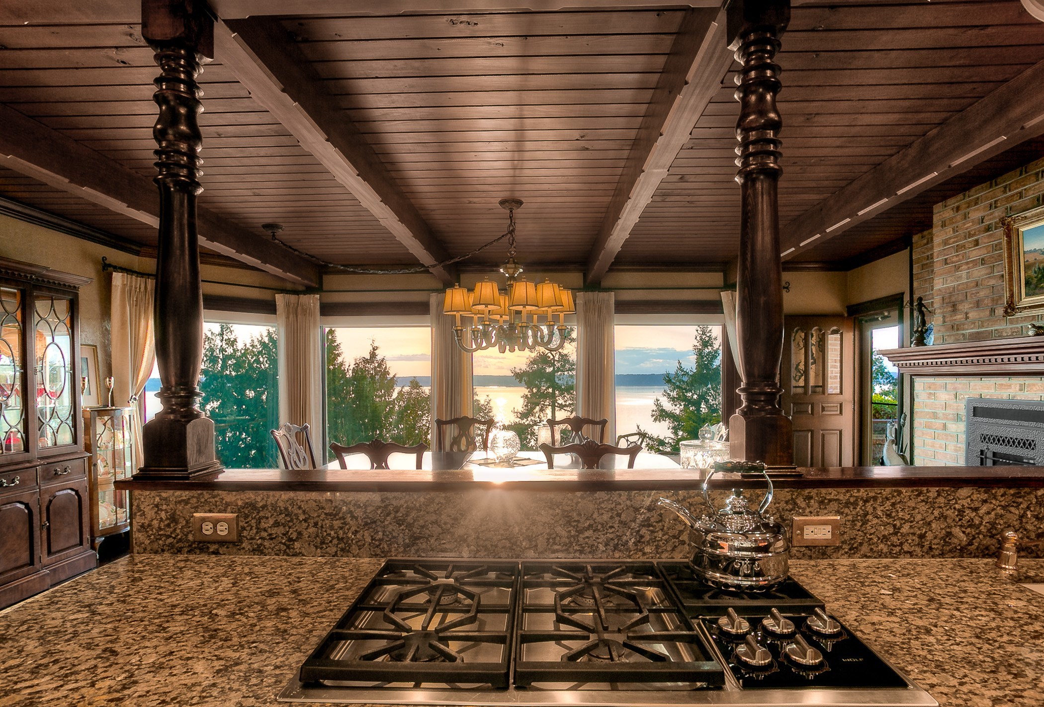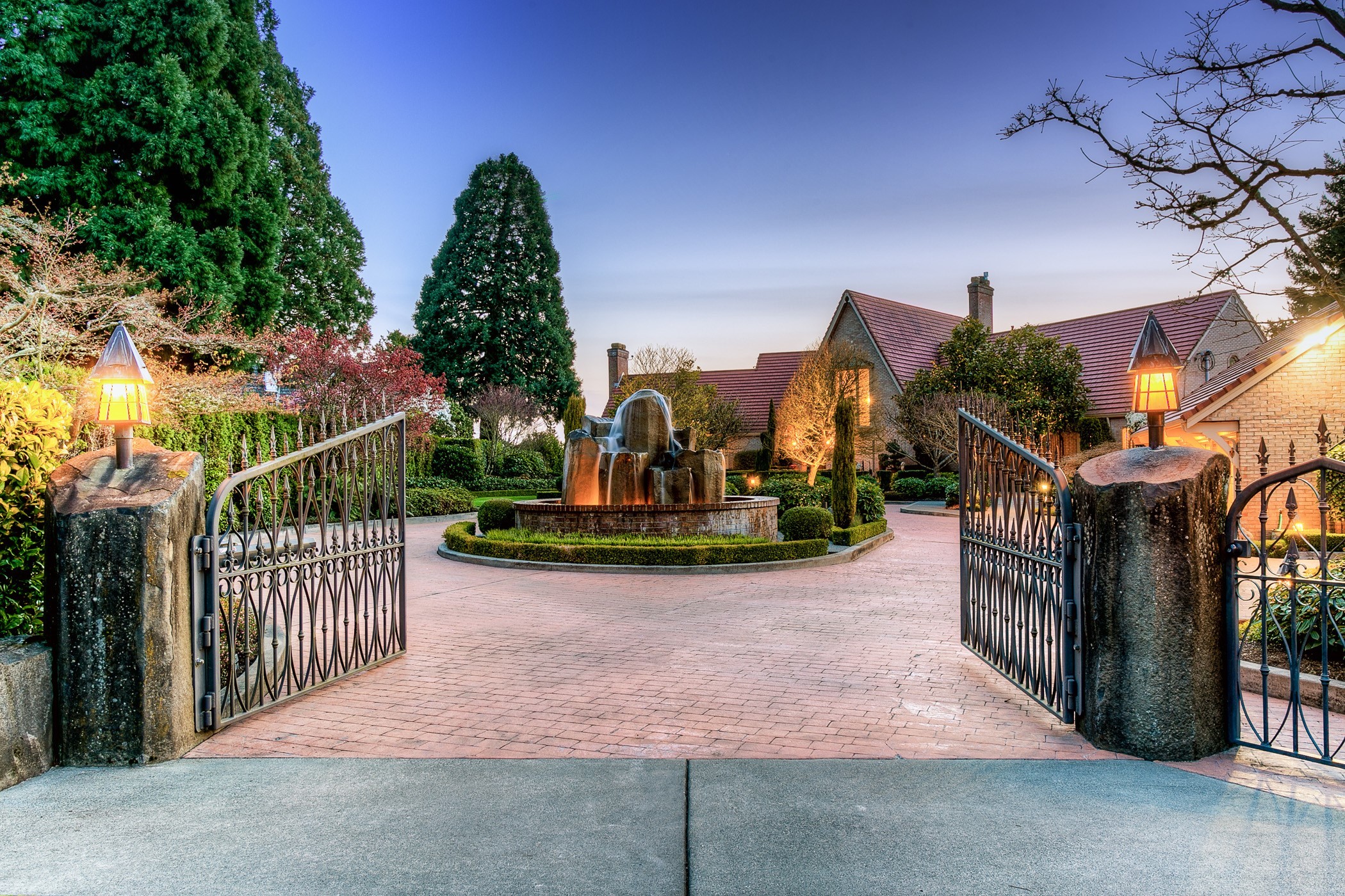 European Tudoresque architectural flair, meets NW luxury WATERFRONT living. Commanding Puget Sound and Mountain views. Massive boulders to splashing fountains captivate; while the work of master craftsmen shows everywhere The grand ballroom sized living room with soaring ceilings is perfect for entertaining. Main floor master suite plus upstairs master suite just off the billiards room. Park-like grounds, hot tub grotto, bath house with wet and dry saunas, full guest apartment and so much more.
