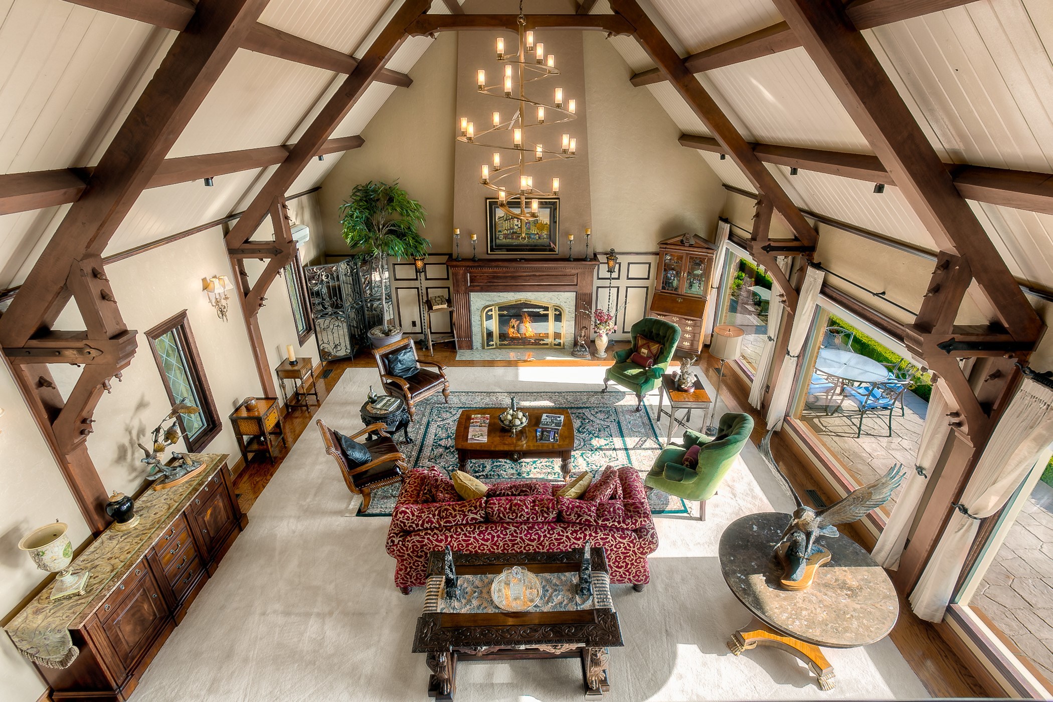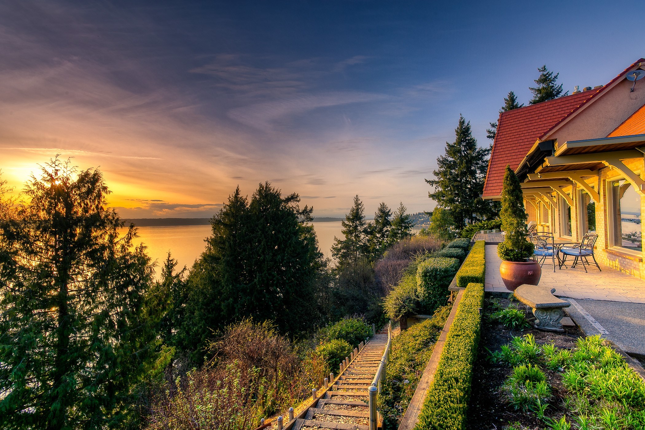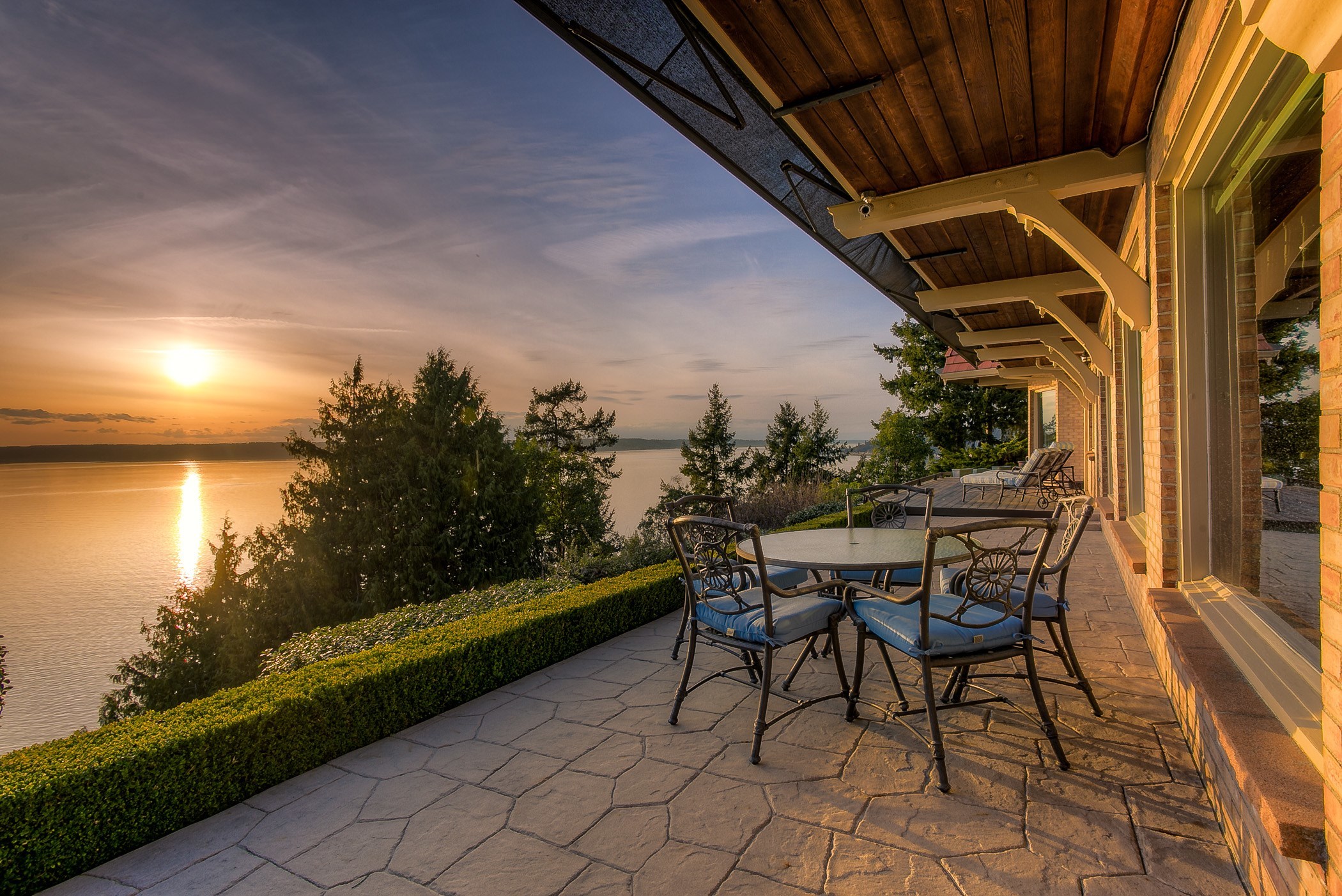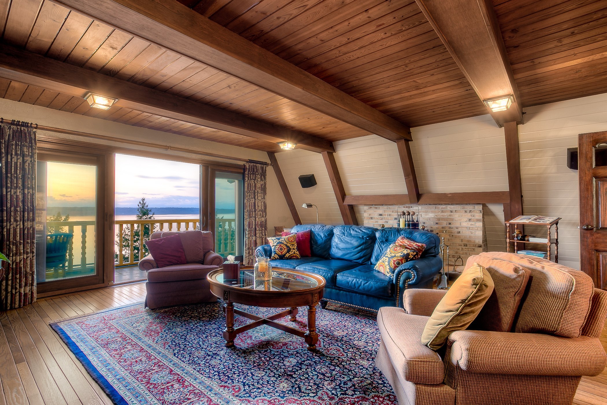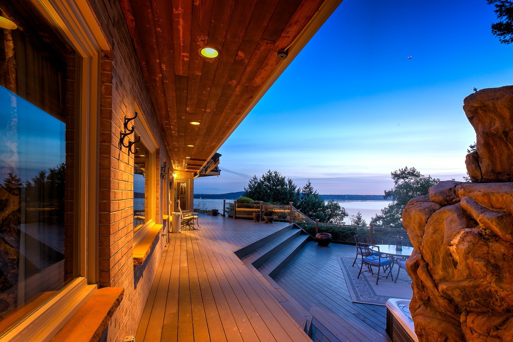 European Tudoresque architectural flair, meets NW luxury WATERFRONT living. Commanding Puget Sound and Mountain views. Massive boulders to splashing fountains captivate; while the work of master craftsmen shows everywhere The grand ballroom sized living room with soaring ceilings is perfect for entertaining. Main floor master suite plus upstairs master suite just off the billiards room. Park-like grounds, hot tub grotto, bath house with wet and dry saunas, full guest apartment and so much more.
