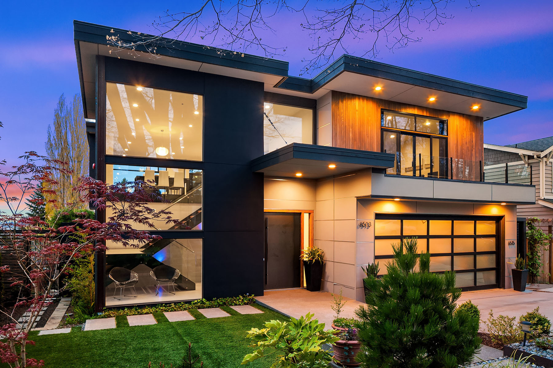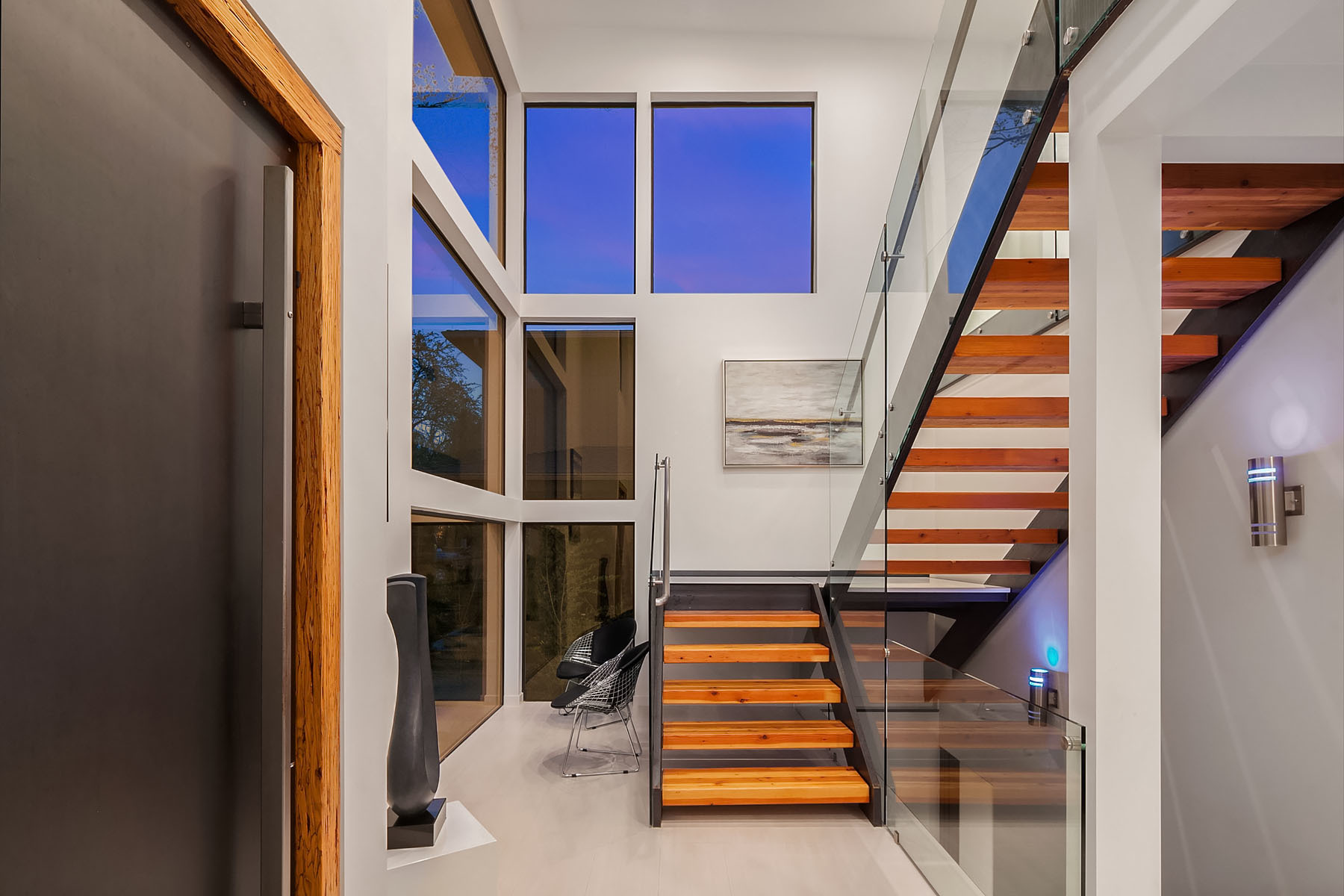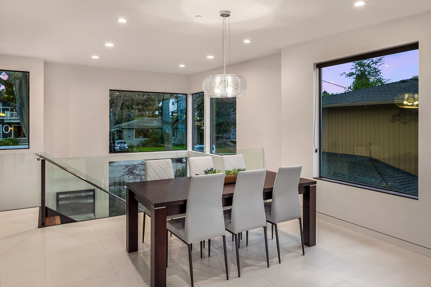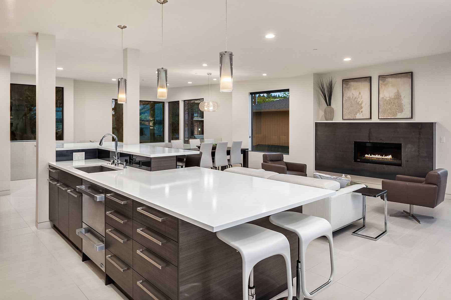 In a premier location, this Lakeview Modern is an easy walk to waterfront, Google and award winning Lakeview Elem. Steel pivot door opens to sleek, sophisticated interiors that have been expertly curated. Floating steel staircase w frameless glass railing leads to a sprawling upper floor. Walls of windows throughout frame sweeping views of Lake Washington, Seattle skyline, and Olympic Mountains. Ample outdoor spaces, 4 decks and fenced yard. Lower level, 1646sf ADU w 2 bed/1ba, full kitchen and w/d.