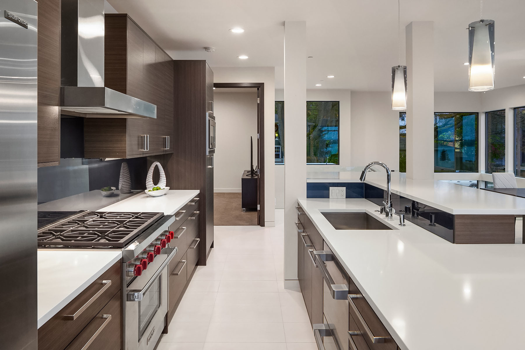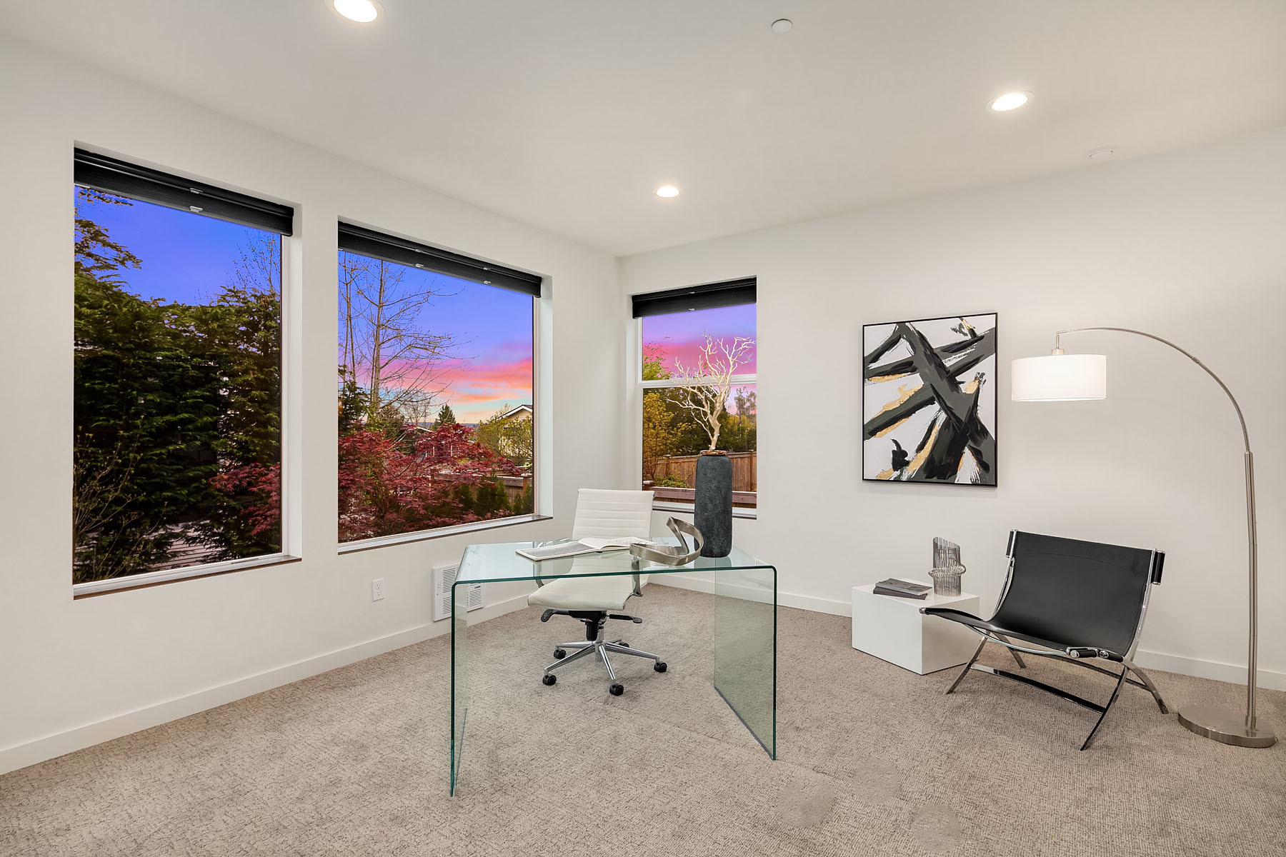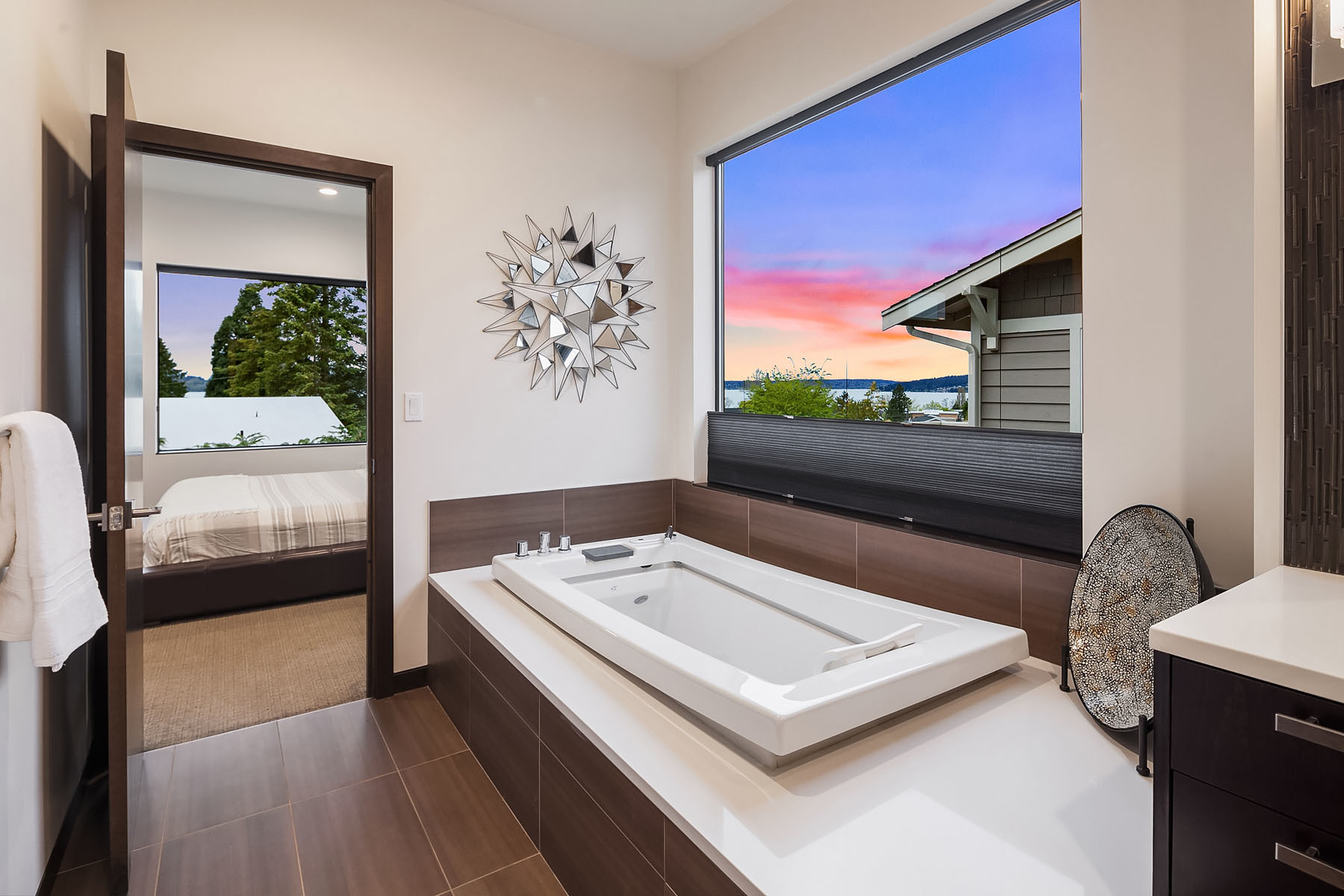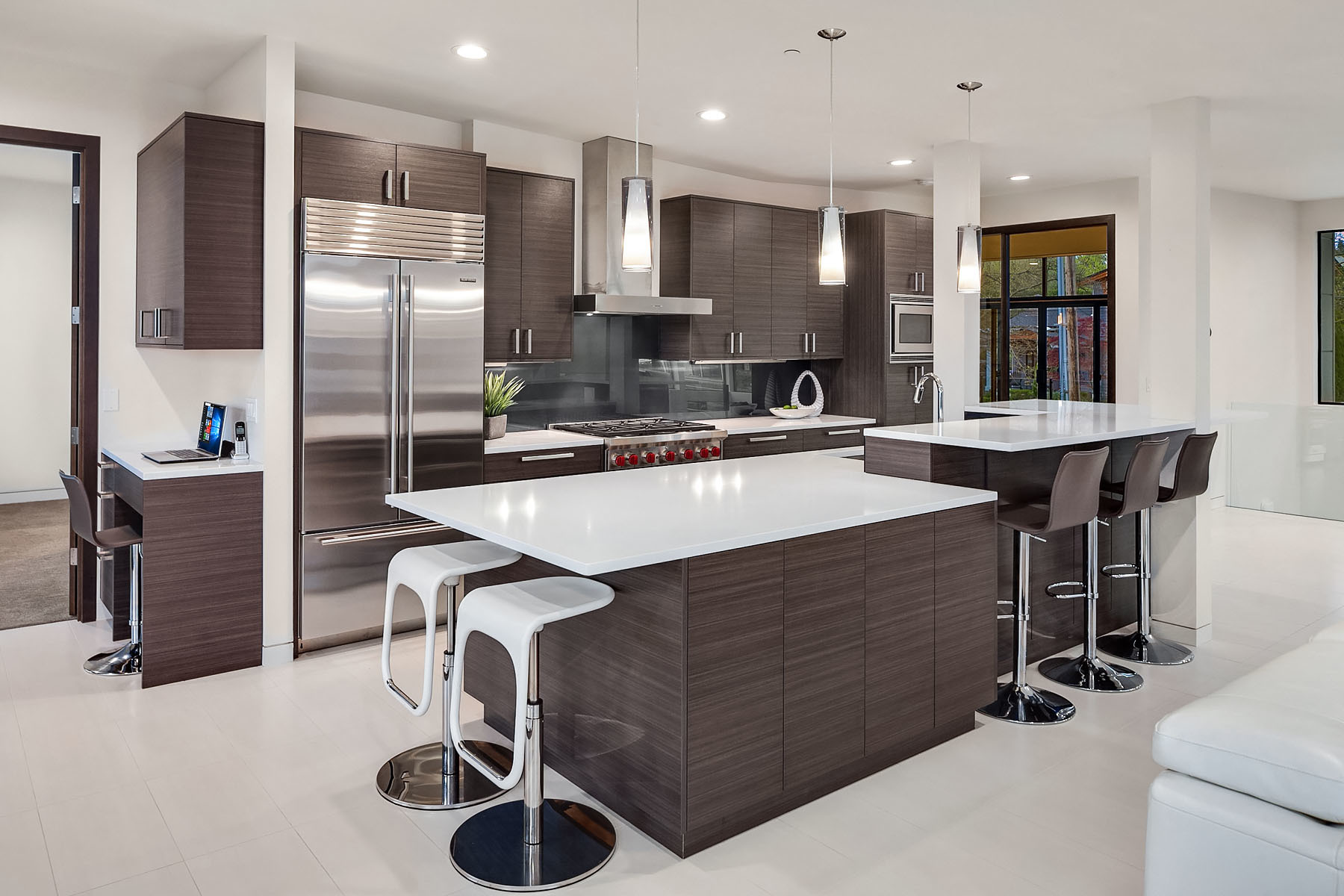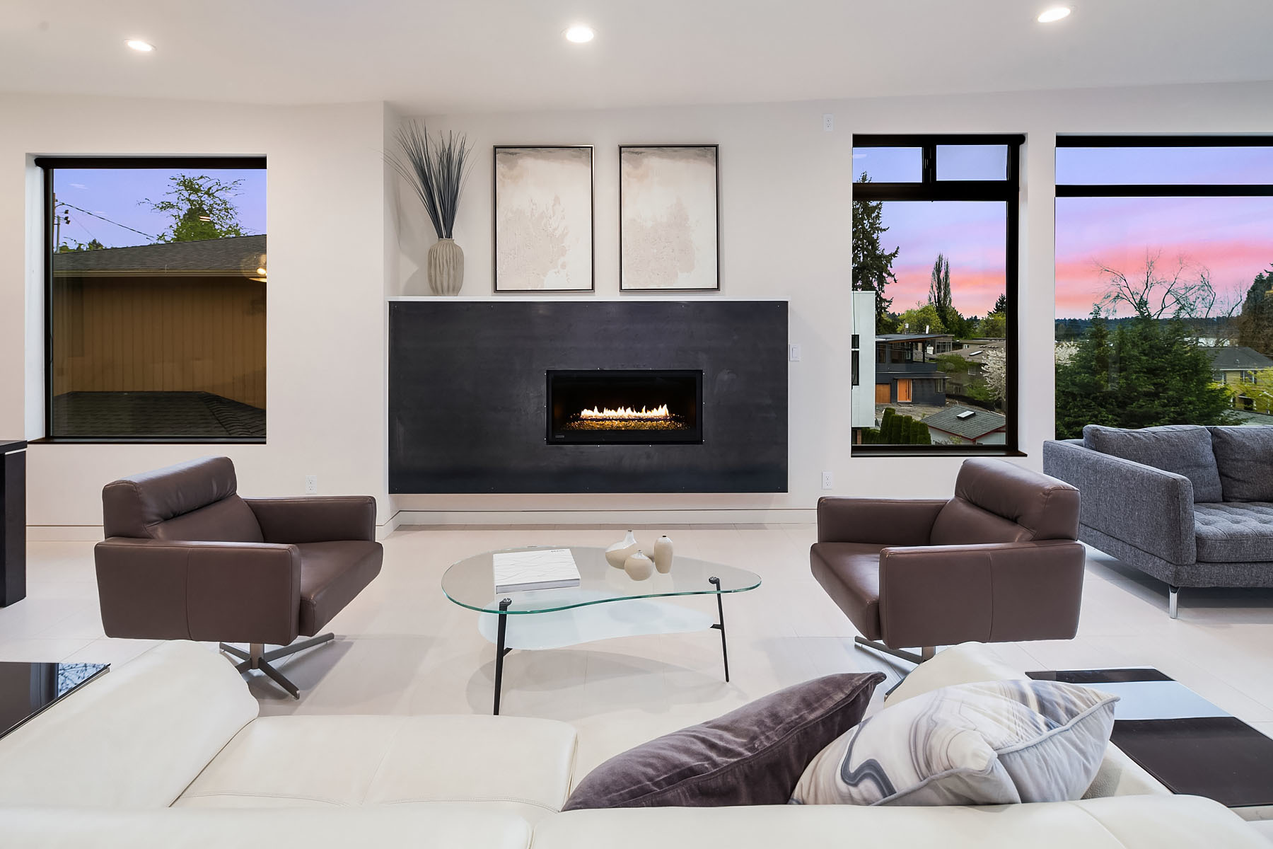 In a premier location, this Lakeview Modern is an easy walk to waterfront, Google and award winning Lakeview Elem. Steel pivot door opens to sleek, sophisticated interiors that have been expertly curated. Floating steel staircase w frameless glass railing leads to a sprawling upper floor. Walls of windows throughout frame sweeping views of Lake Washington, Seattle skyline, and Olympic Mountains. Ample outdoor spaces, 4 decks and fenced yard. Lower level, 1646sf ADU w 2 bed/1ba, full kitchen and w/d.