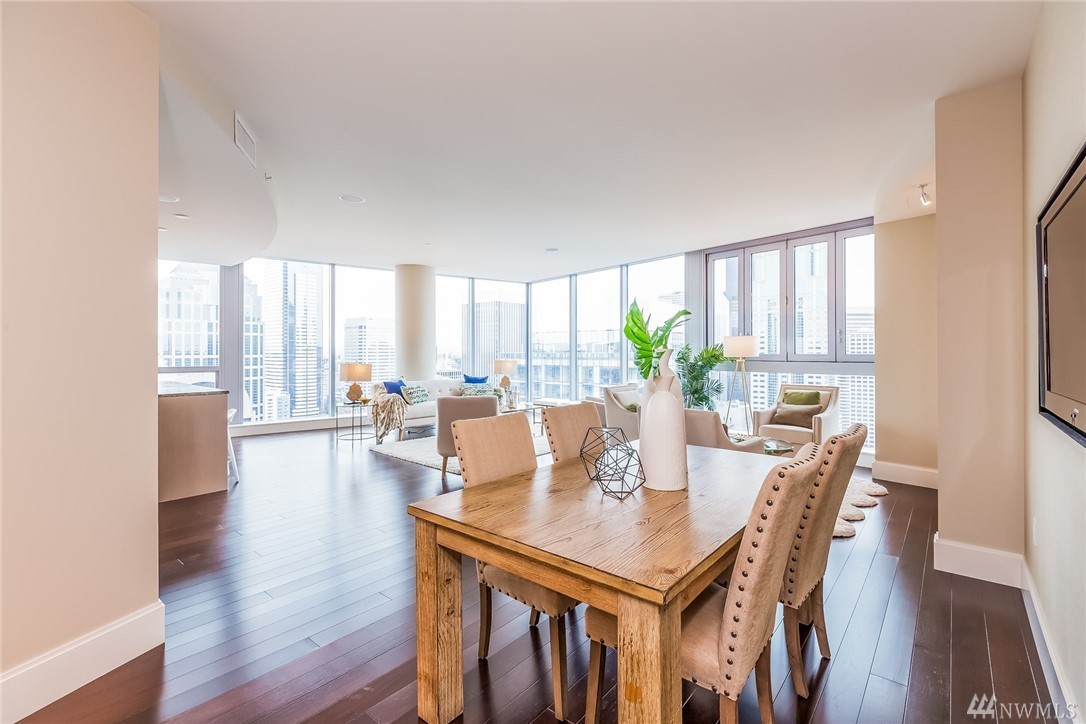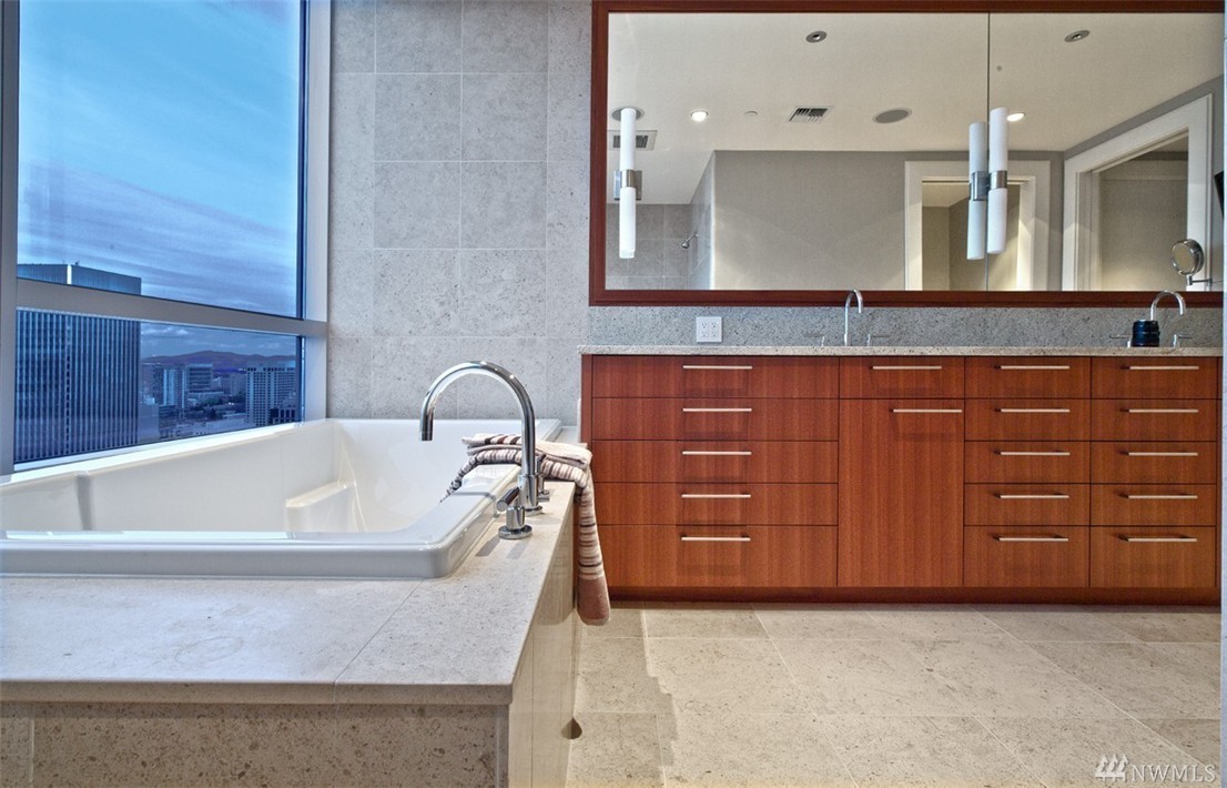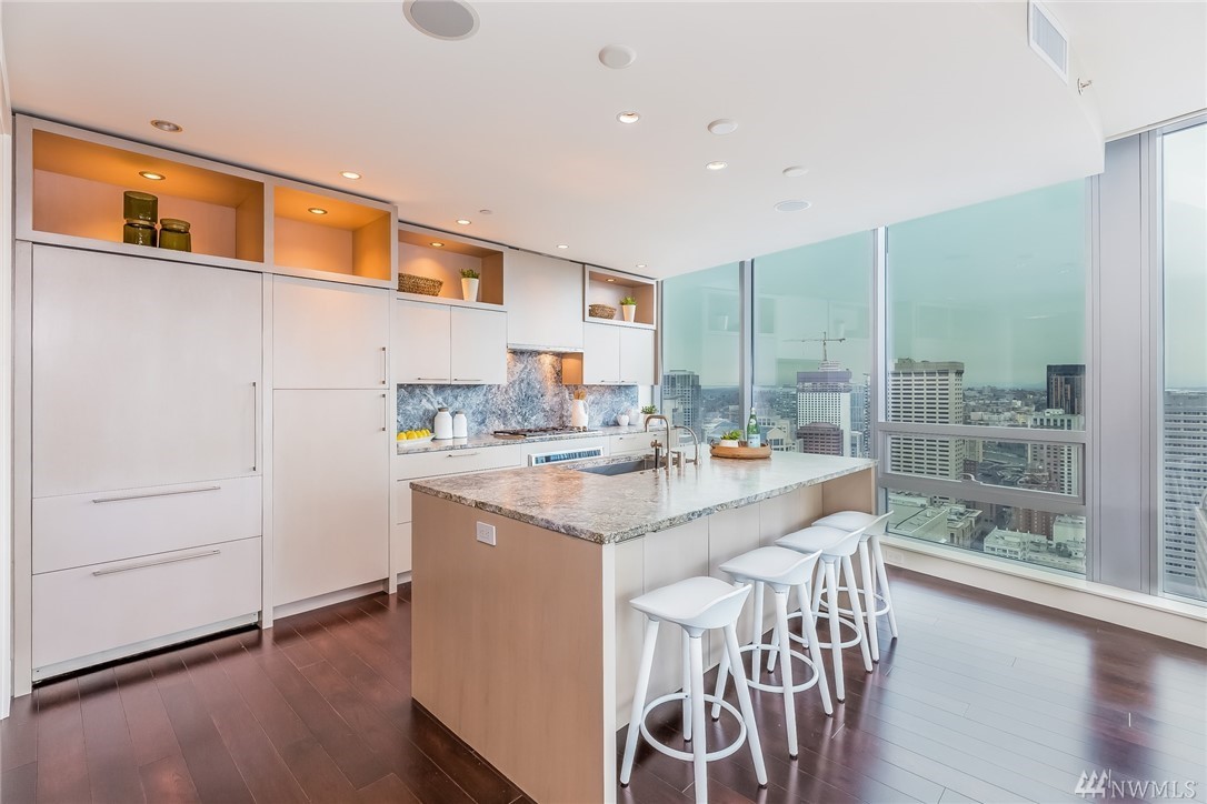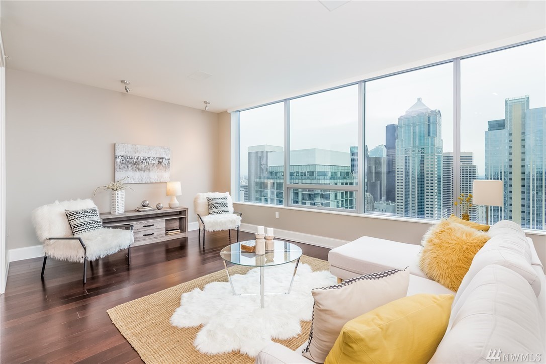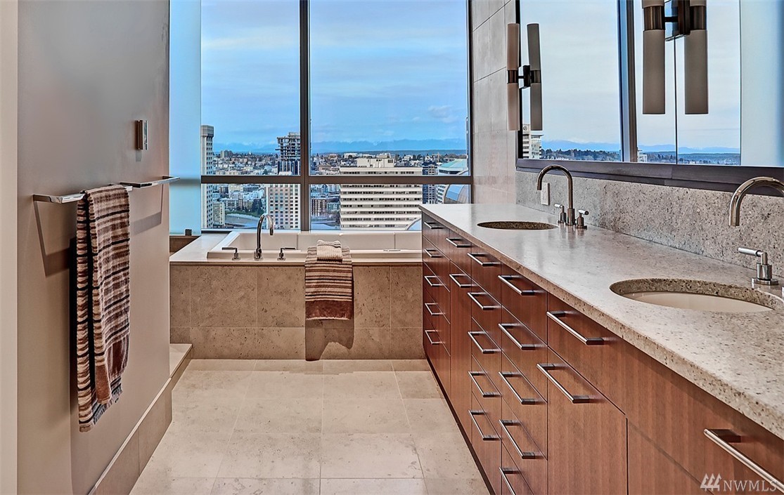 Seattle Point of View- High atop one of the most coveted buildings within the vibrant heart of the city awaits a singularly spectacular two bedroom penthouse residence- uncompromised luxury appointments throughout. A truly inspiring entertaining experience awaits on the second level- emerge to immersive views of Elliott Bay & cityscape from your own private rooftop deck- complete with hot tub, TV, sound system, fireplace & BBQ. Steps to the Market, dining, retail district, museums & light rail.