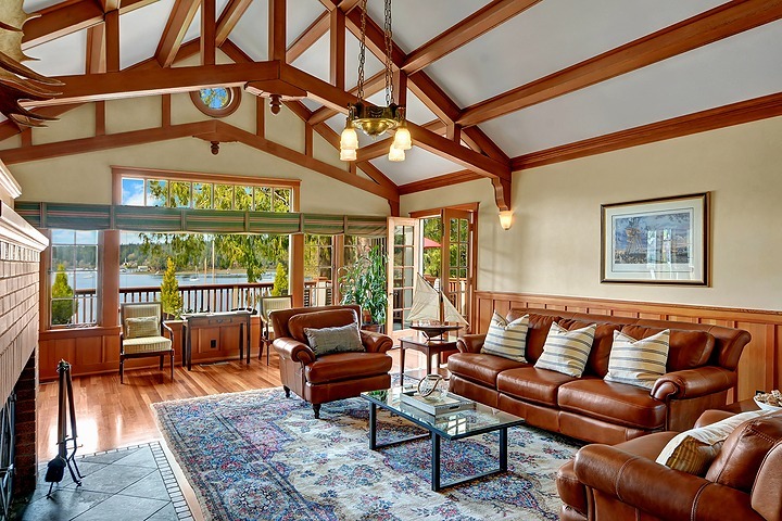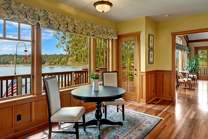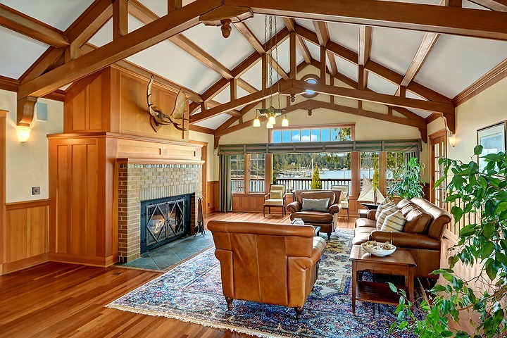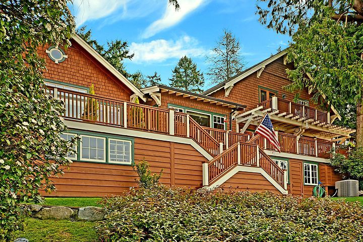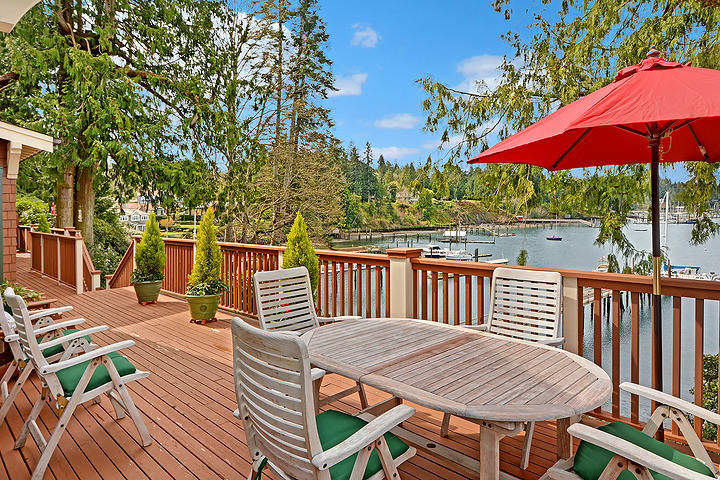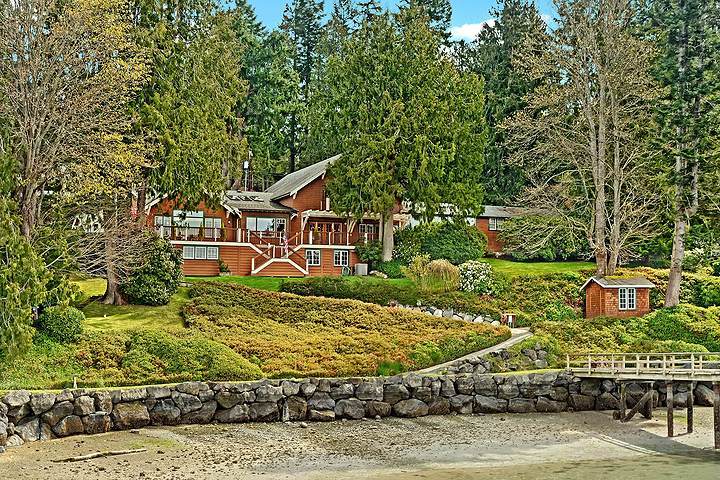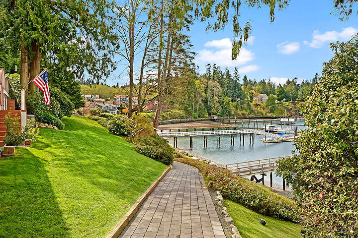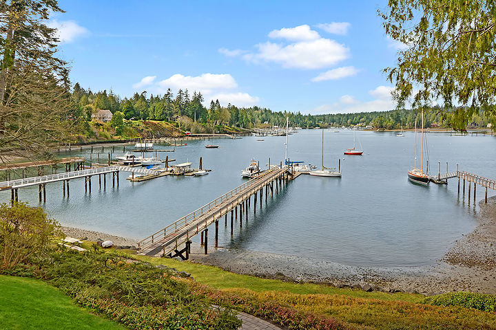 This classic Nantucket-style home on the shore of Port Madison with 225' of low-bank, west facing waterfront is amazing. Private walkways w/mature landscaping meander to the 190' deep-water dock, boathouse, and beach. The craftsmanship of this home is noteworthy. French doors lead to a large deck with magnificent views of the harbor. Charming guest quarters are included. All day sun makes for excellent entertaining and spending summer days! Island Living at it's best! Watch the video tour!
