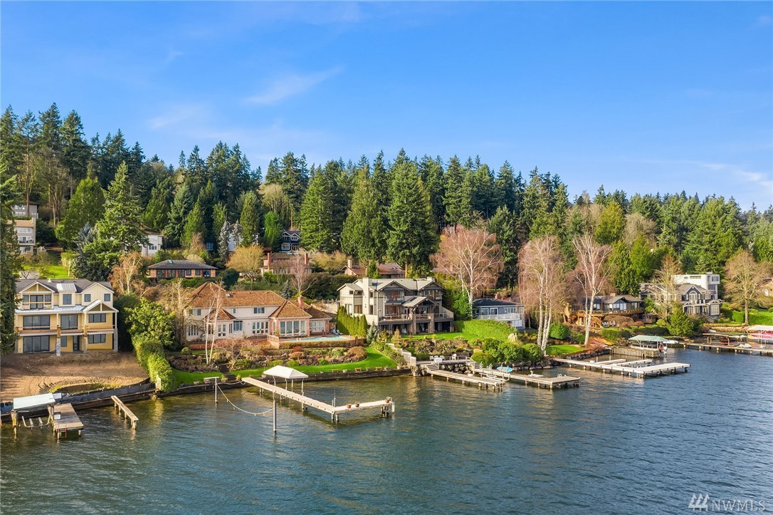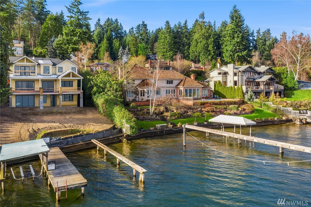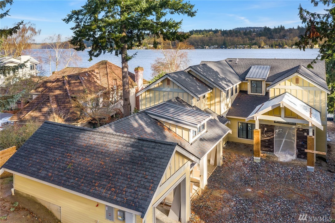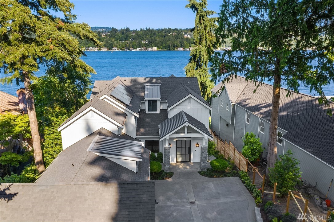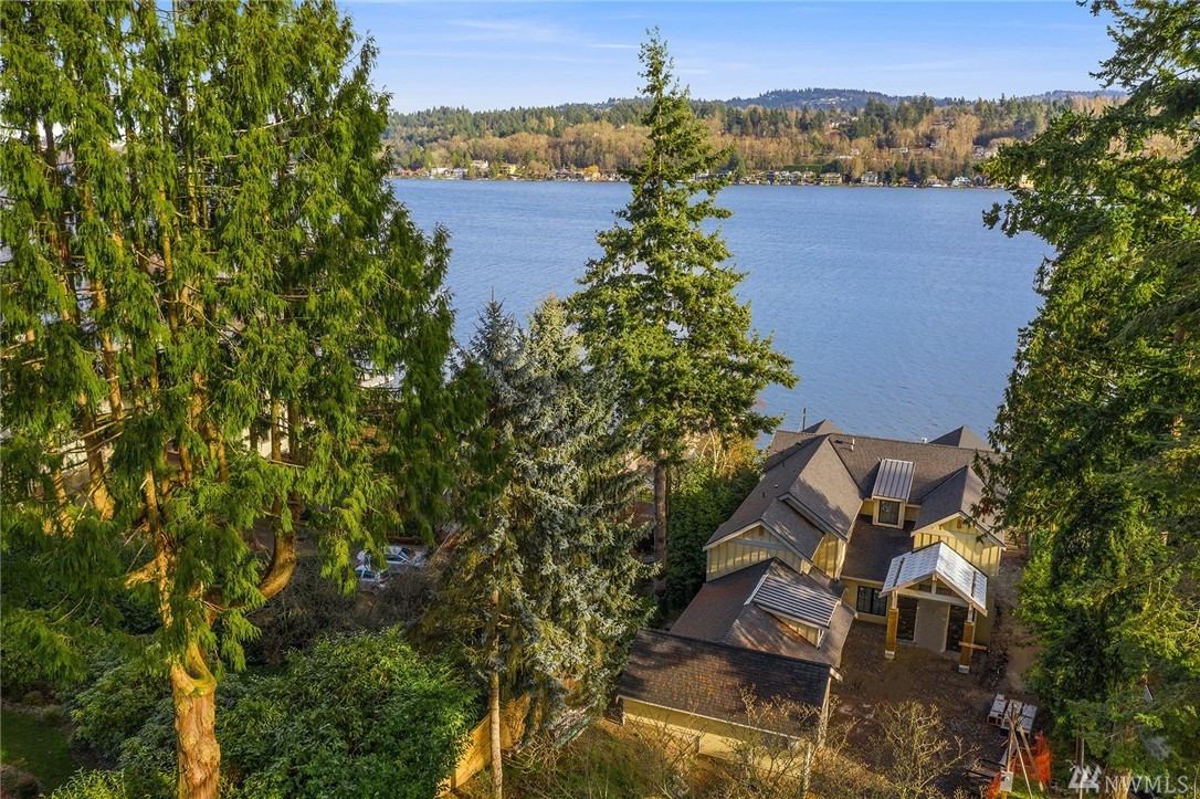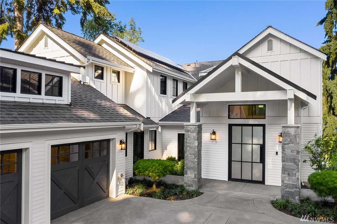 Mercer Island waterfront with new construction modern farmhouse.The home has a beautiful open design ideal for entertaining Great room & stunning kitchen open to the deck with lake & mountain views. Wonderful fixtures accent the home, gorgeous cabinetry,quartz counters,steel accents,floating stair, & custom two sided wine wall.Master suite is luxurious with a spa like bath, fireplace & private balcony. Media, game room & guest suite. Private setting. Docks for large & small boats.May Completion