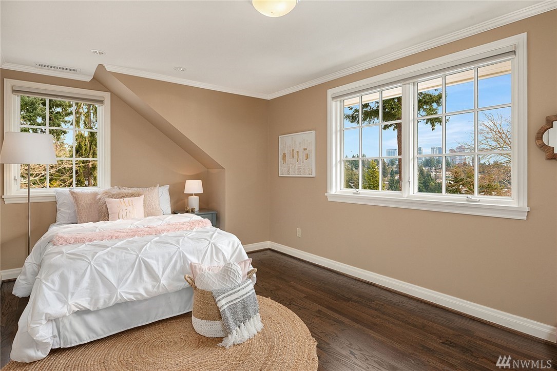 Wake up to views of DT Bellevue framed by Meydenbauer Bay, the Cascades & Mt. Rainier. A landmark property- traditional in design made to stand the test of time on 2 beautiful, buildable tax lots. Fully updated offering 3 bedrooms, master suite w/ views from every window, private office, large bonus room, gorgeous kitchen & family room. Detached guest house with 3/4 bath & kitchenette, lit pickle ball court, expansive entertaining deck & conversational fire pit. Make Medina Heights your home!