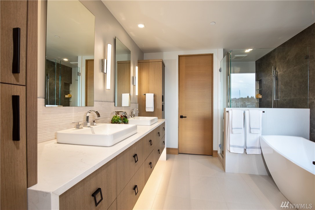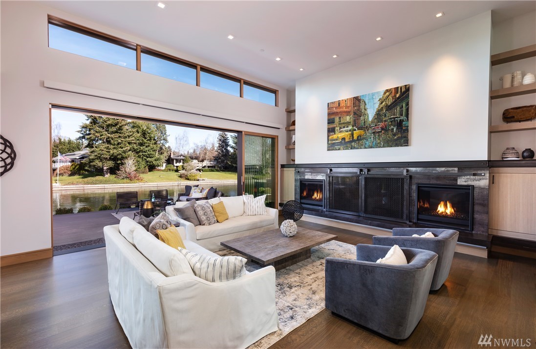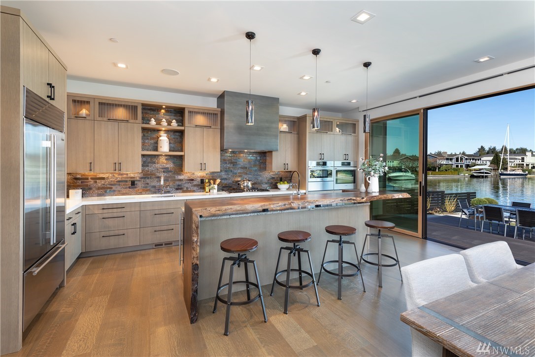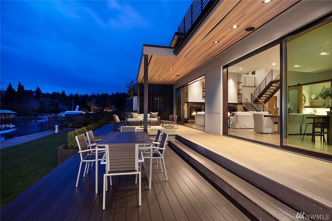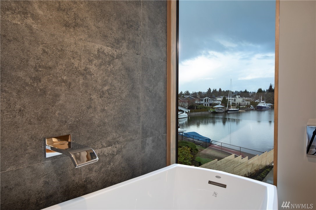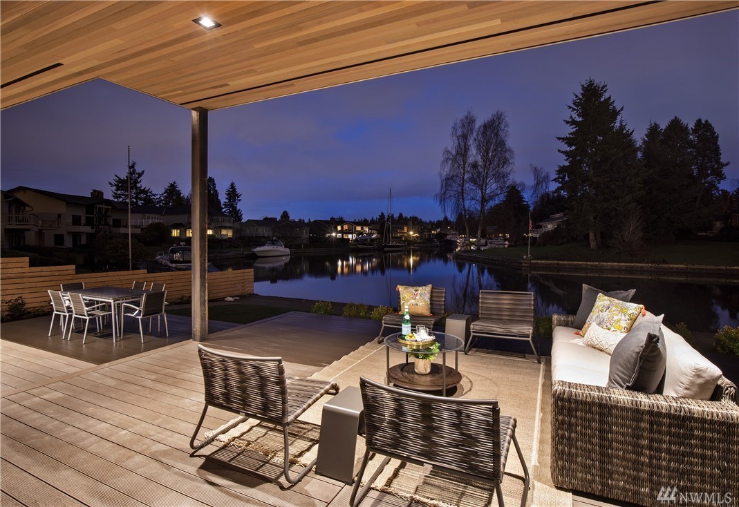 Exquisite new construction on the water in coveted Newport Shores, with a Zen feeling. Entry opens to the views the moment you walk in.Great room & kitchen are stunning & flow to the huge deck & moorage.Fireplaces with custom metal & finishes are a work of art.Kitchen boasts the best appliances & a living edge counter.Dining room with handblown raindrop lighting. Media room, guest suite & den. Serene master with deck. Gorgeous finishes, doors &lighting. Built by MacPherson Construction & Design.