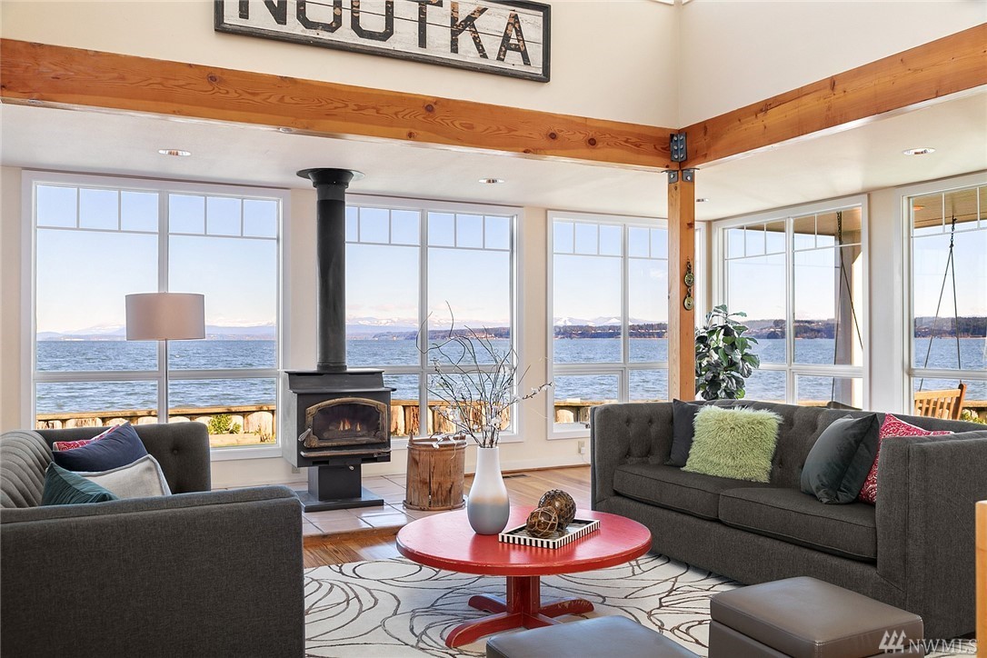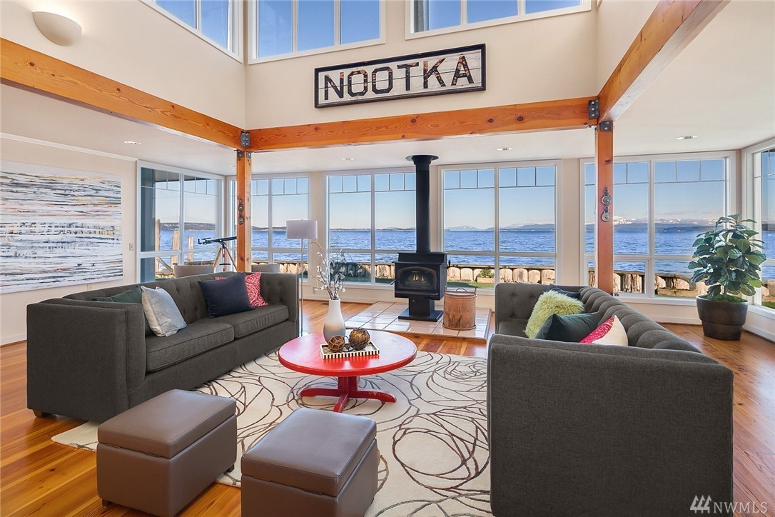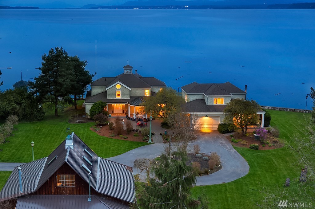 Escape to this glorious, private, one of a kind waterfront retreat. Island living with no ferry line and only 90 min from Seattle. Gorgeous main house sited on almost 8 luscious acres also has guest house, spectacular post and beam barn, chicken coop, flower and vegetable gardens, and fruit trees. Amazing views of Mt Baker, the Cascades and gray whales leaping out front with eagles soaring overhead. Room for everyone and everything. Once you're here you're never going to want to leave.
