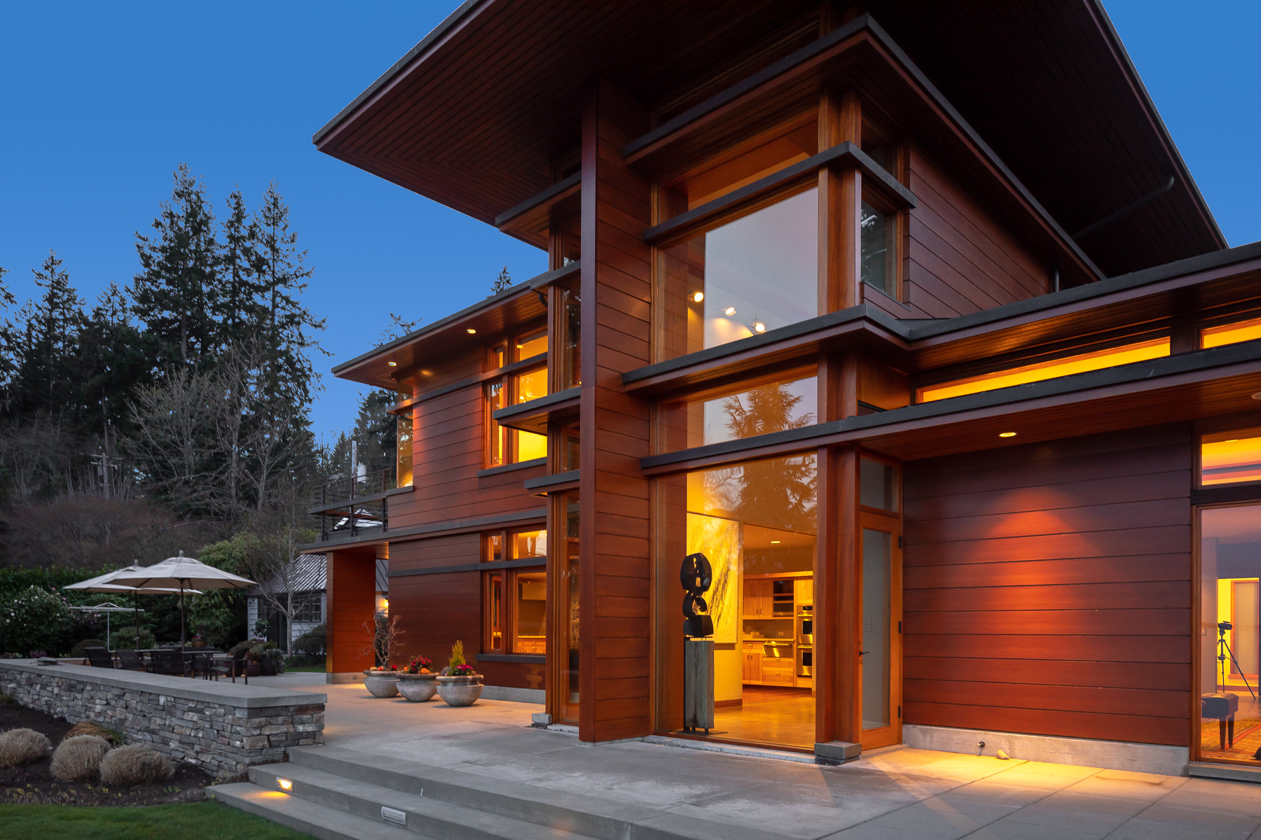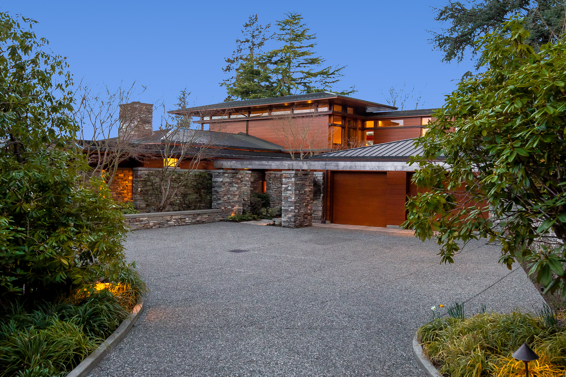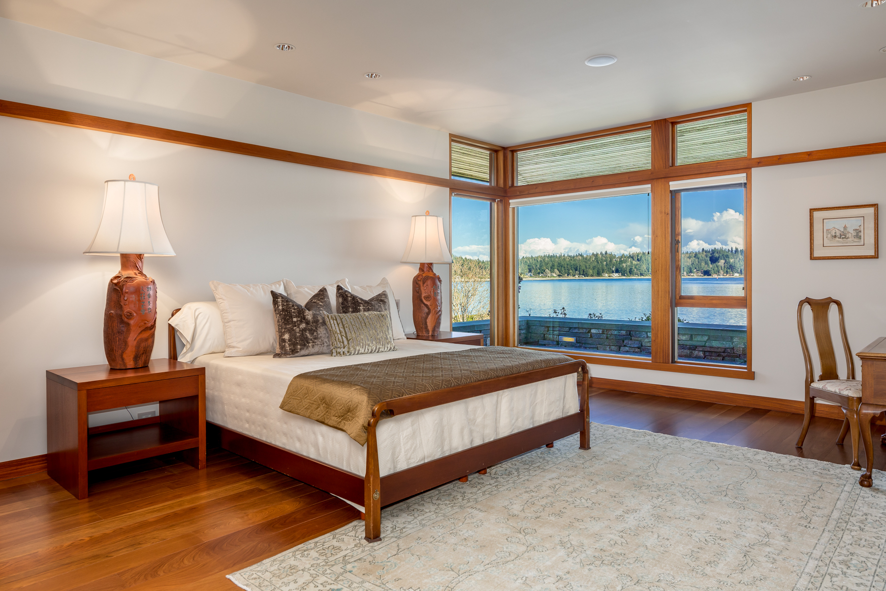Magnificent Olson Kundig designed international-style home on Bainbridge Islands Point White Drive. The nearly 5300 sq. ft. home is perfectly sited on over an acre with 220 of no-bank waterfront. Views of Mt Rainier, ferries passing by through Rich Passage, and southern exposure for all-day sun! Exquisite finishes throughout with mahogany, cedar, glass, and stone. Truly, a livable masterpiece. This is the first time this home has been on the market. The epitome of Island living...