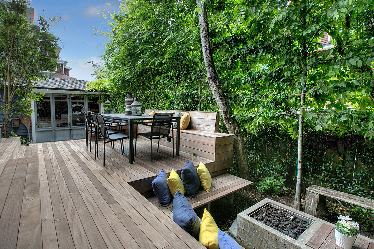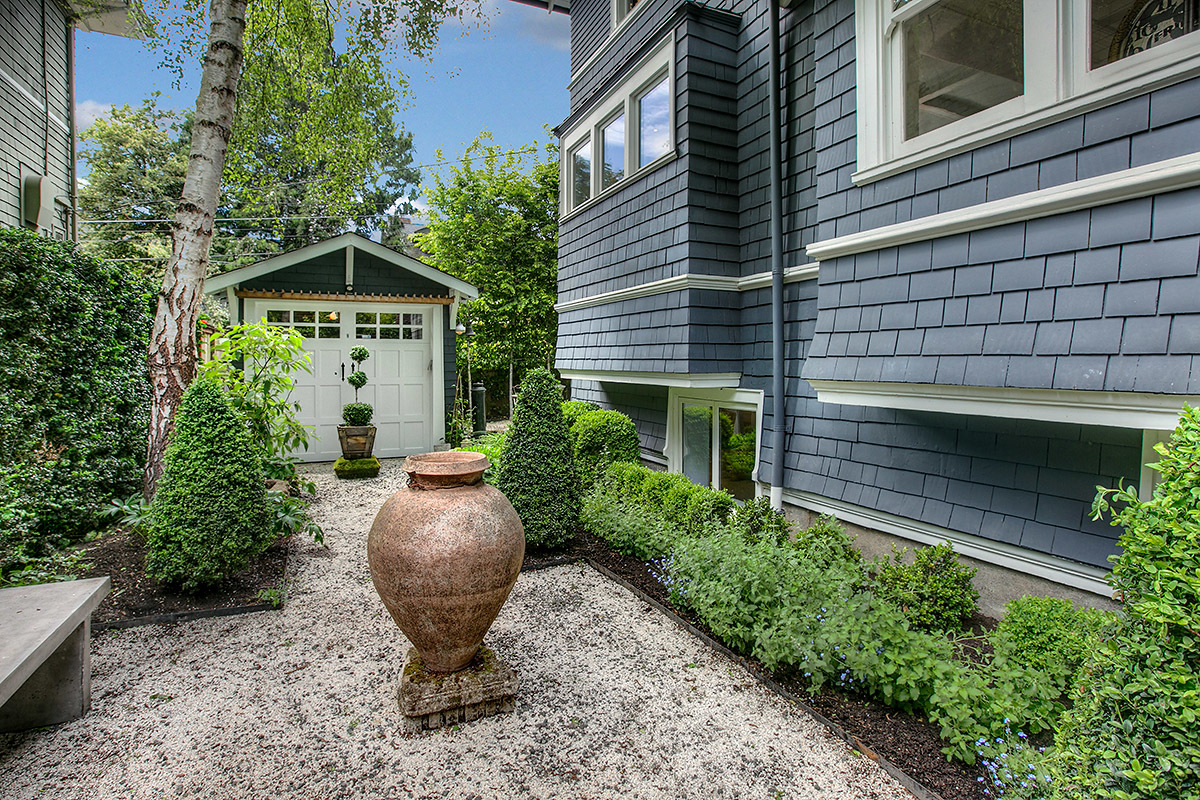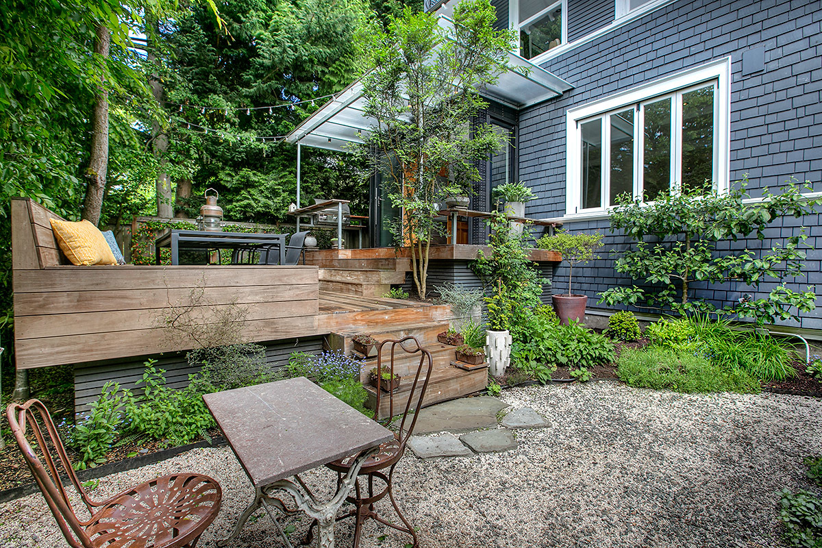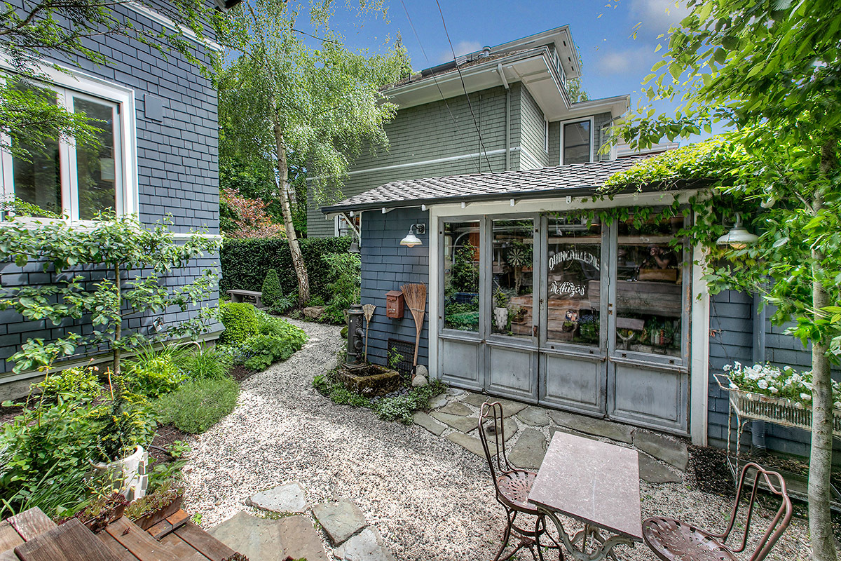 The House with the Yellow Door: One of a kind Capitol Hill rarity on dreamy park block! High-end modern meets 1905 urban oasis with a singular setting of privacy, beautiful natural light, open space, European-inspired gardens and tranquility. Incredible western views of city, sound and mountains from the 3rd floor deck. Impeccably renovated by hand with artifacts, custom high-design touches and four livable floors, this is a unique studs out renewal realized with love and care. Stunning!