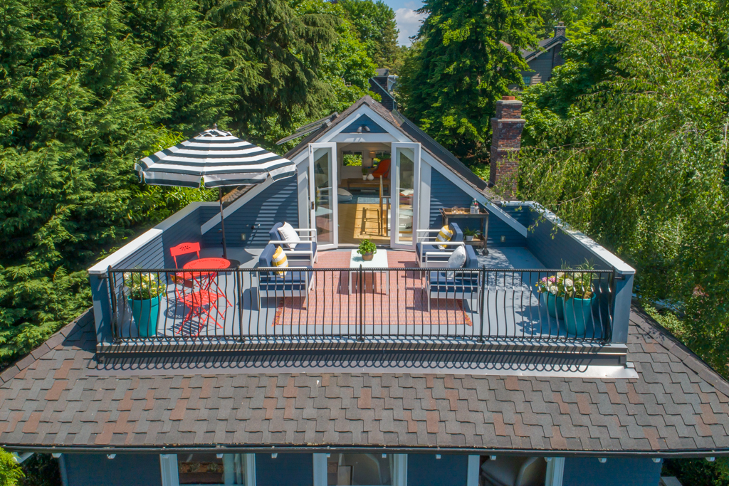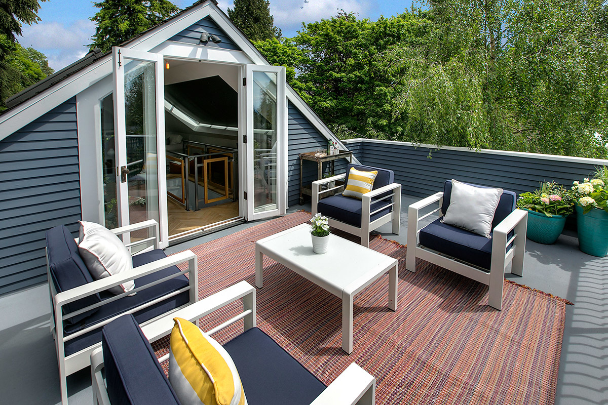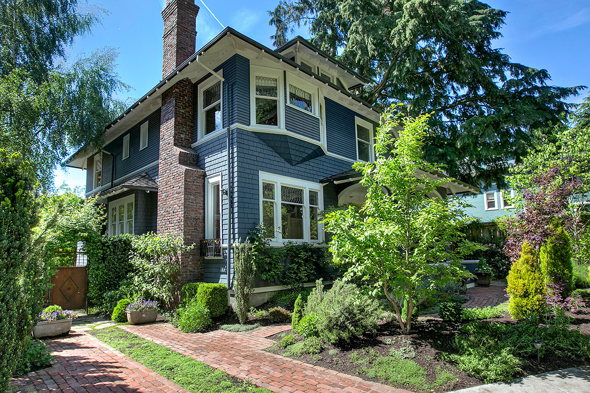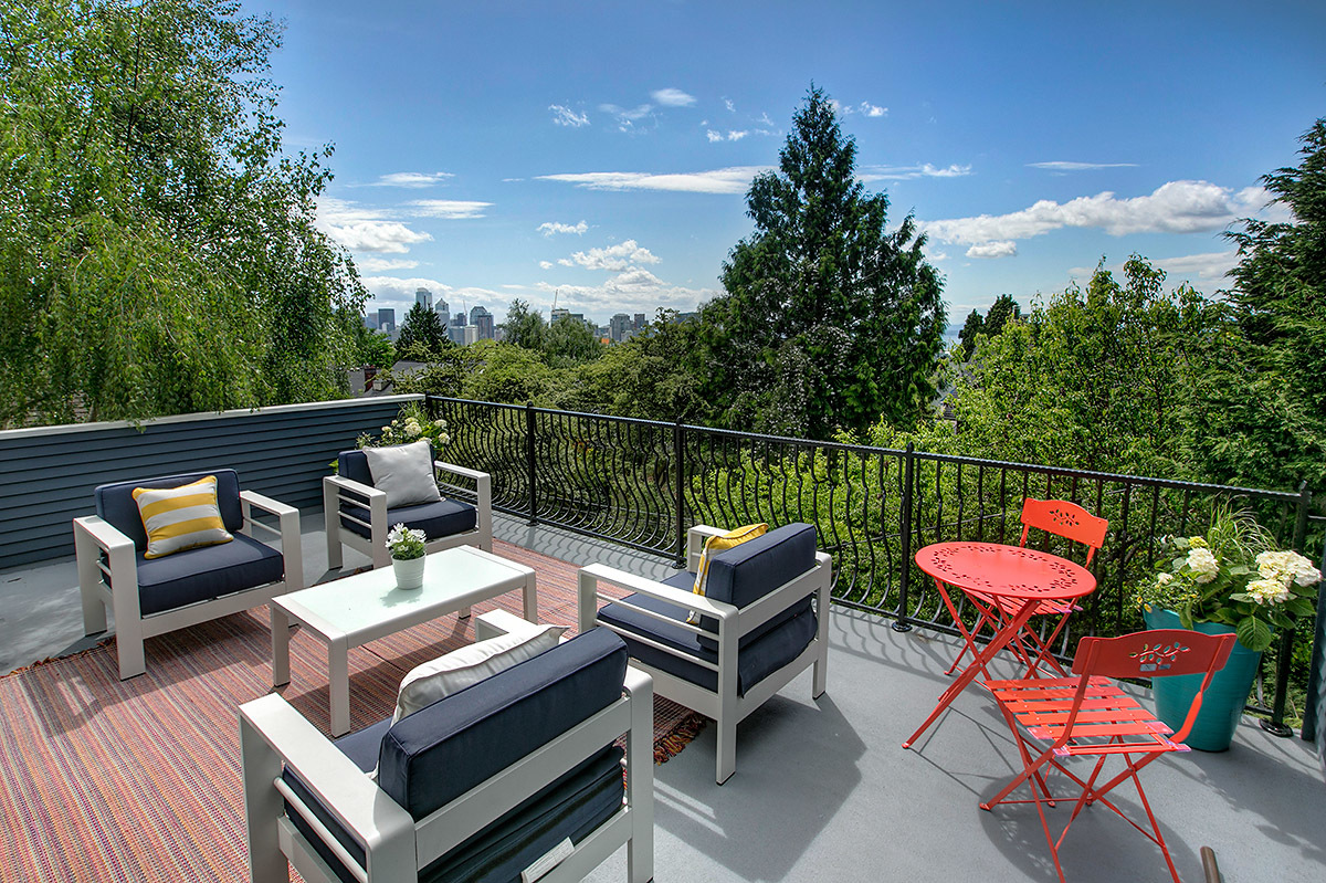 The House with the Yellow Door: One of a kind Capitol Hill rarity on dreamy park block! High-end modern meets 1905 urban oasis with a singular setting of privacy, beautiful natural light, open space, European-inspired gardens and tranquility. Incredible western views of city, sound and mountains from the 3rd floor deck. Impeccably renovated by hand with artifacts, custom high-design touches and four livable floors, this is a unique studs out renewal realized with love and care. Stunning!