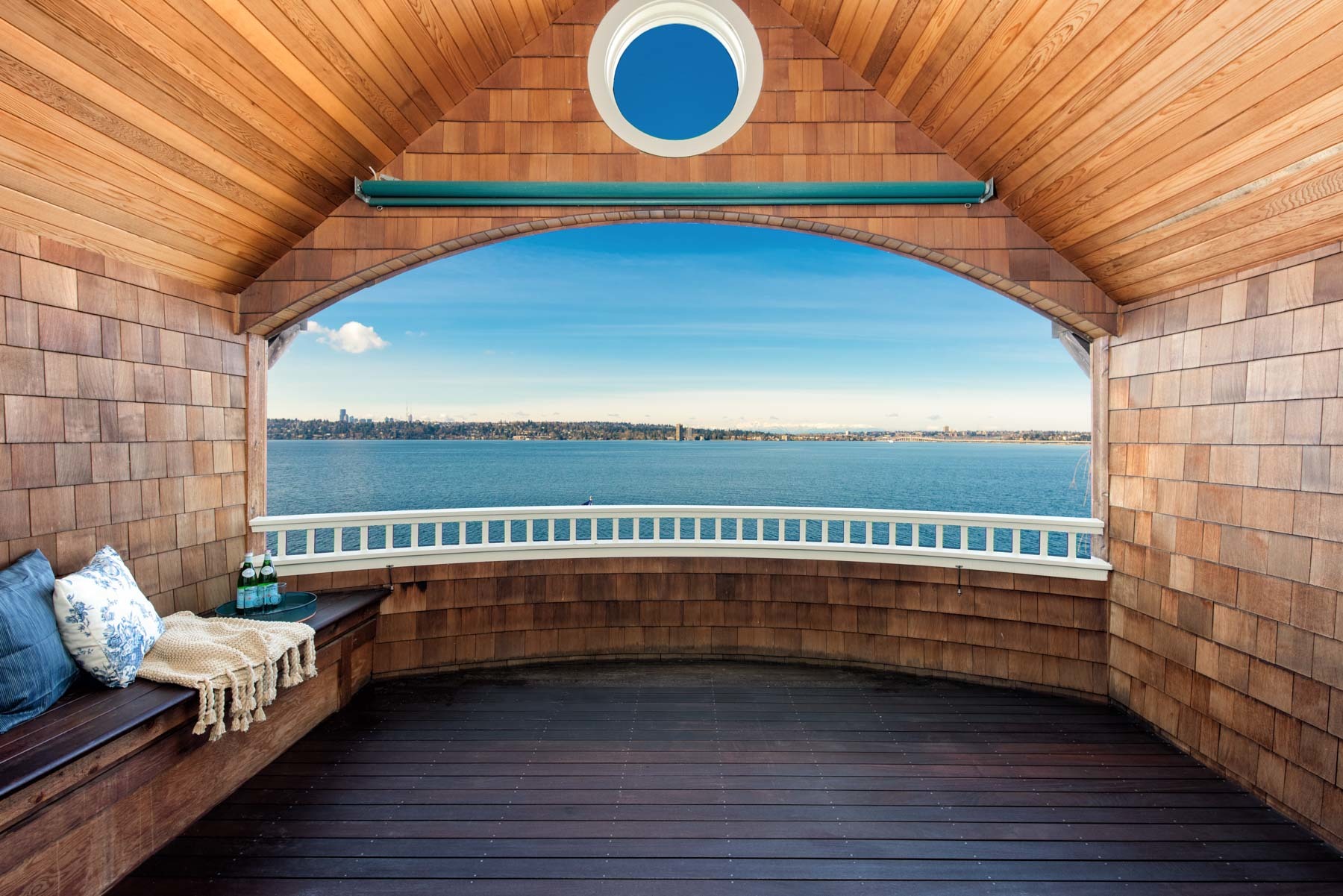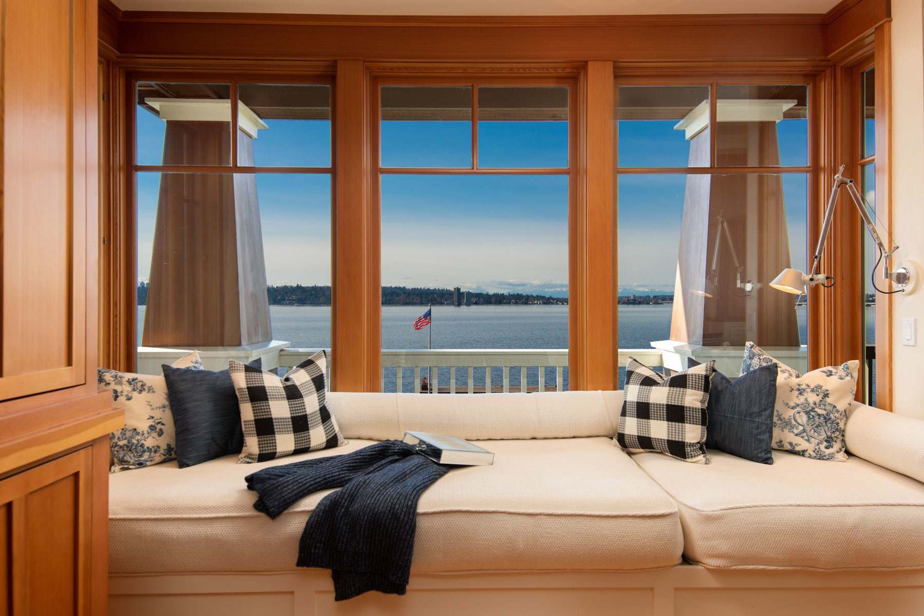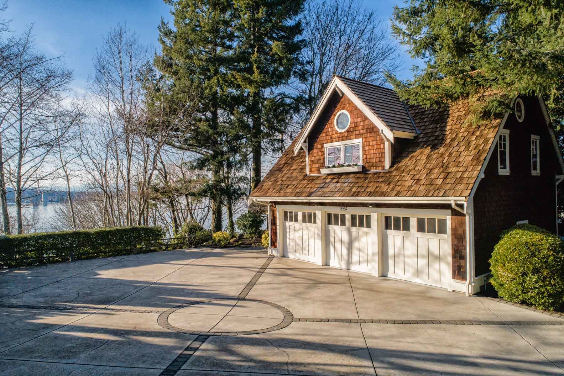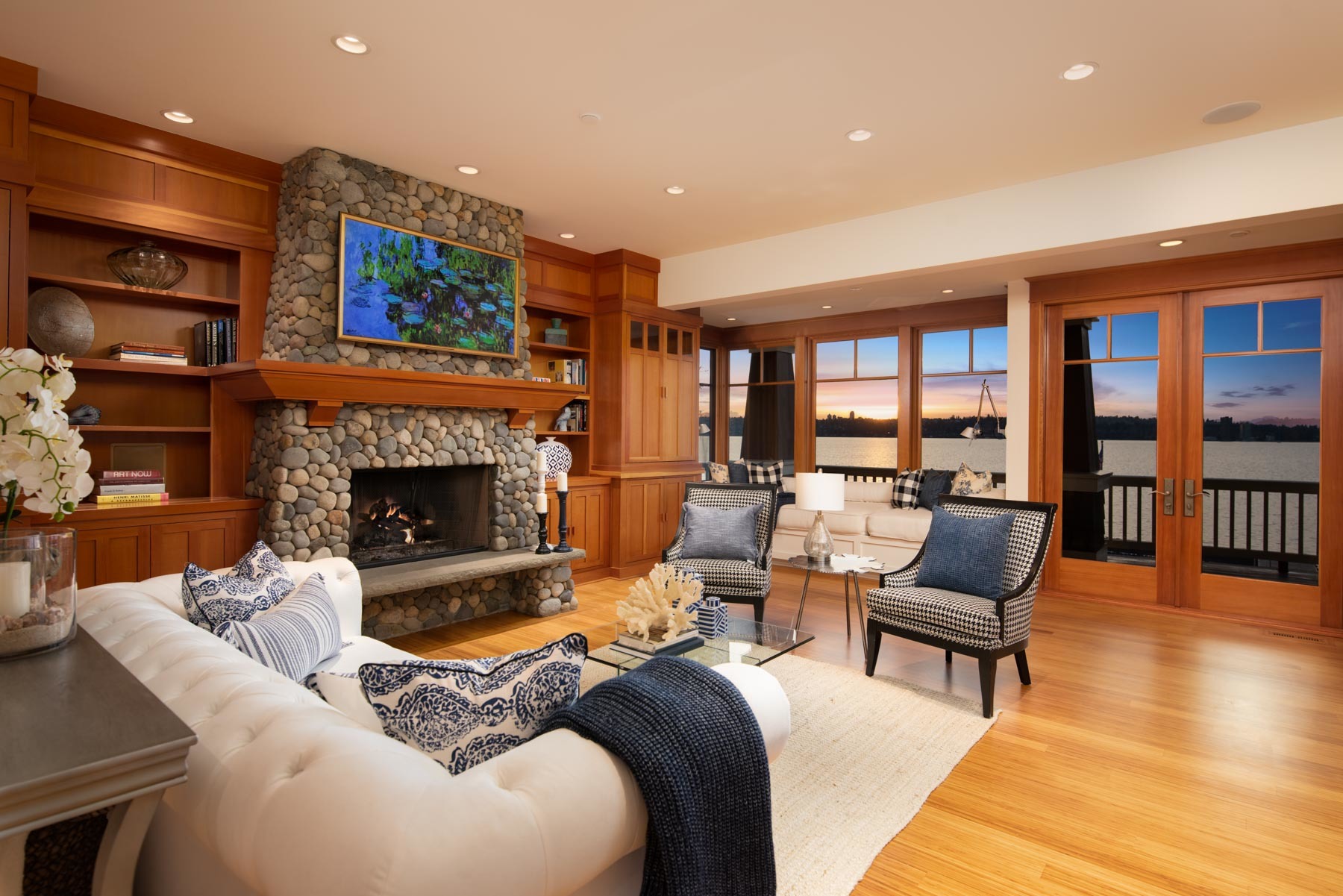 Vacation year round on the shores of Lake Washington.One of the most private & secure retreats along the lake, a rare waterfront treasure. From the auto courtyard w/Private Guest House, take an enchanting tram ride to a masterfully crafted beach house, great room living at its best w/unending views & just ten steps to the shore.Enjoy outdoor living on the covered wrap around deck,sweeping lawns,an impressive dock,125' of wft,stand-alone artists studio & so much more.Youll never want to leave.