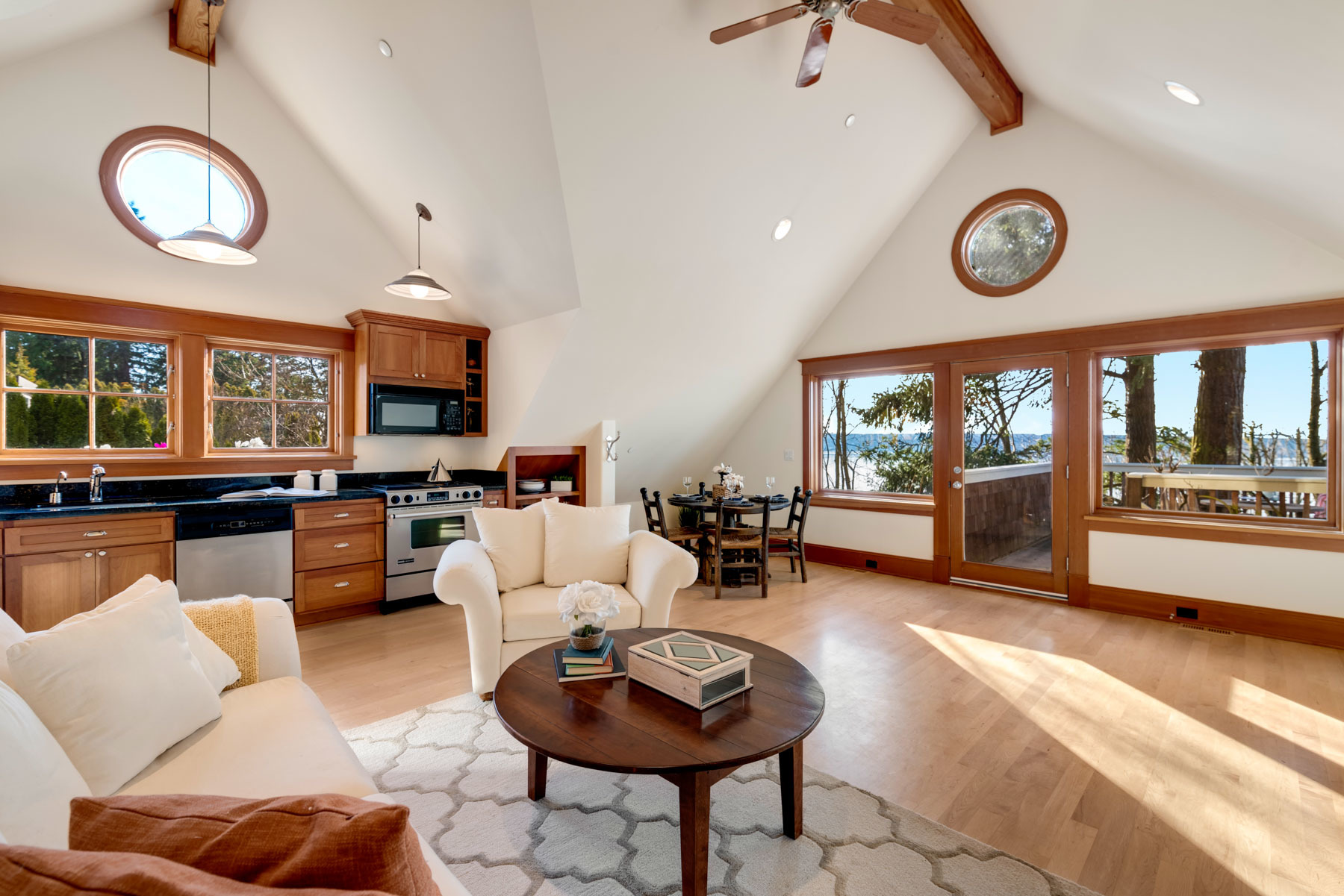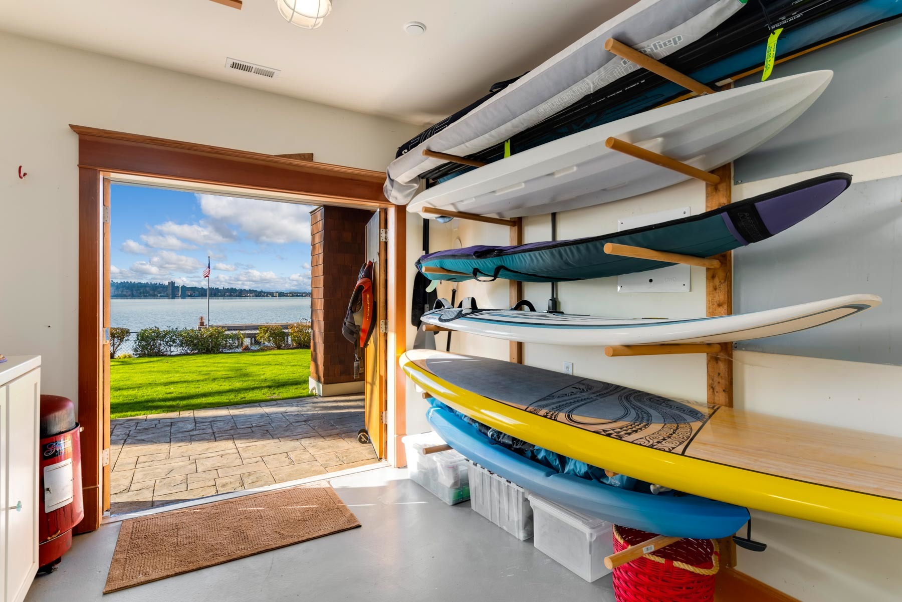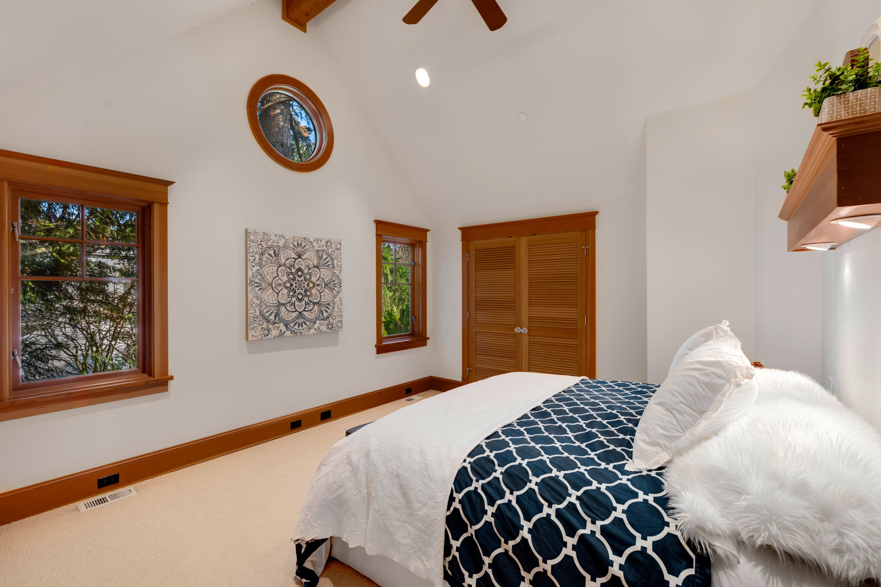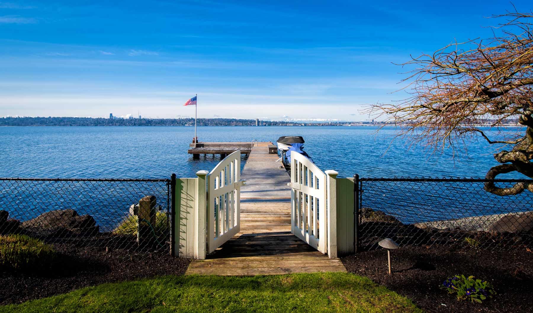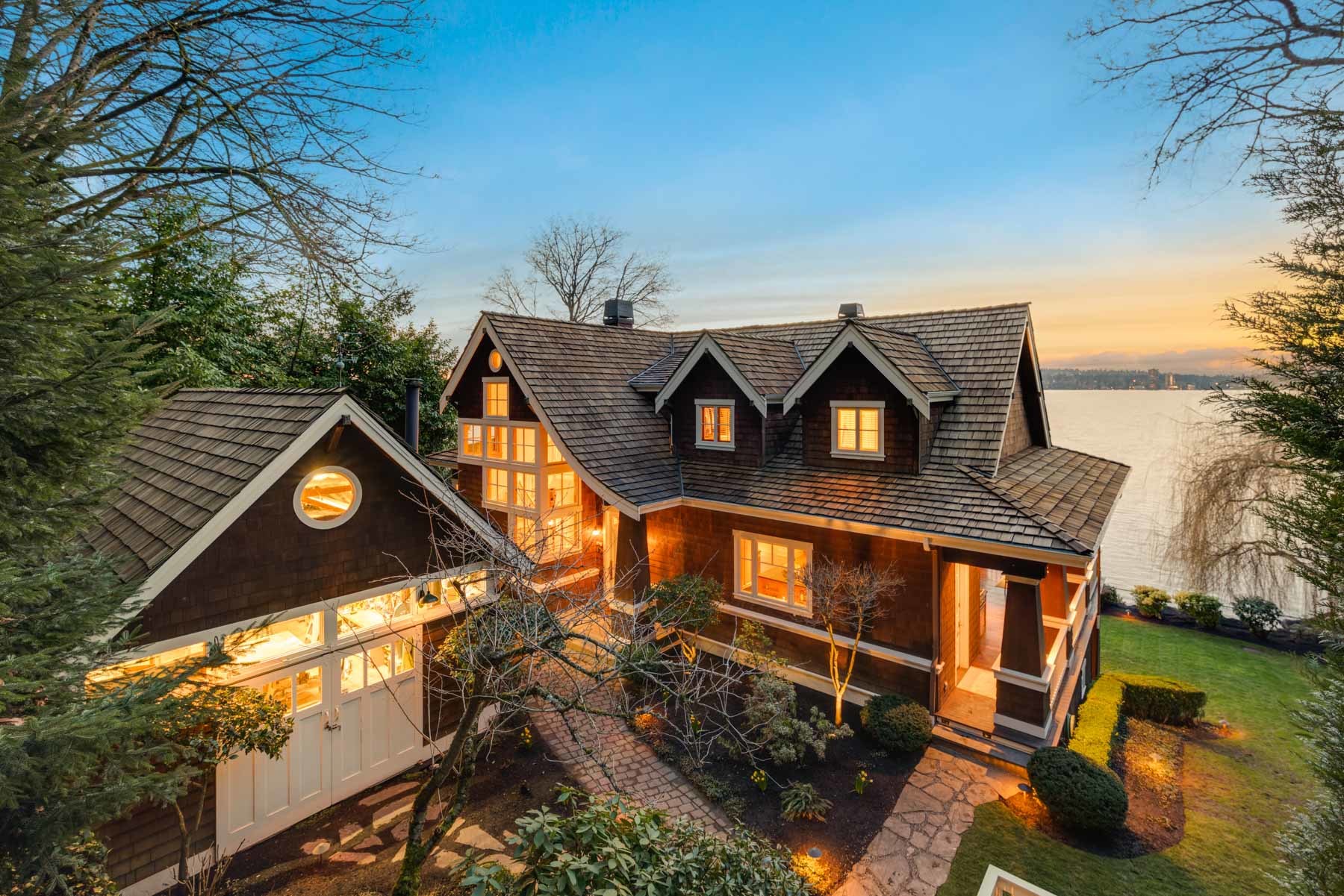 Vacation year round on the shores of Lake Washington.One of the most private & secure retreats along the lake, a rare waterfront treasure. From the auto courtyard w/Private Guest House, take an enchanting tram ride to a masterfully crafted beach house, great room living at its best w/unending views & just ten steps to the shore.Enjoy outdoor living on the covered wrap around deck,sweeping lawns,an impressive dock,125' of wft,stand-alone artists studio & so much more.Youll never want to leave.