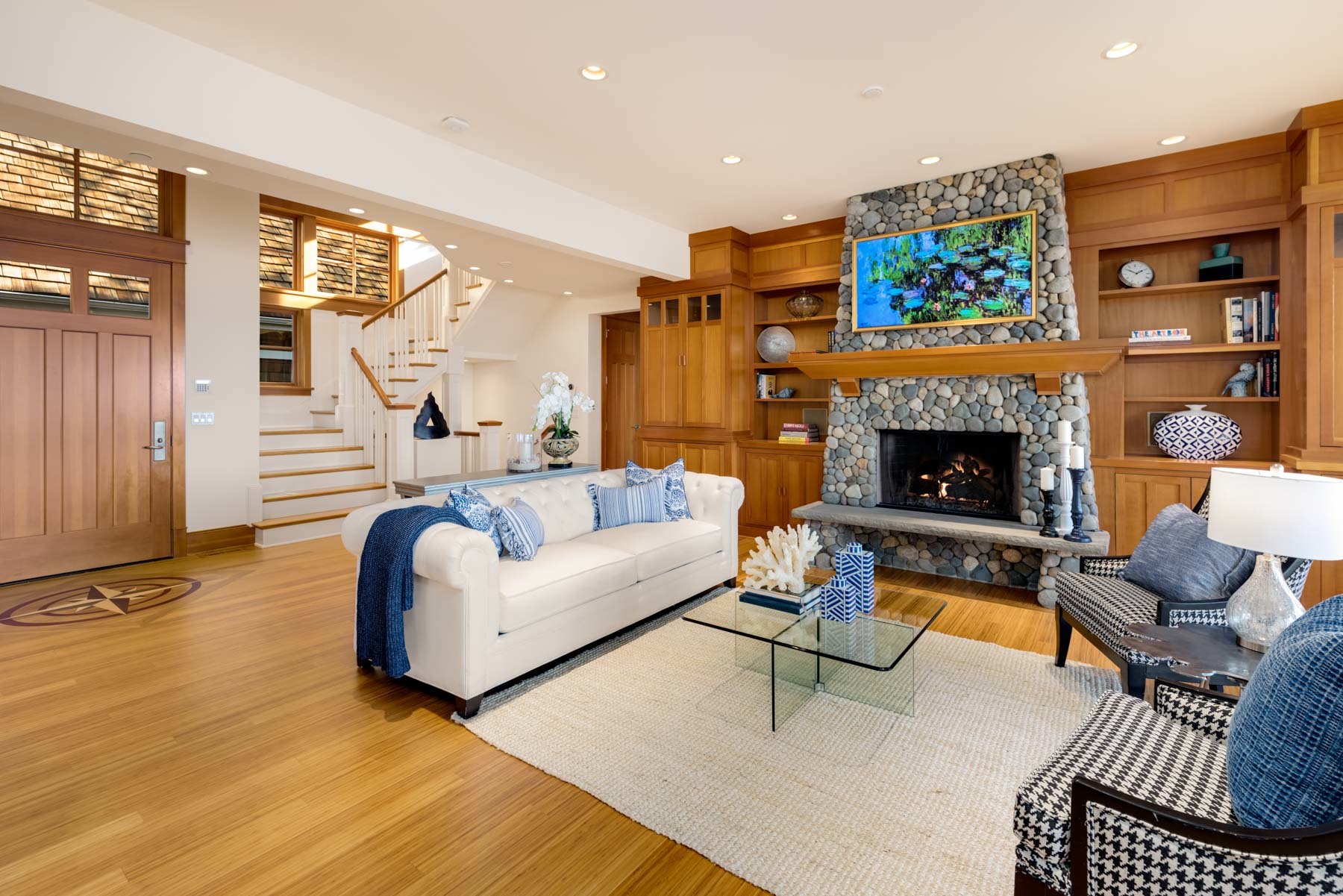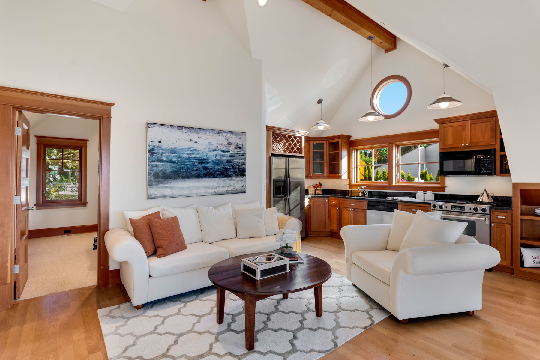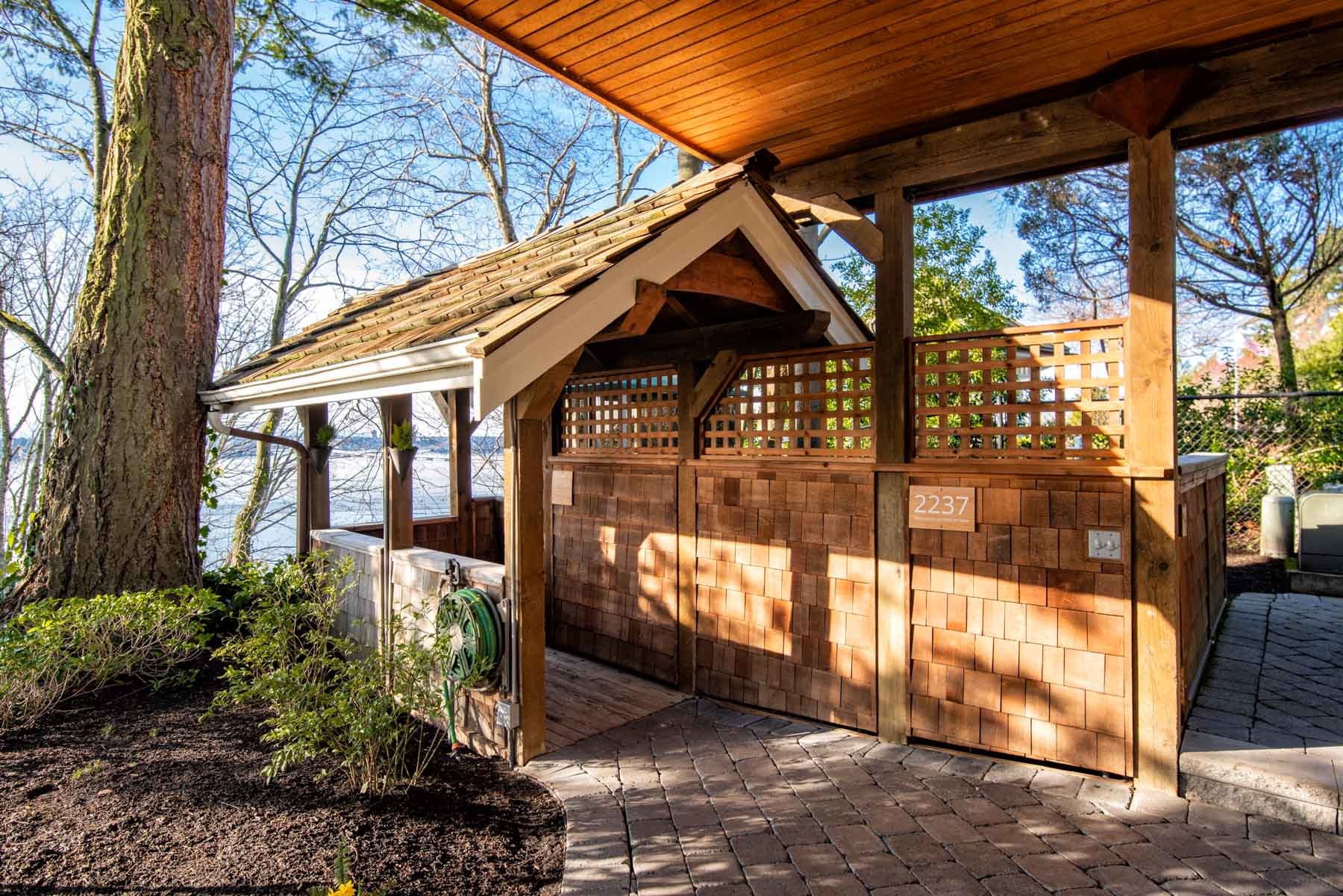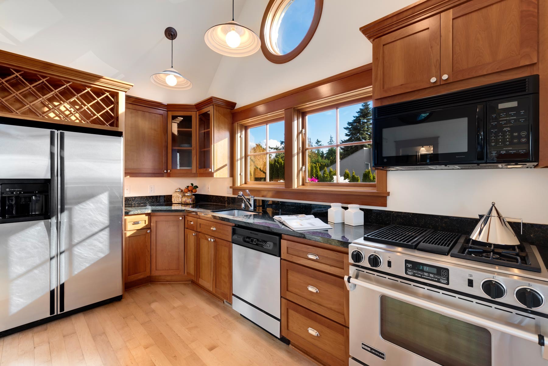 Vacation year round on the shores of Lake Washington.One of the most private & secure retreats along the lake, a rare waterfront treasure. From the auto courtyard w/Private Guest House, take an enchanting tram ride to a masterfully crafted beach house, great room living at its best w/unending views & just ten steps to the shore.Enjoy outdoor living on the covered wrap around deck,sweeping lawns,an impressive dock,125' of wft,stand-alone artists studio & so much more.Youll never want to leave.