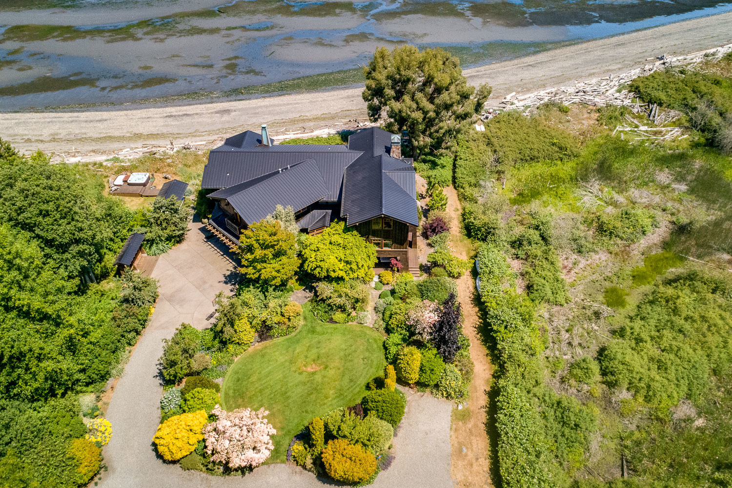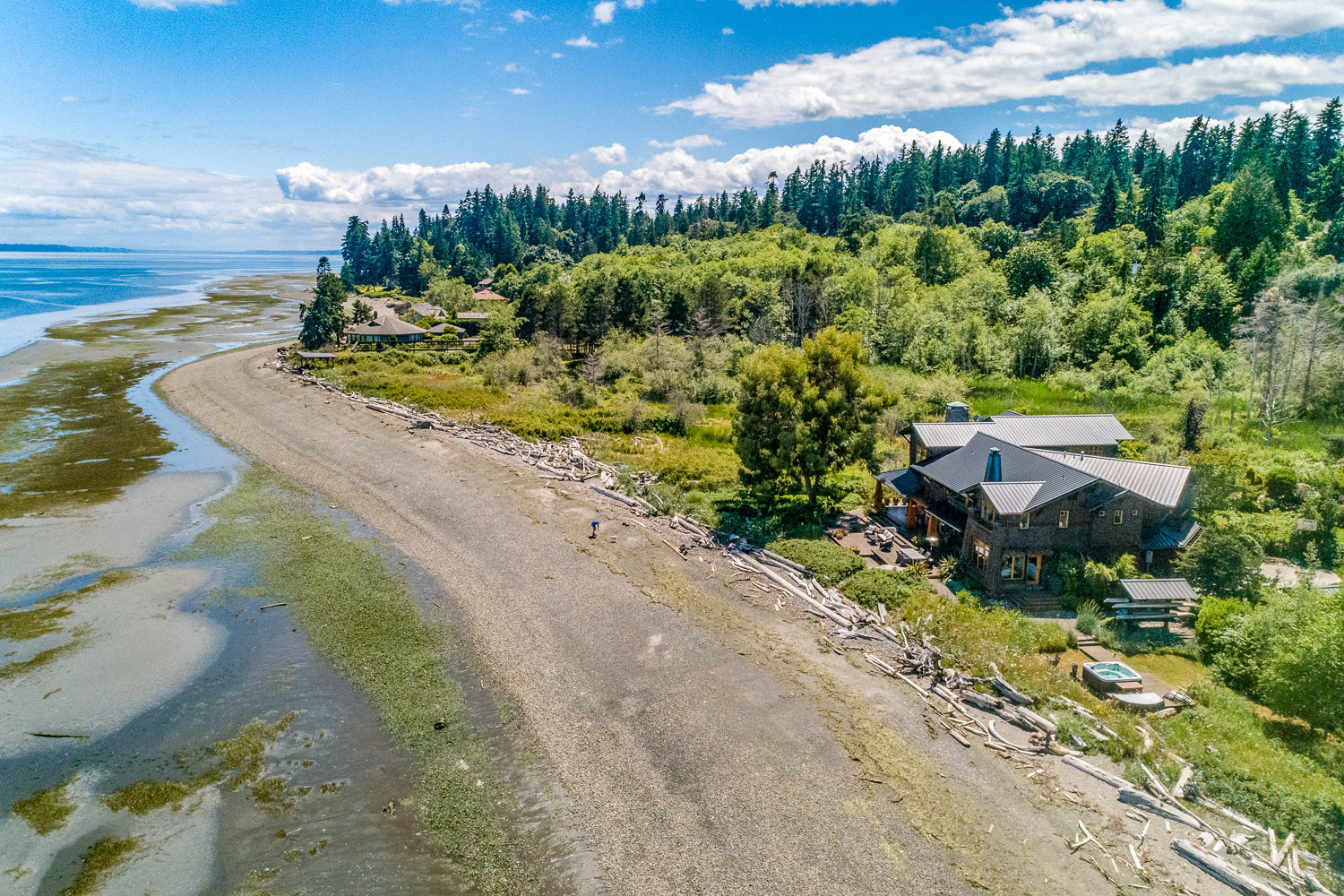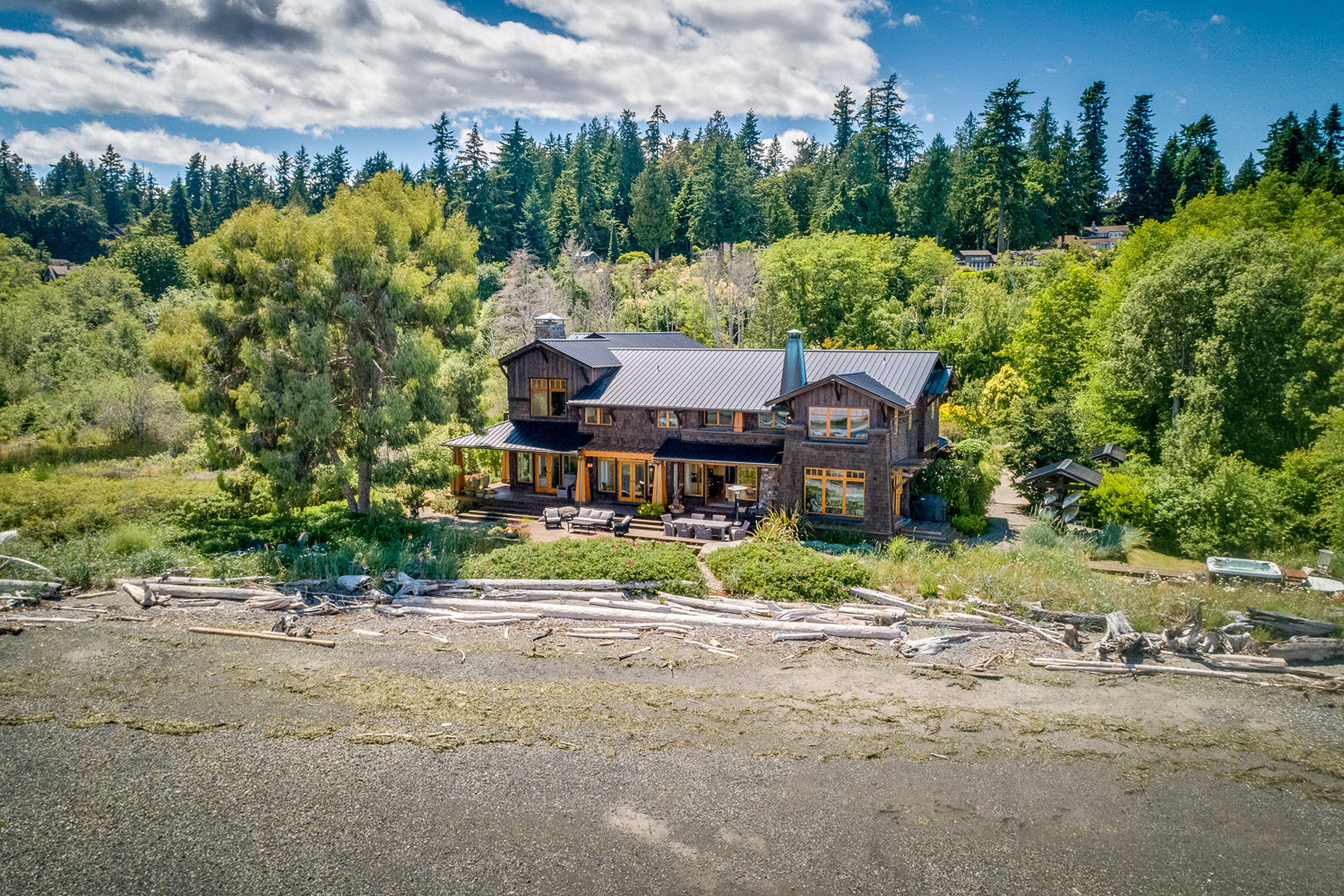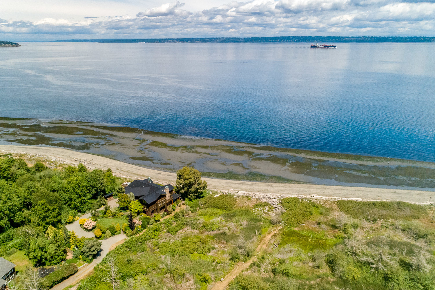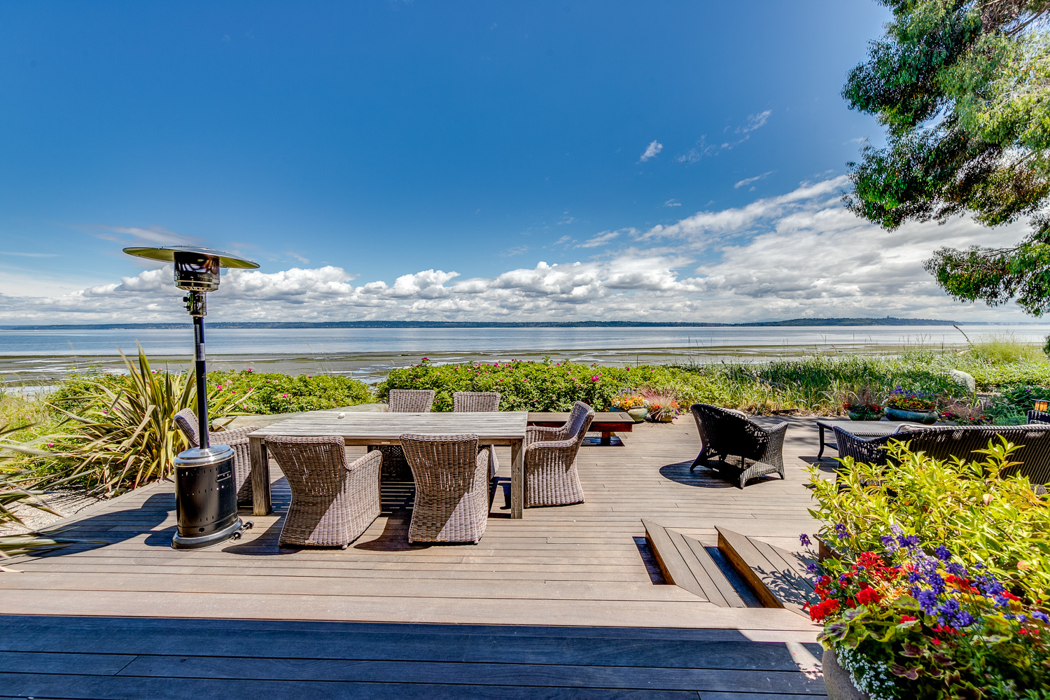 Luxurious beachfront home with Architectural Digest quality finishes. You could travel the world looking for something like this! 180 feet of no bank sandy beach with spectacular Sound views from Mt. Baker to Mt. Rainier with open space to either side. Beautiful developed gardens with a lovely patio & large decks, a hot tub & spa, & privacy with all day sun. 4 bdrm, 4.75 bath home with exquisite local artist touches & handsome built-ins. 2 generous offices, & a soundproof music studio/gym.