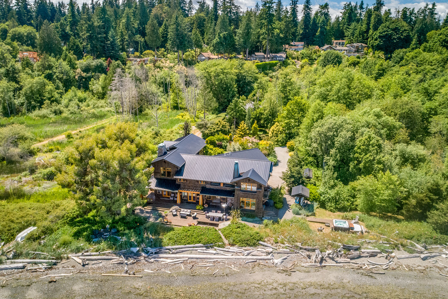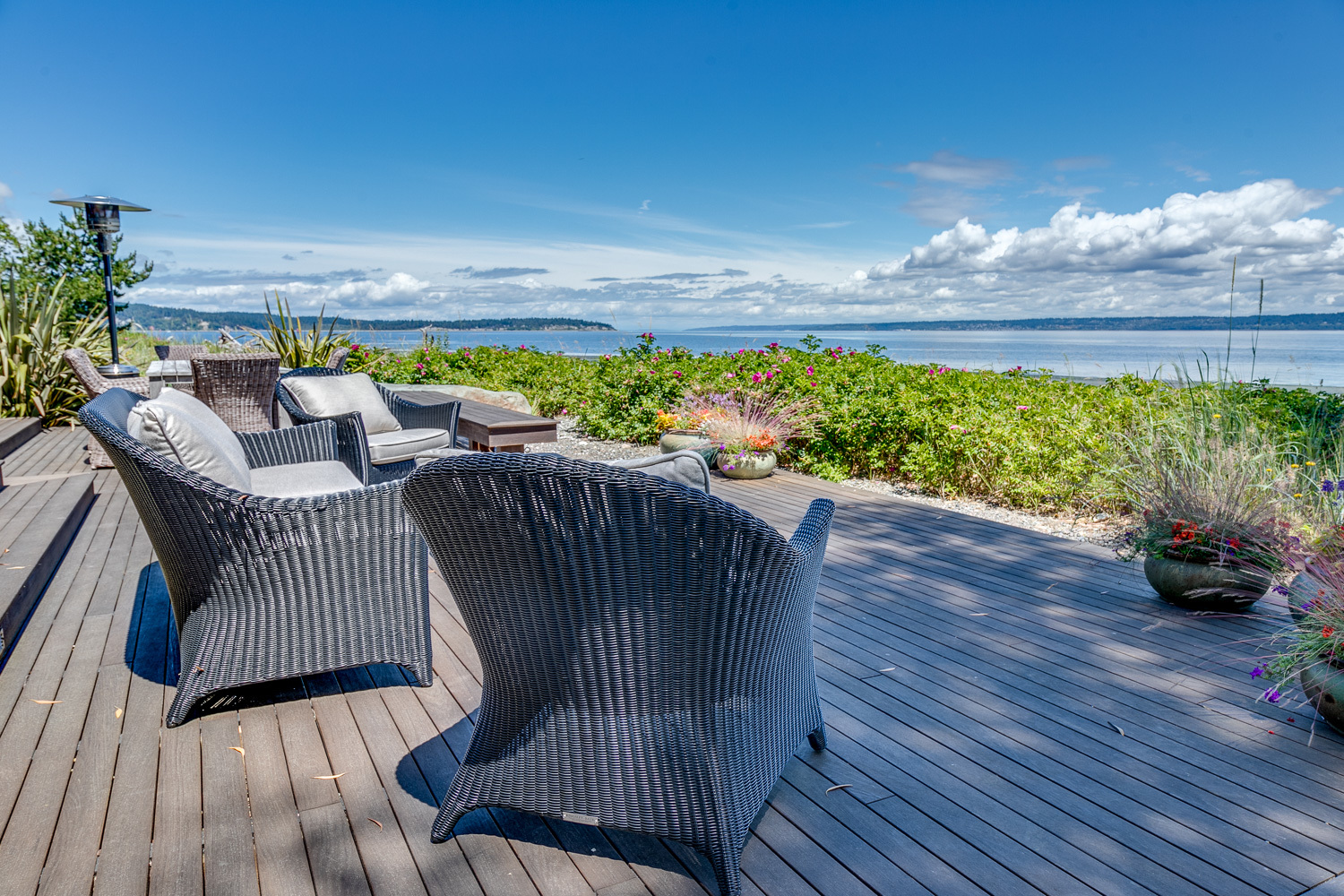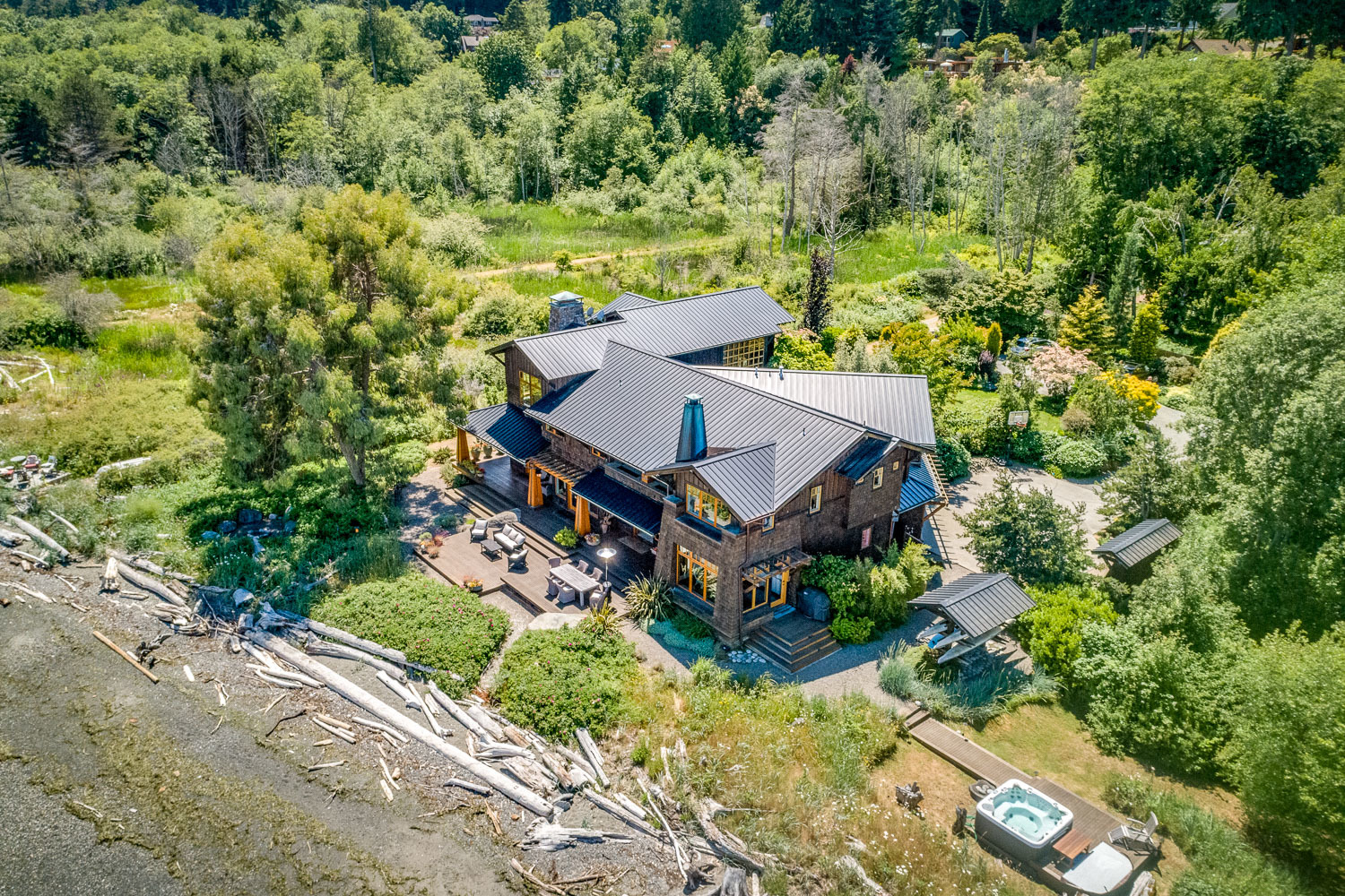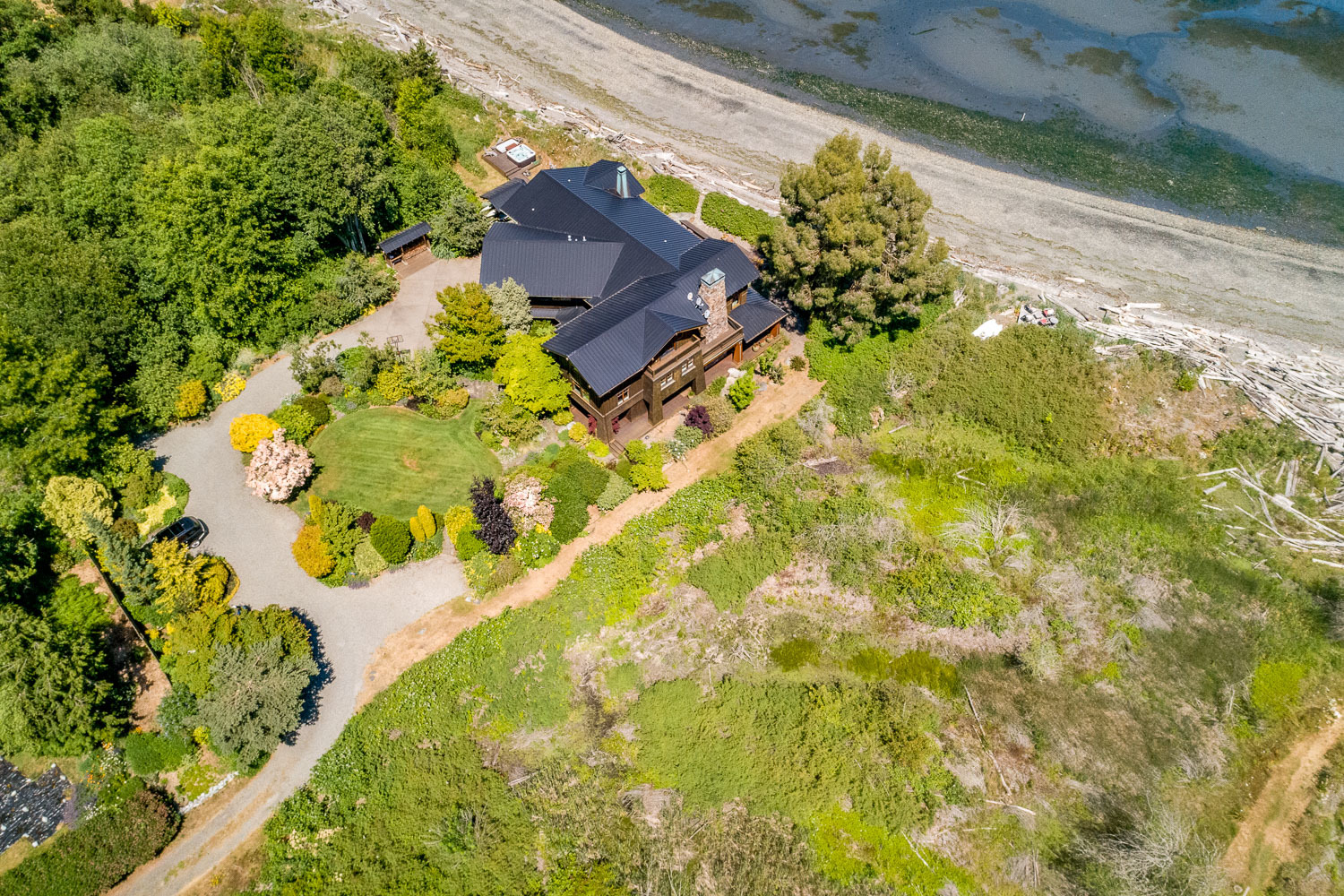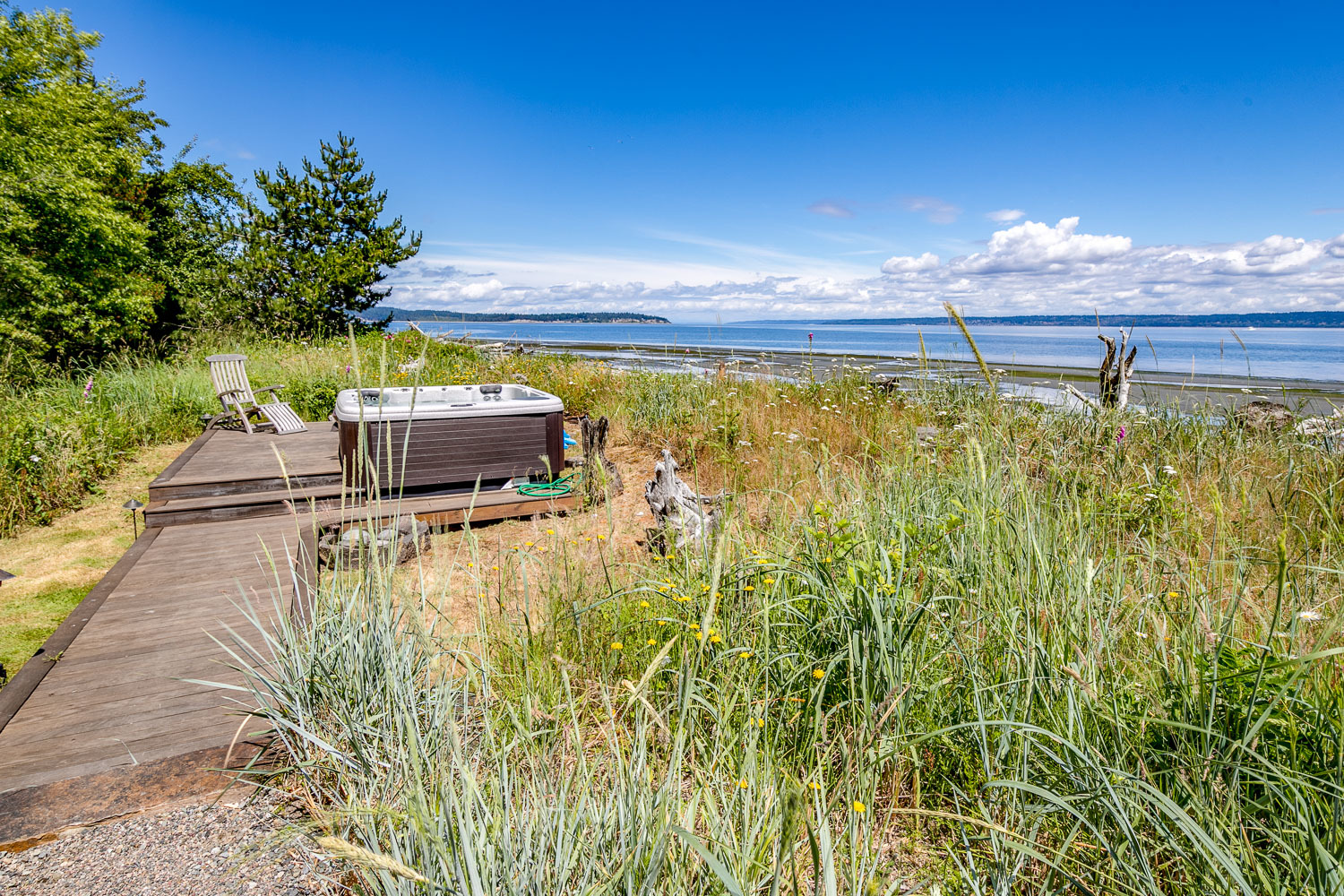 Luxurious beachfront home with Architectural Digest quality finishes. You could travel the world looking for something like this! 180 feet of no bank sandy beach with spectacular Sound views from Mt. Baker to Mt. Rainier with open space to either side. Beautiful developed gardens with a lovely patio & large decks, a hot tub & spa, & privacy with all day sun. 4 bdrm, 4.75 bath home with exquisite local artist touches & handsome built-ins. 2 generous offices, & a soundproof music studio/gym.