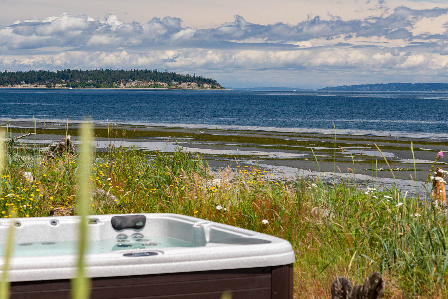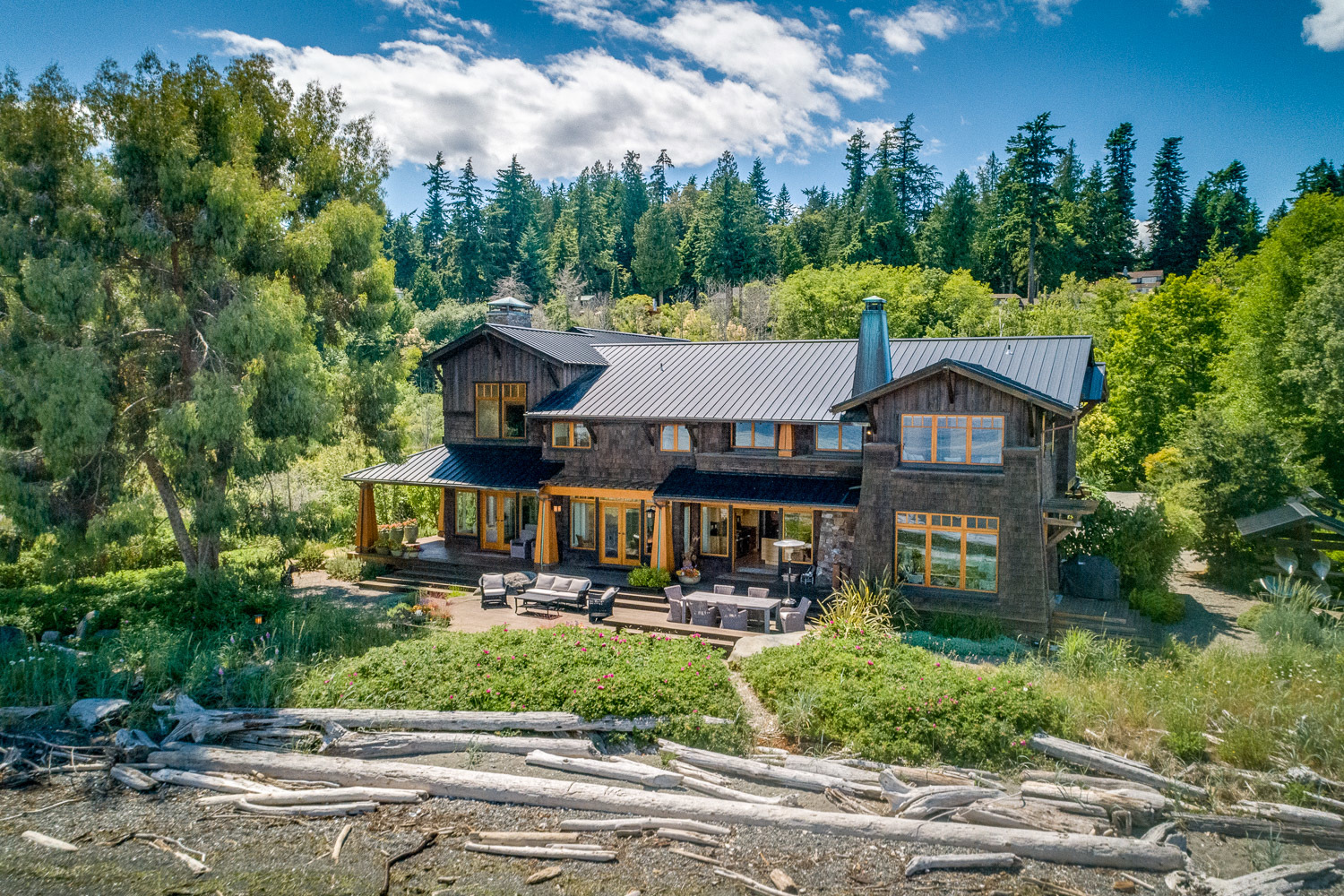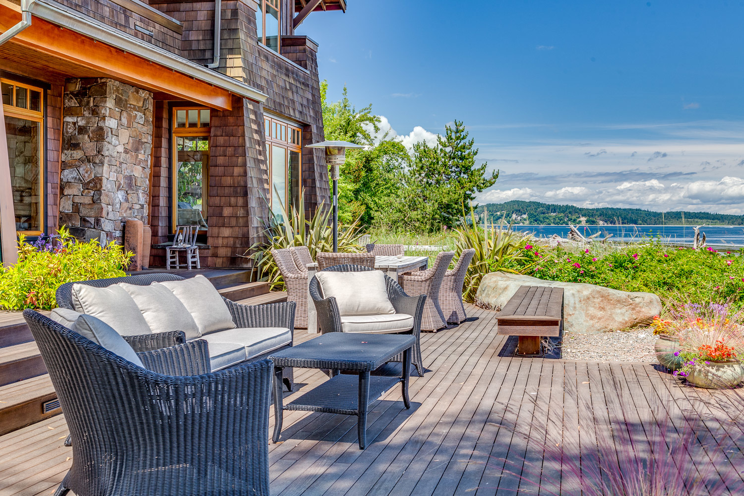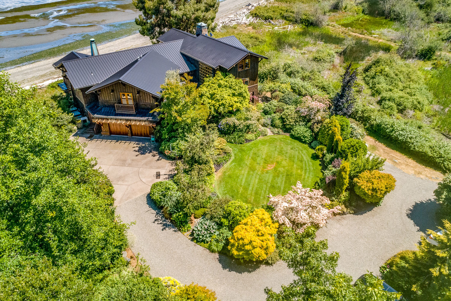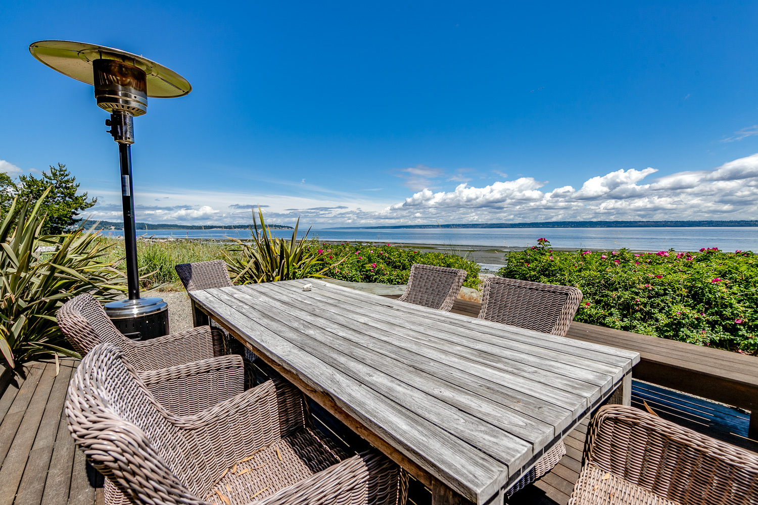 Luxurious beachfront home with Architectural Digest quality finishes. You could travel the world looking for something like this! 180 feet of no bank sandy beach with spectacular Sound views from Mt. Baker to Mt. Rainier with open space to either side. Beautiful developed gardens with a lovely patio & large decks, a hot tub & spa, & privacy with all day sun. 4 bdrm, 4.75 bath home with exquisite local artist touches & handsome built-ins. 2 generous offices, & a soundproof music studio/gym.