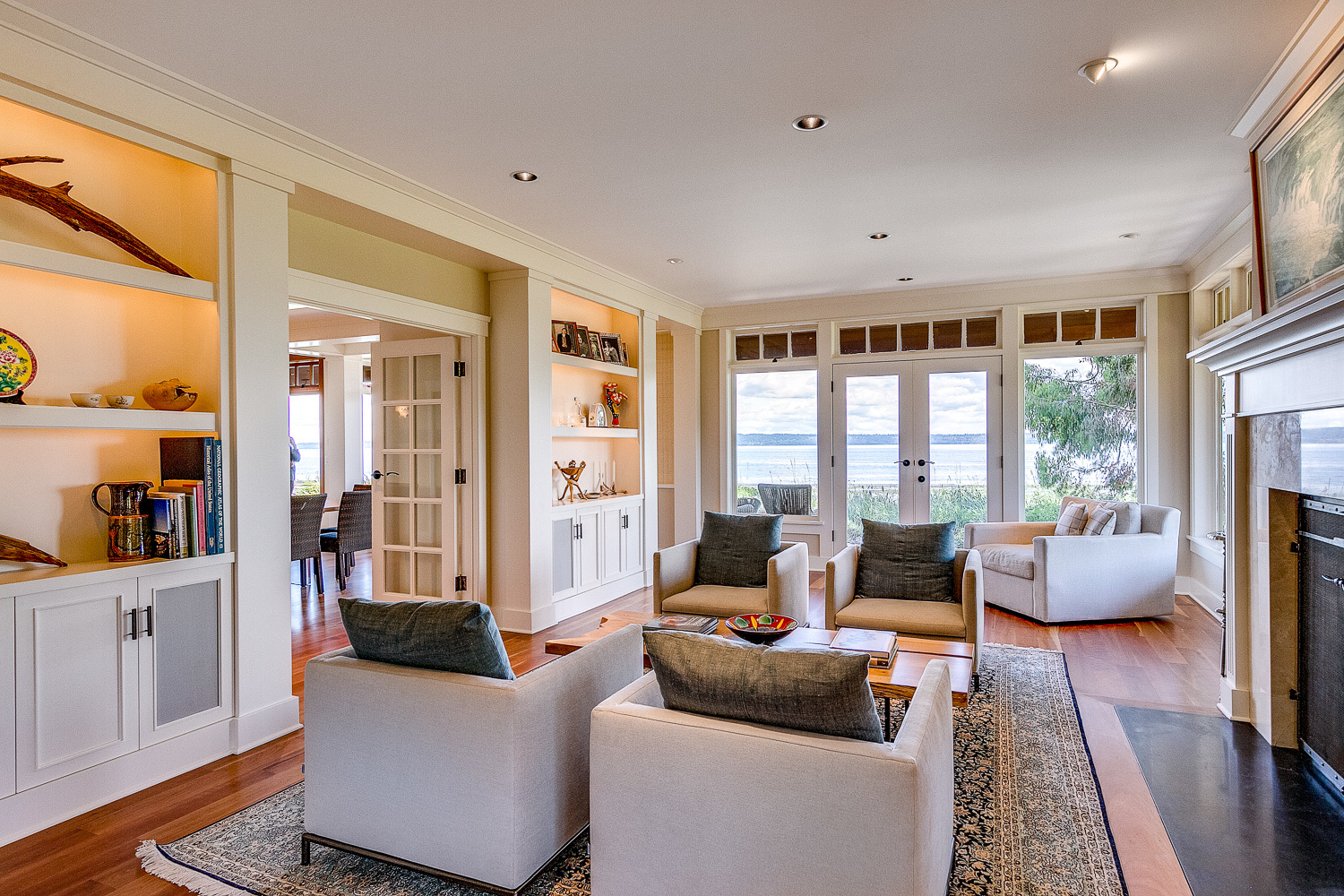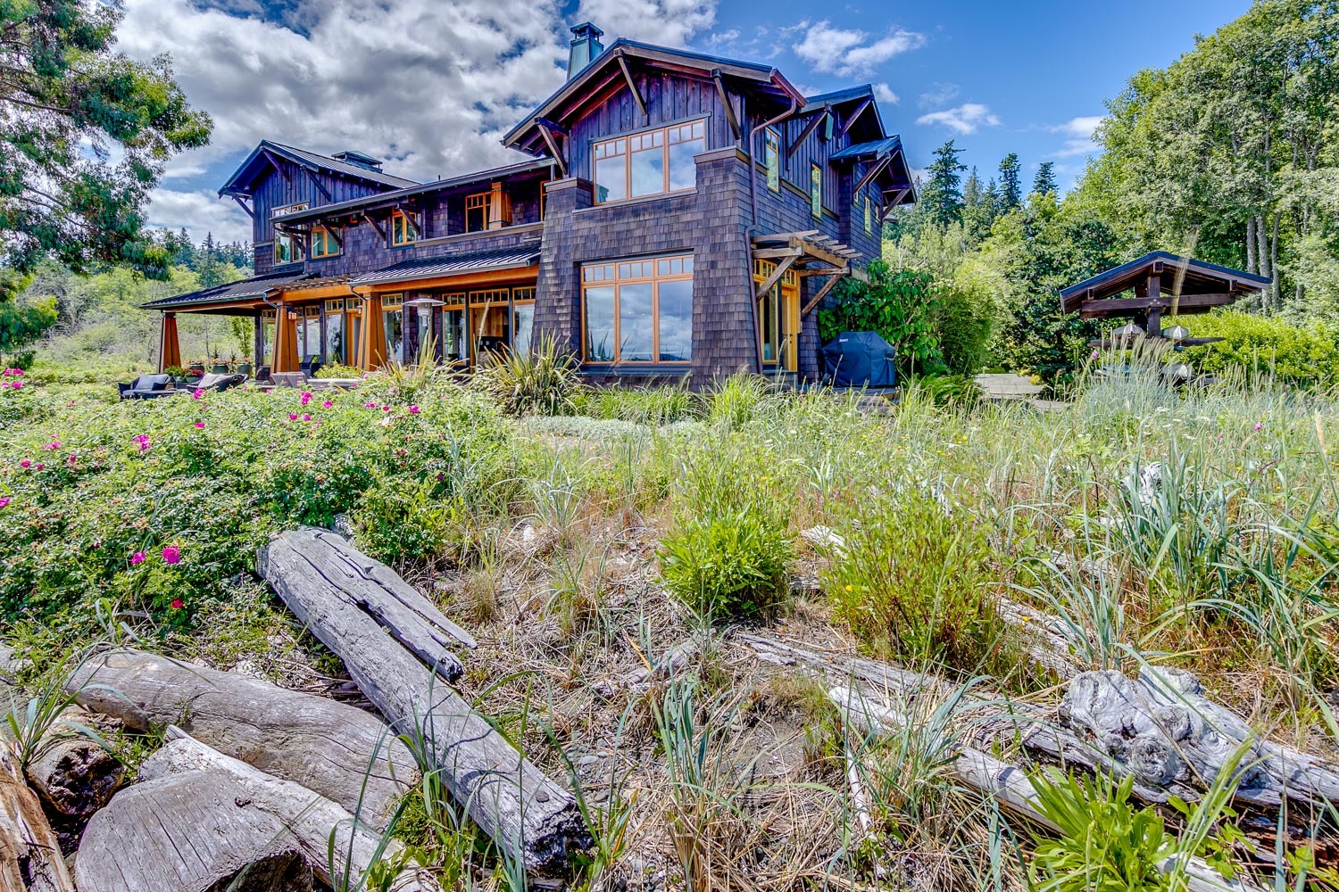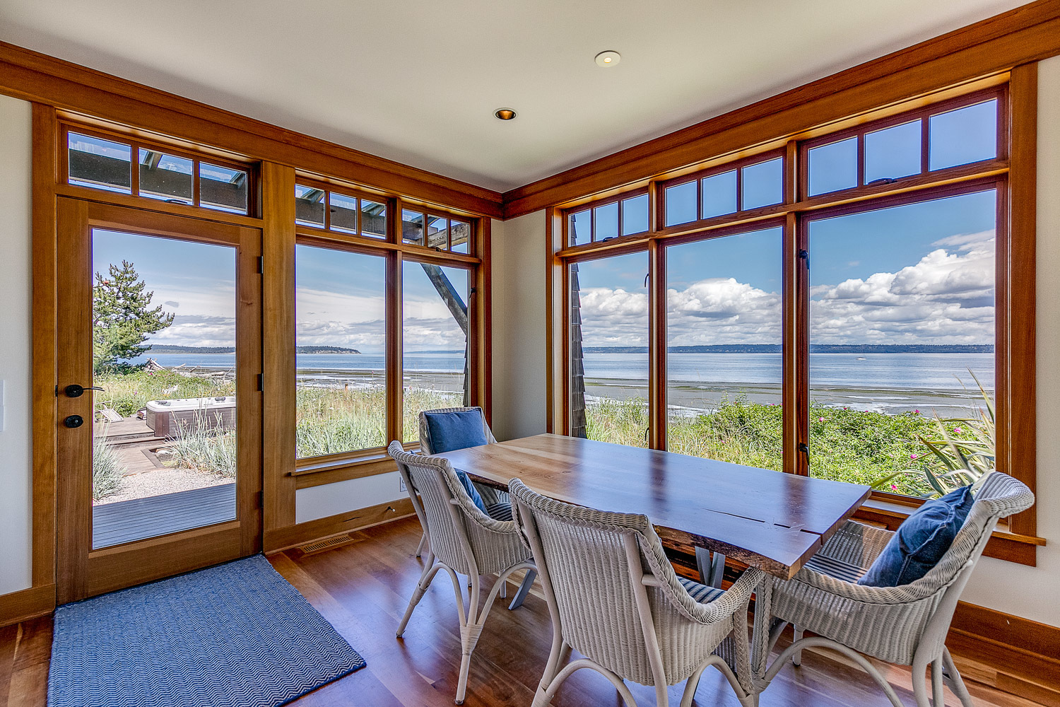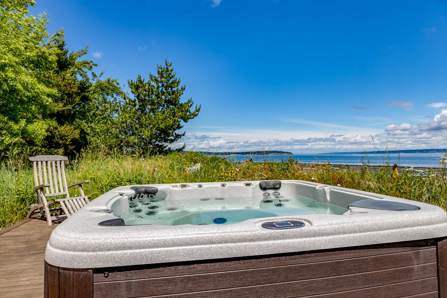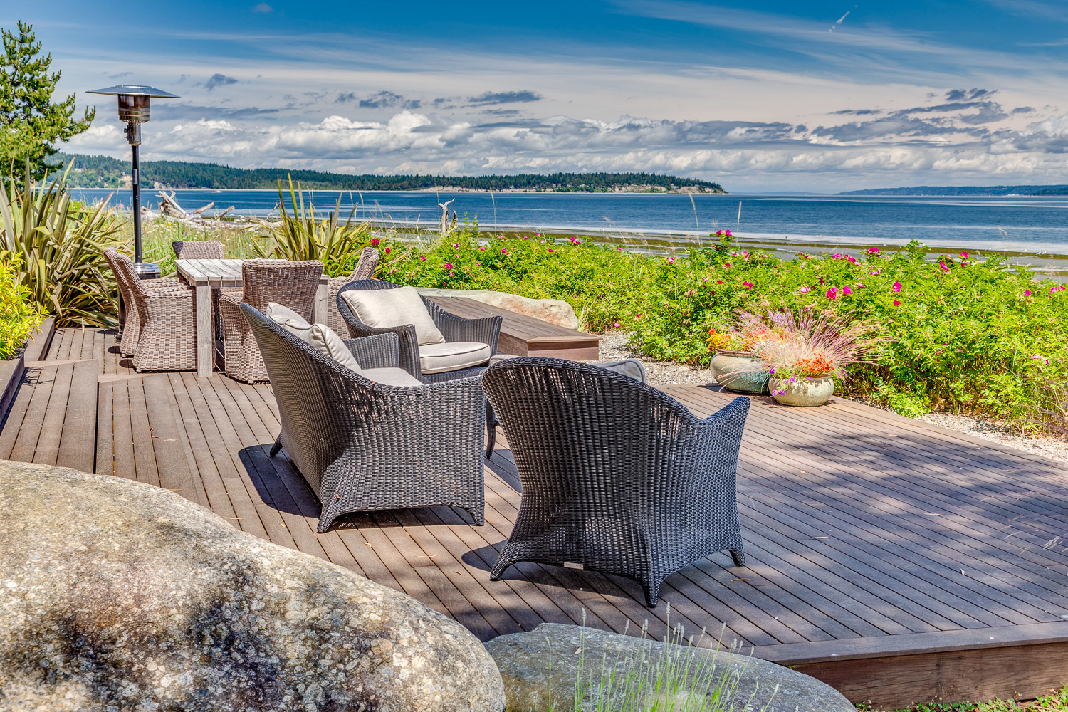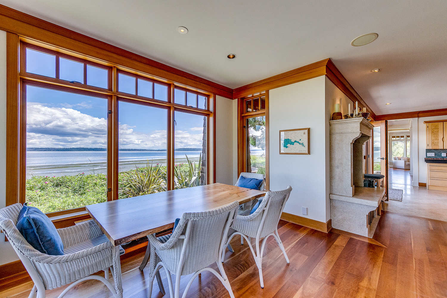 Luxurious beachfront home with Architectural Digest quality finishes. You could travel the world looking for something like this! 180 feet of no bank sandy beach with spectacular Sound views from Mt. Baker to Mt. Rainier with open space to either side. Beautiful developed gardens with a lovely patio & large decks, a hot tub & spa, & privacy with all day sun. 4 bdrm, 4.75 bath home with exquisite local artist touches & handsome built-ins. 2 generous offices, & a soundproof music studio/gym.