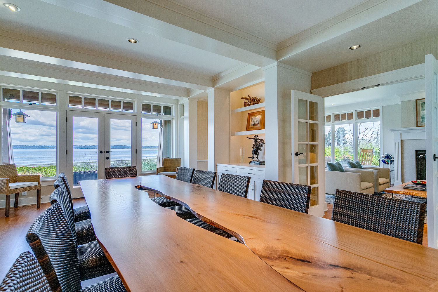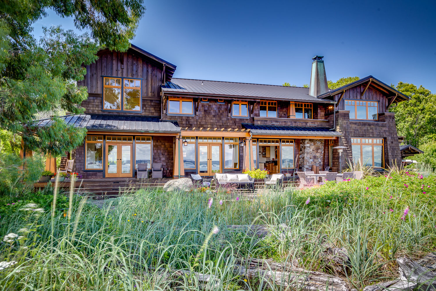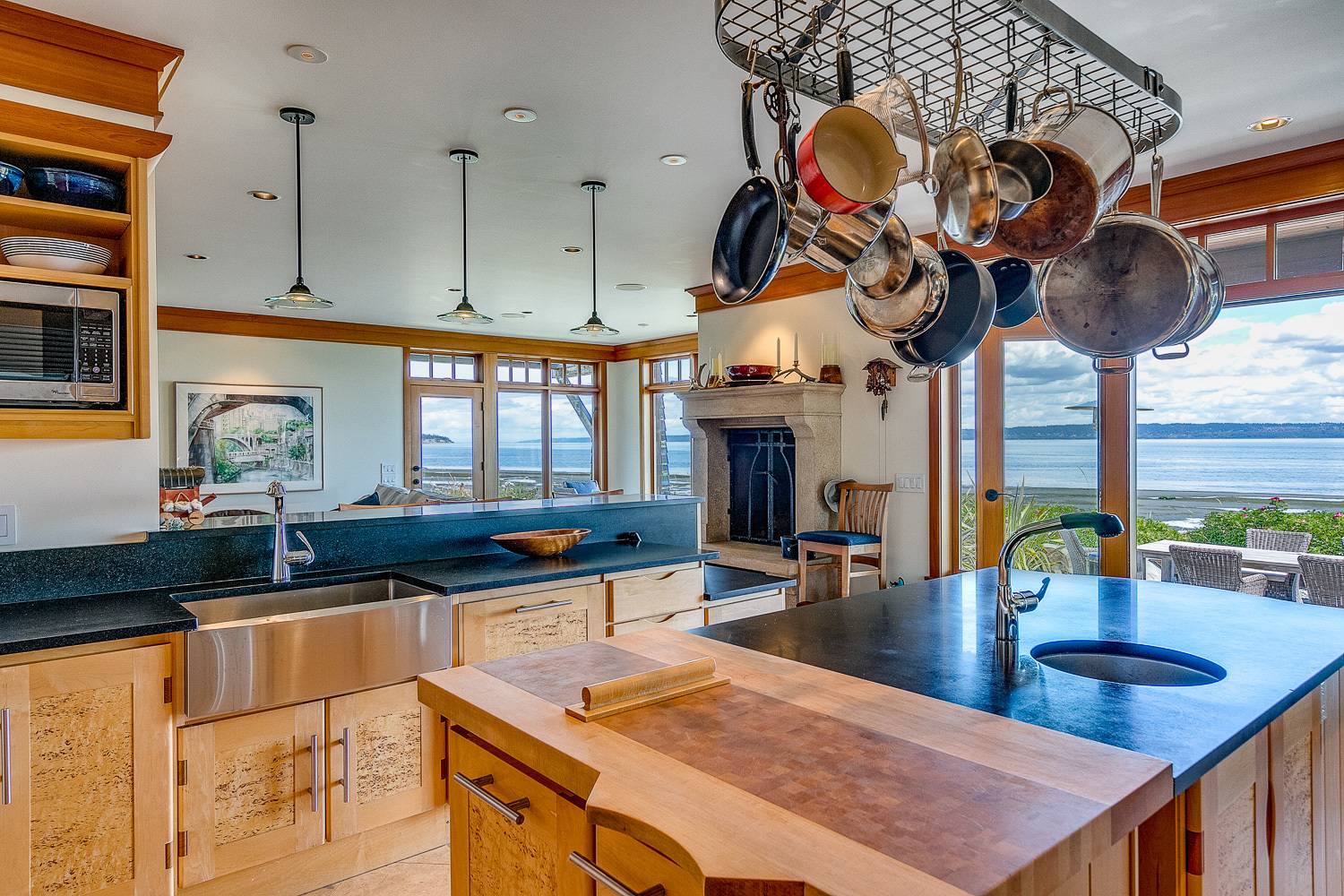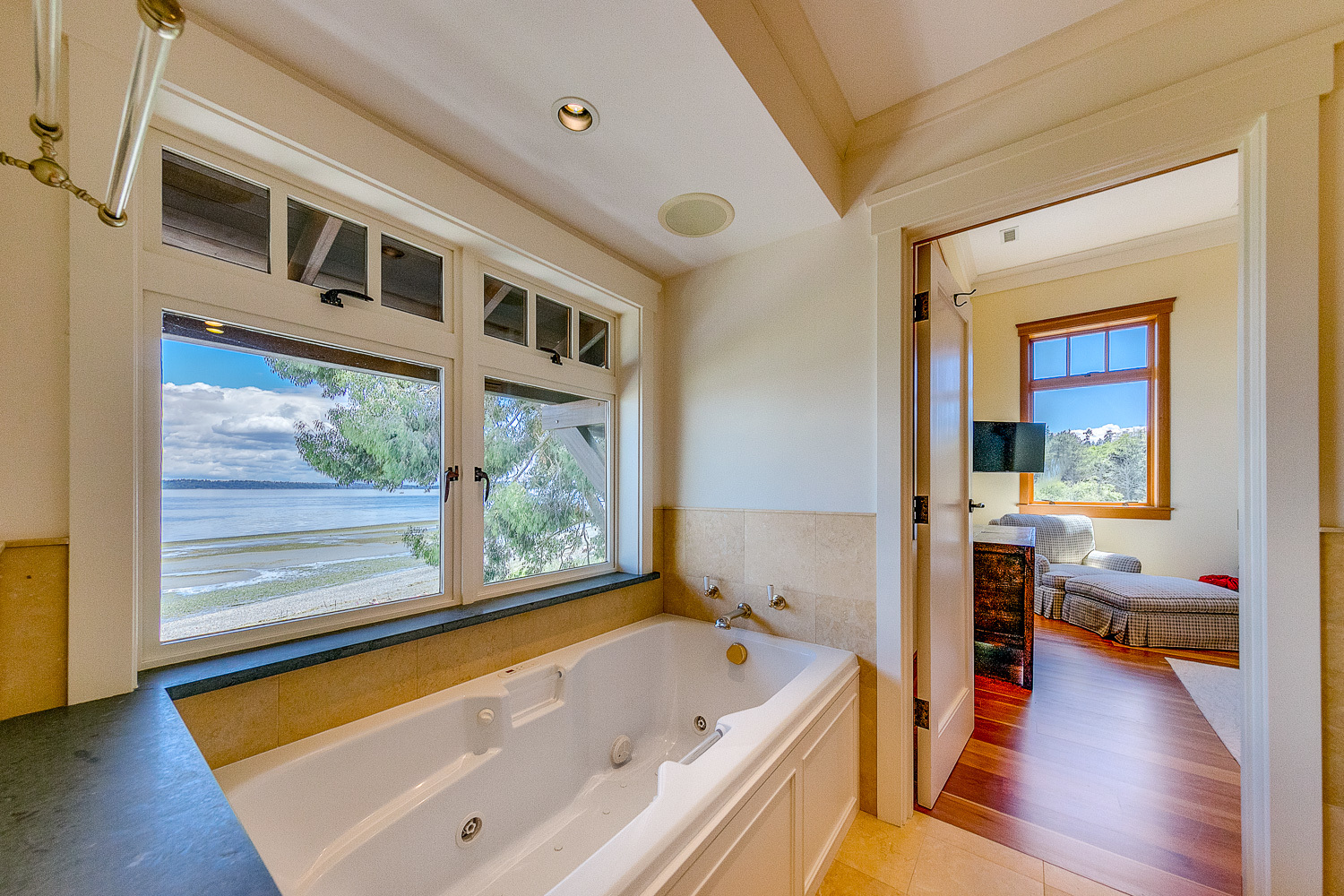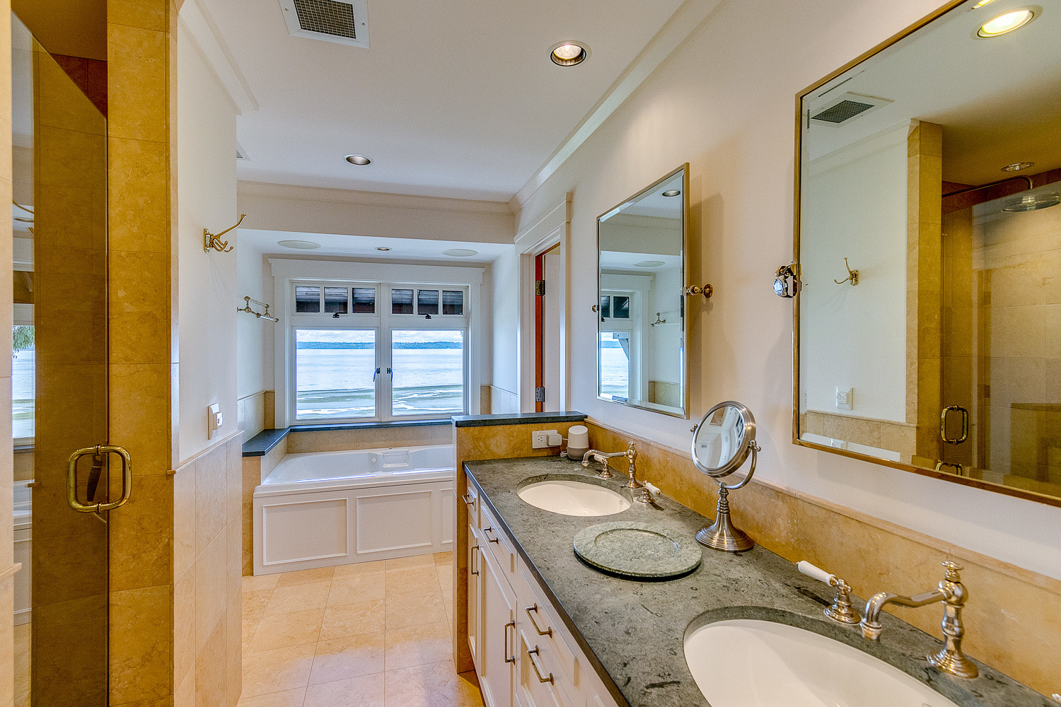 Luxurious beachfront home with Architectural Digest quality finishes. You could travel the world looking for something like this! 180 feet of no bank sandy beach with spectacular Sound views from Mt. Baker to Mt. Rainier with open space to either side. Beautiful developed gardens with a lovely patio & large decks, a hot tub & spa, & privacy with all day sun. 4 bdrm, 4.75 bath home with exquisite local artist touches & handsome built-ins. 2 generous offices, & a soundproof music studio/gym.
