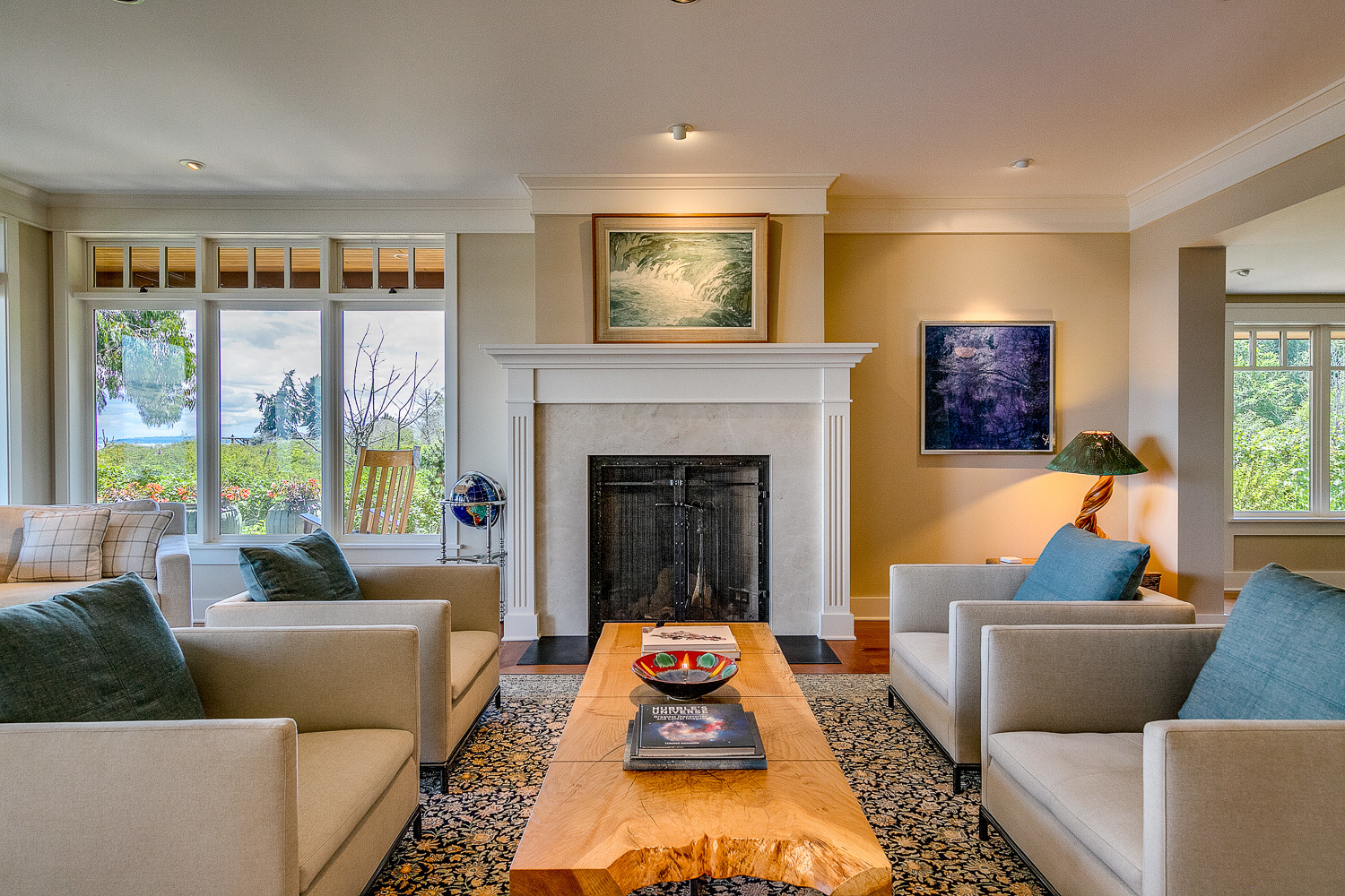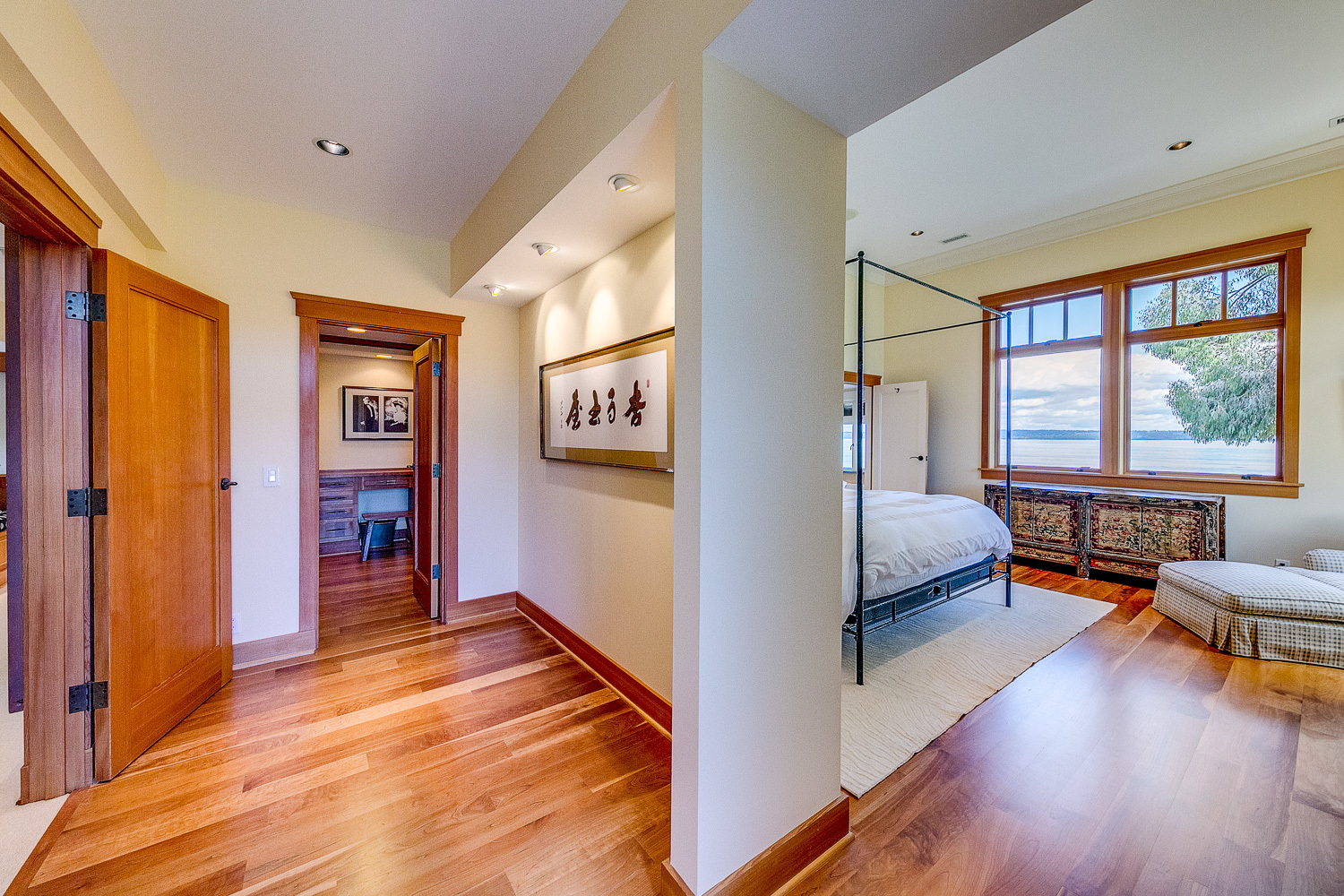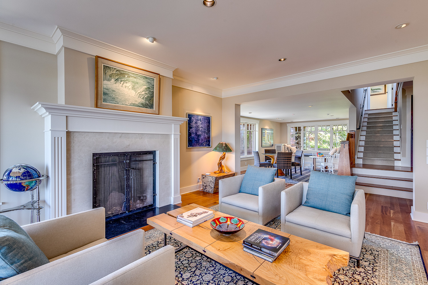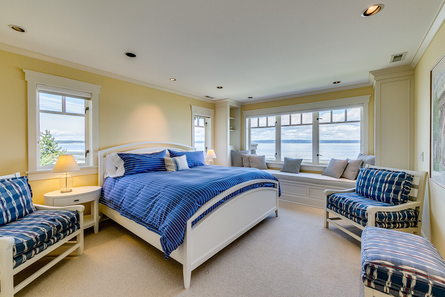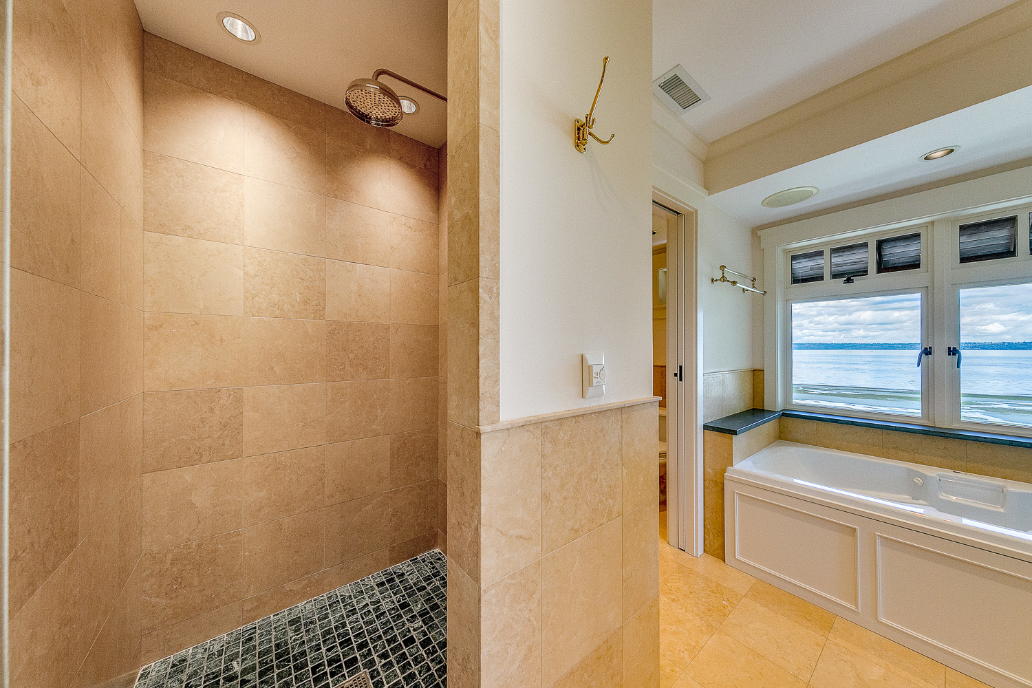 Luxurious beachfront home with Architectural Digest quality finishes. You could travel the world looking for something like this! 180 feet of no bank sandy beach with spectacular Sound views from Mt. Baker to Mt. Rainier with open space to either side. Beautiful developed gardens with a lovely patio & large decks, a hot tub & spa, & privacy with all day sun. 4 bdrm, 4.75 bath home with exquisite local artist touches & handsome built-ins. 2 generous offices, & a soundproof music studio/gym.