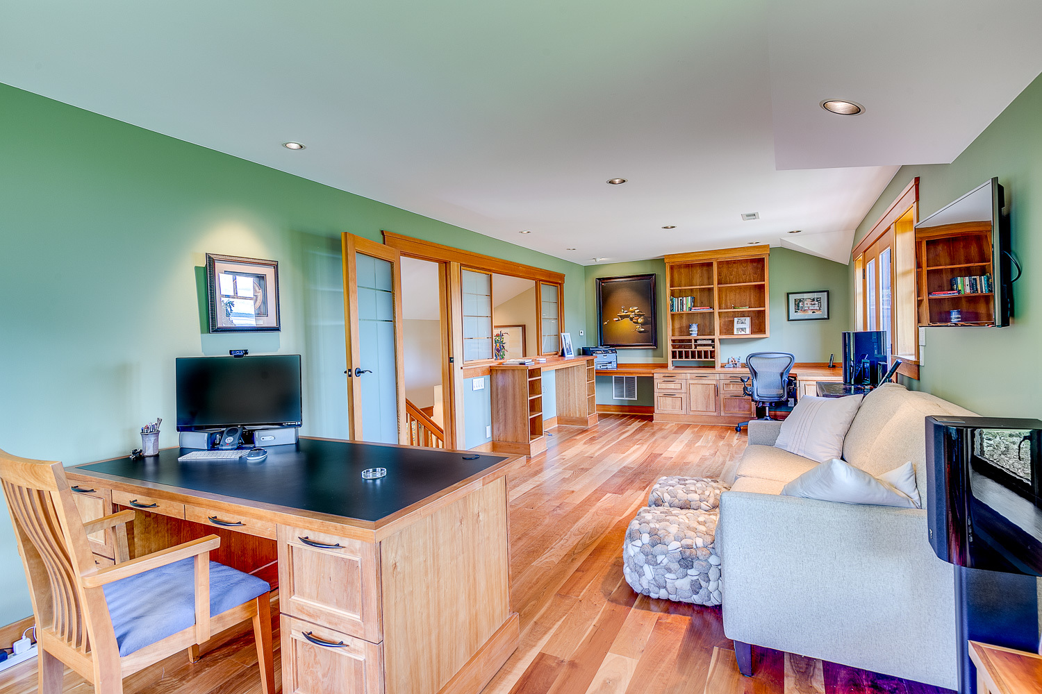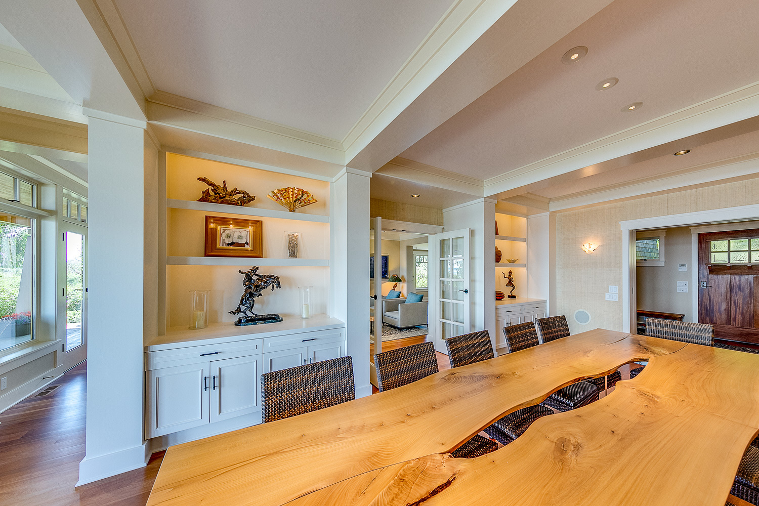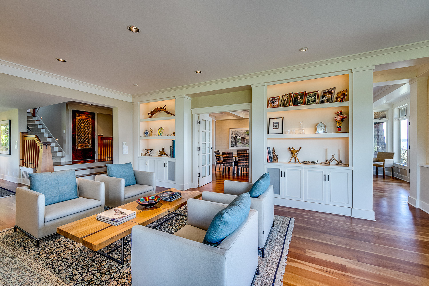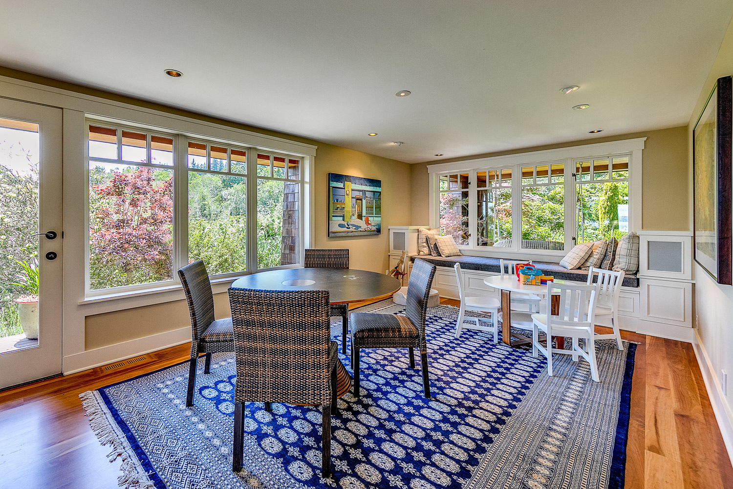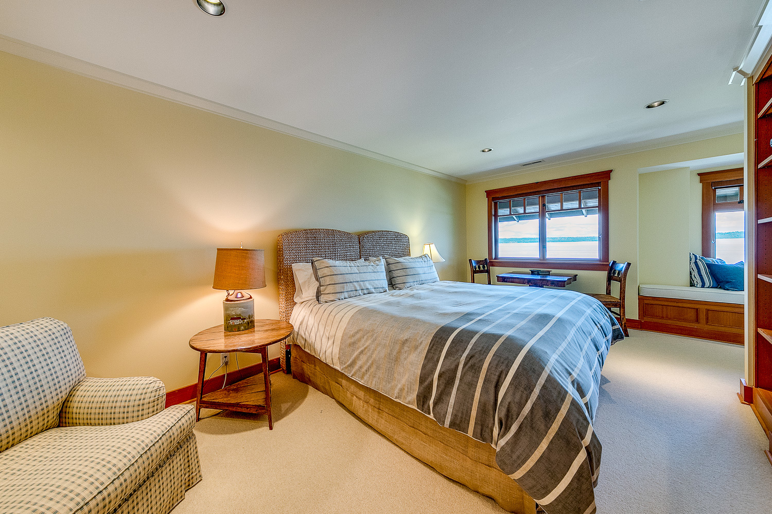 Luxurious beachfront home with Architectural Digest quality finishes. You could travel the world looking for something like this! 180 feet of no bank sandy beach with spectacular Sound views from Mt. Baker to Mt. Rainier with open space to either side. Beautiful developed gardens with a lovely patio & large decks, a hot tub & spa, & privacy with all day sun. 4 bdrm, 4.75 bath home with exquisite local artist touches & handsome built-ins. 2 generous offices, & a soundproof music studio/gym.