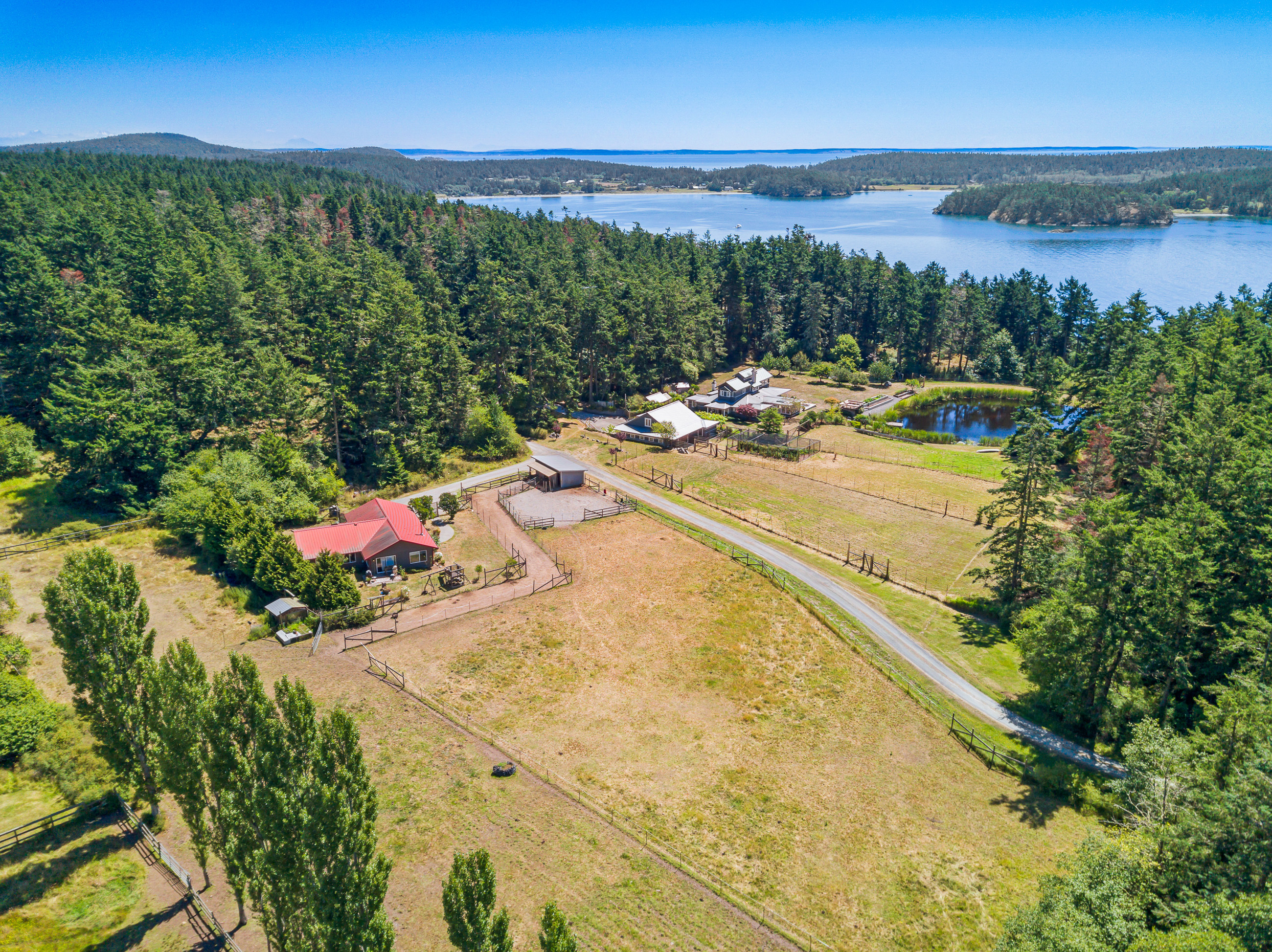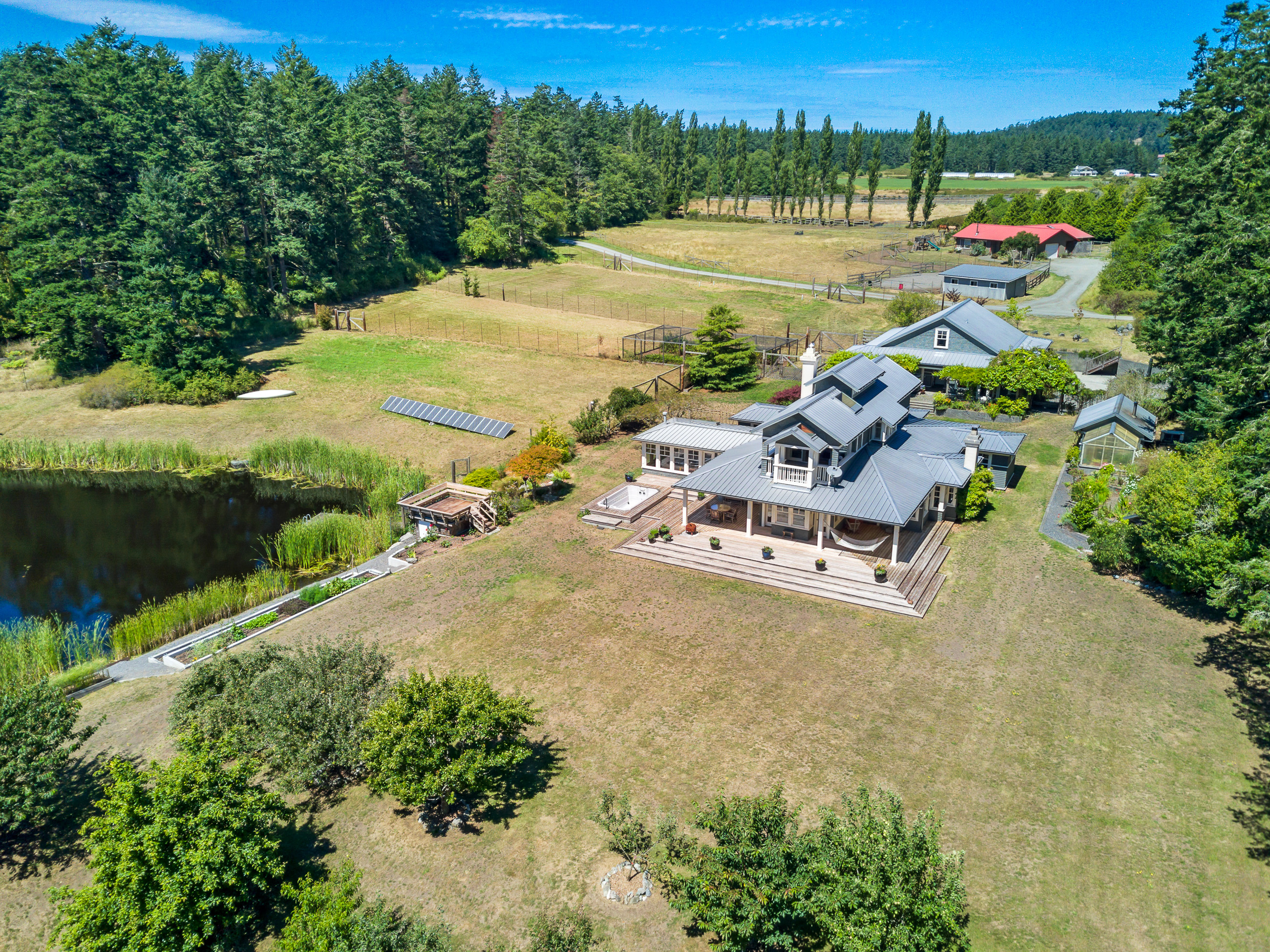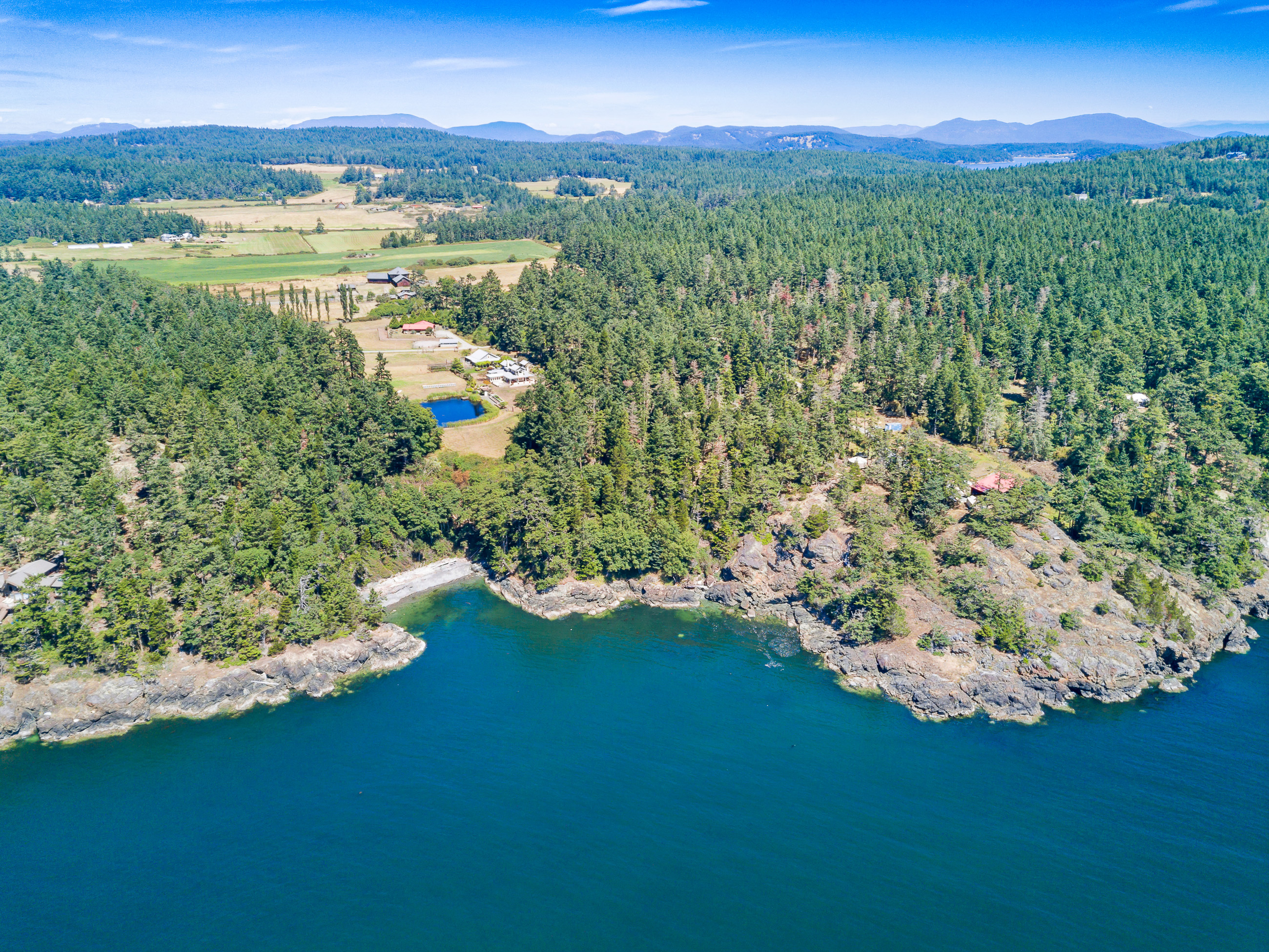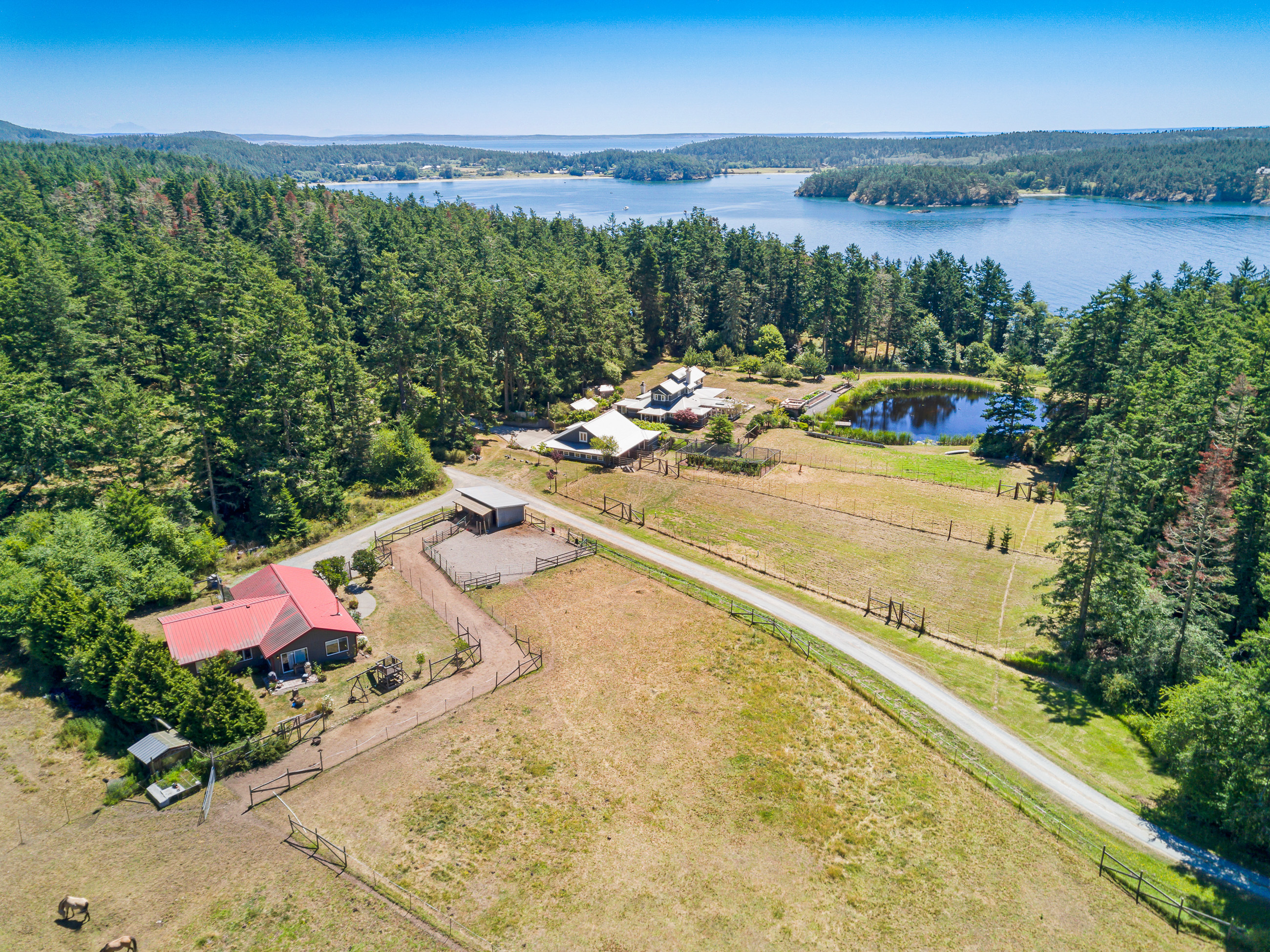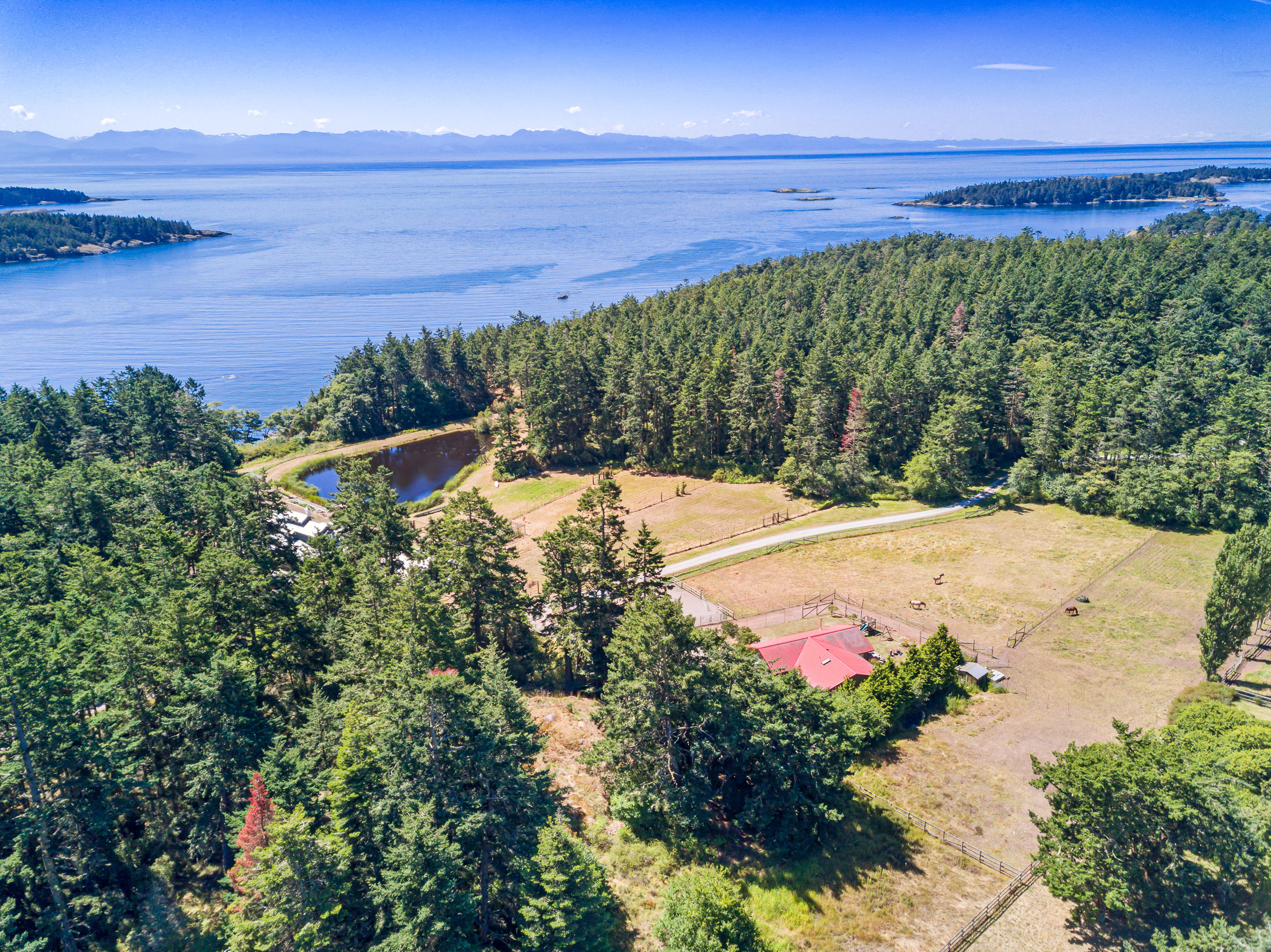 Telecommute in quiet privacy and breathtaking beauty! Artfully crafted and thoughtfully placed waterfront residence with guest house on 36+ acres on coveted Mackaye Harbor. Transcending casual elegance and luxury, boasting seaside inspired style, flowing nicely to ample decking and beyond to 1150 of waterfront with majestic views across the Straits to the Olympics. Colorful landscaping, wonderful fenced gardens, paddocks & stalls, 3-car garage/art studio/bunk room. Stylish. Sublime. Serene.