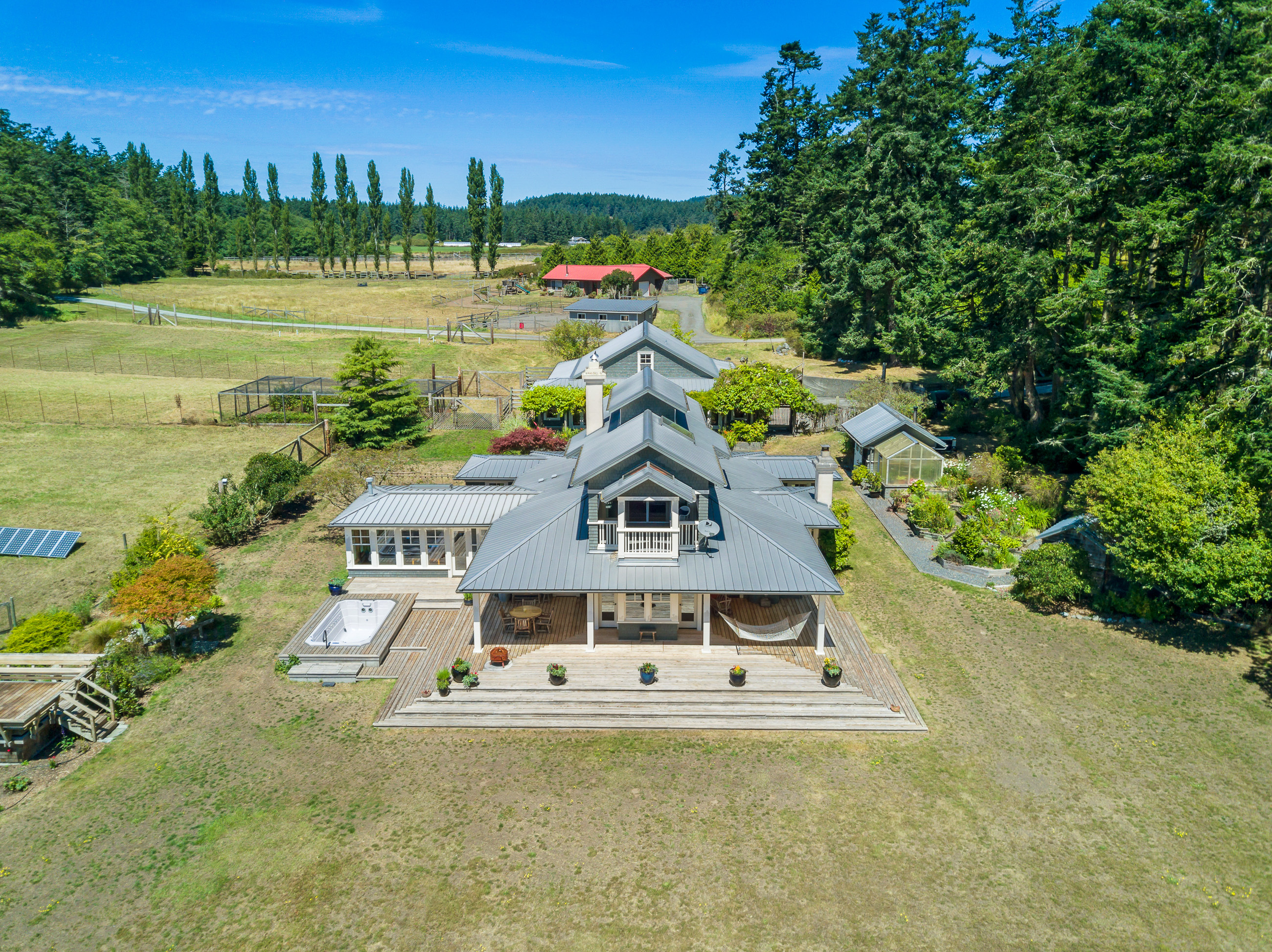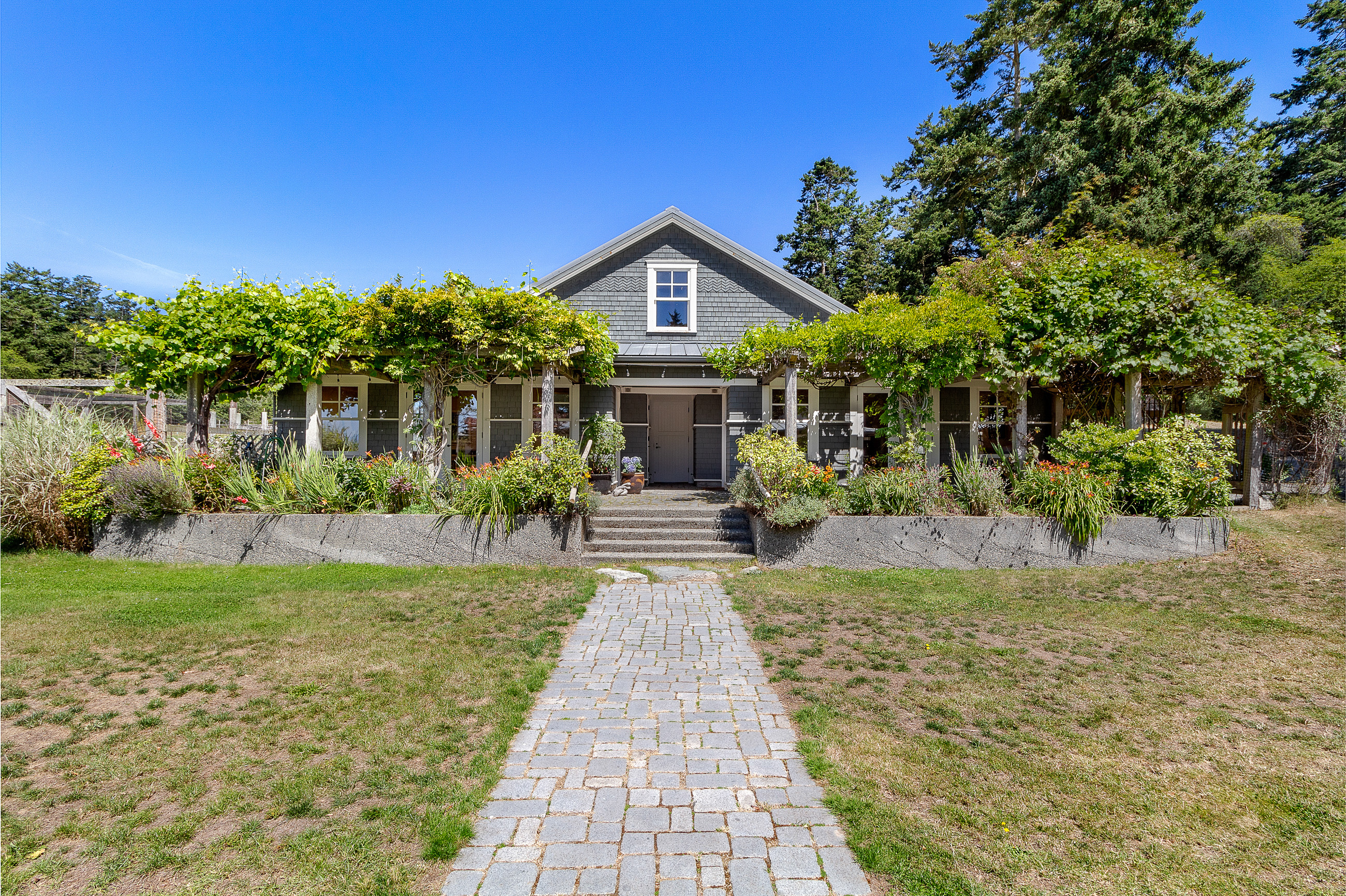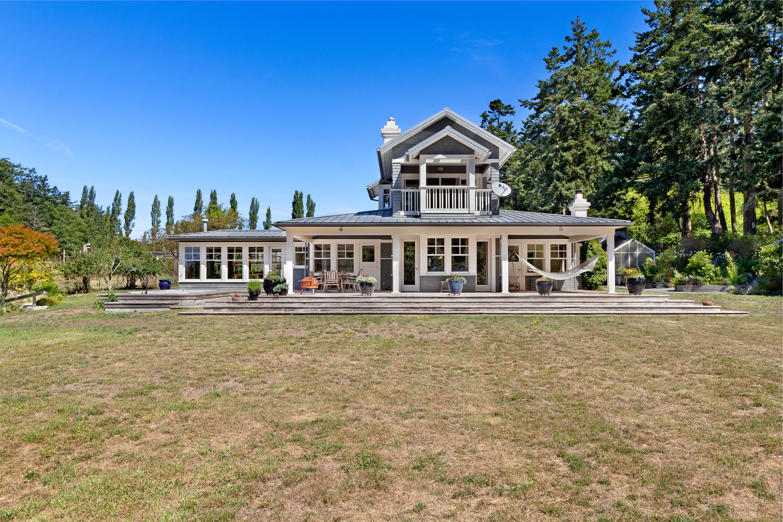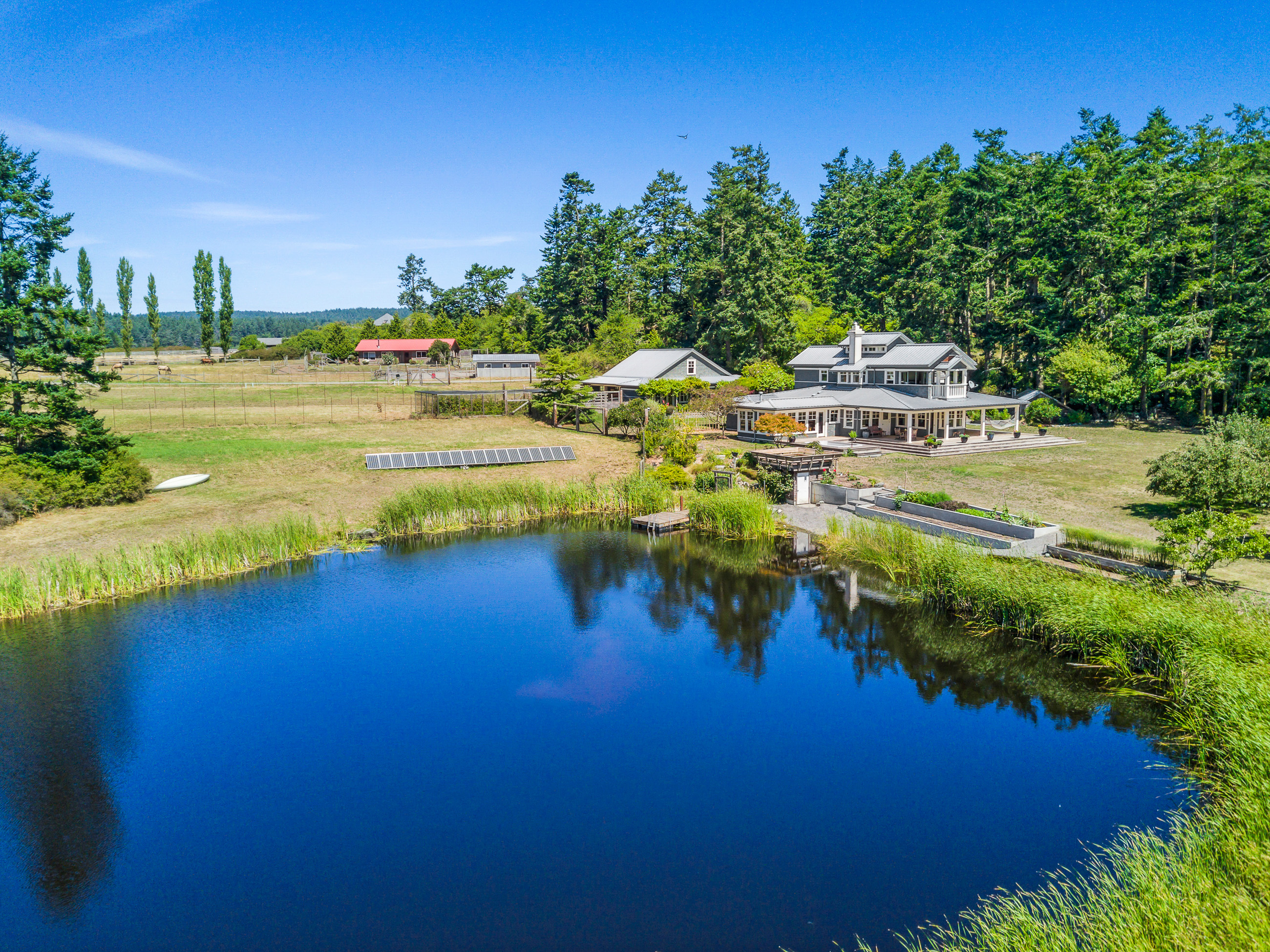 Telecommute in quiet privacy and breathtaking beauty! Artfully crafted and thoughtfully placed waterfront residence with guest house on 36+ acres on coveted Mackaye Harbor. Transcending casual elegance and luxury, boasting seaside inspired style, flowing nicely to ample decking and beyond to 1150 of waterfront with majestic views across the Straits to the Olympics. Colorful landscaping, wonderful fenced gardens, paddocks & stalls, 3-car garage/art studio/bunk room. Stylish. Sublime. Serene.