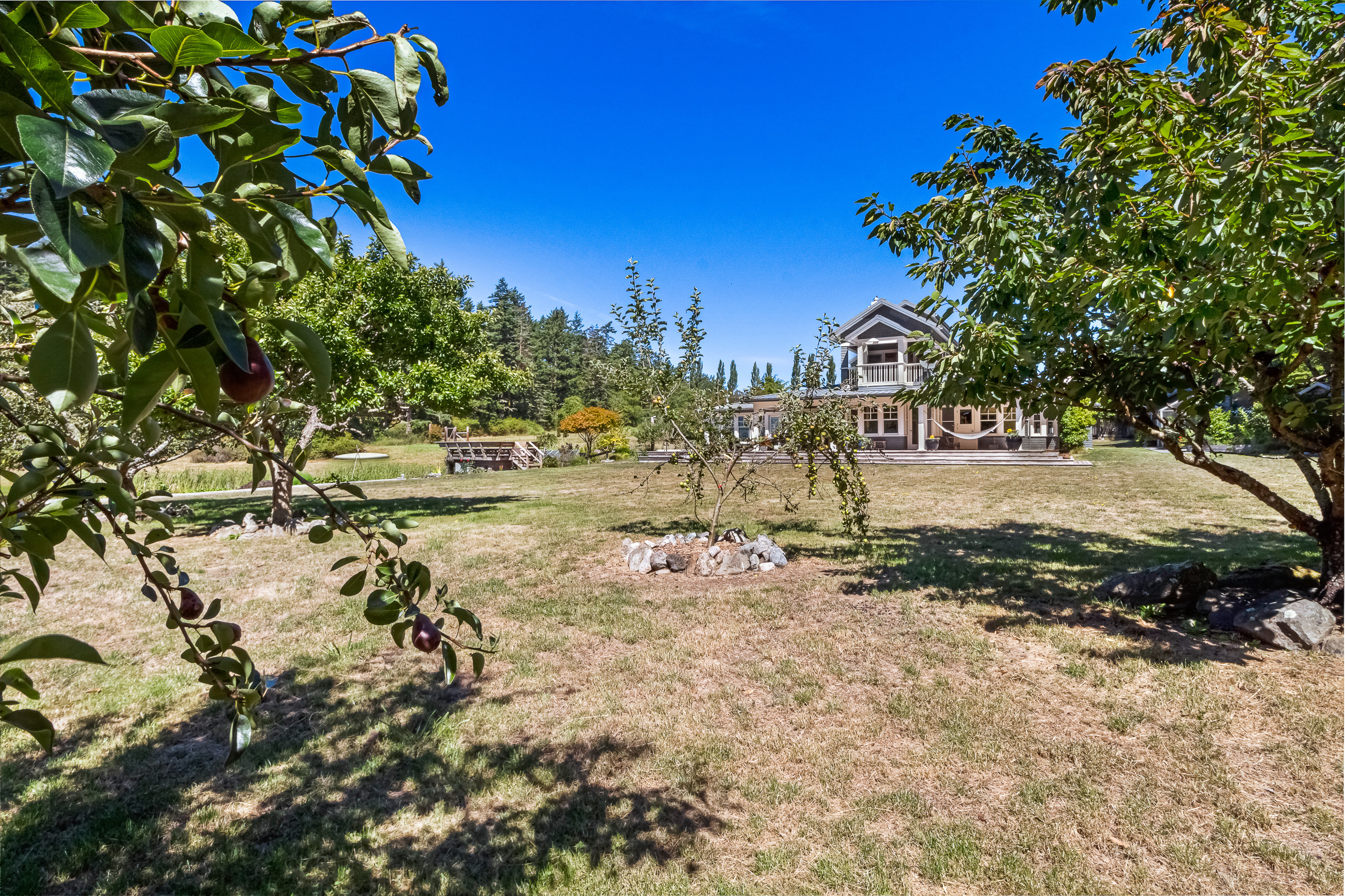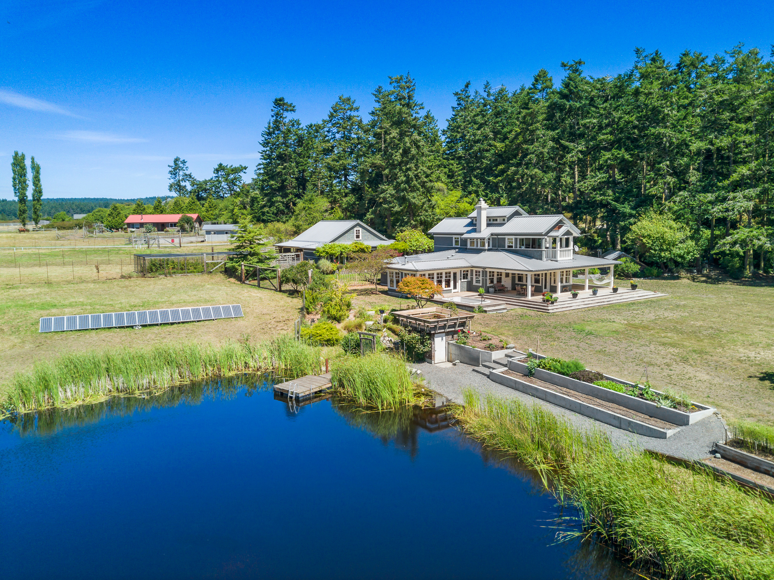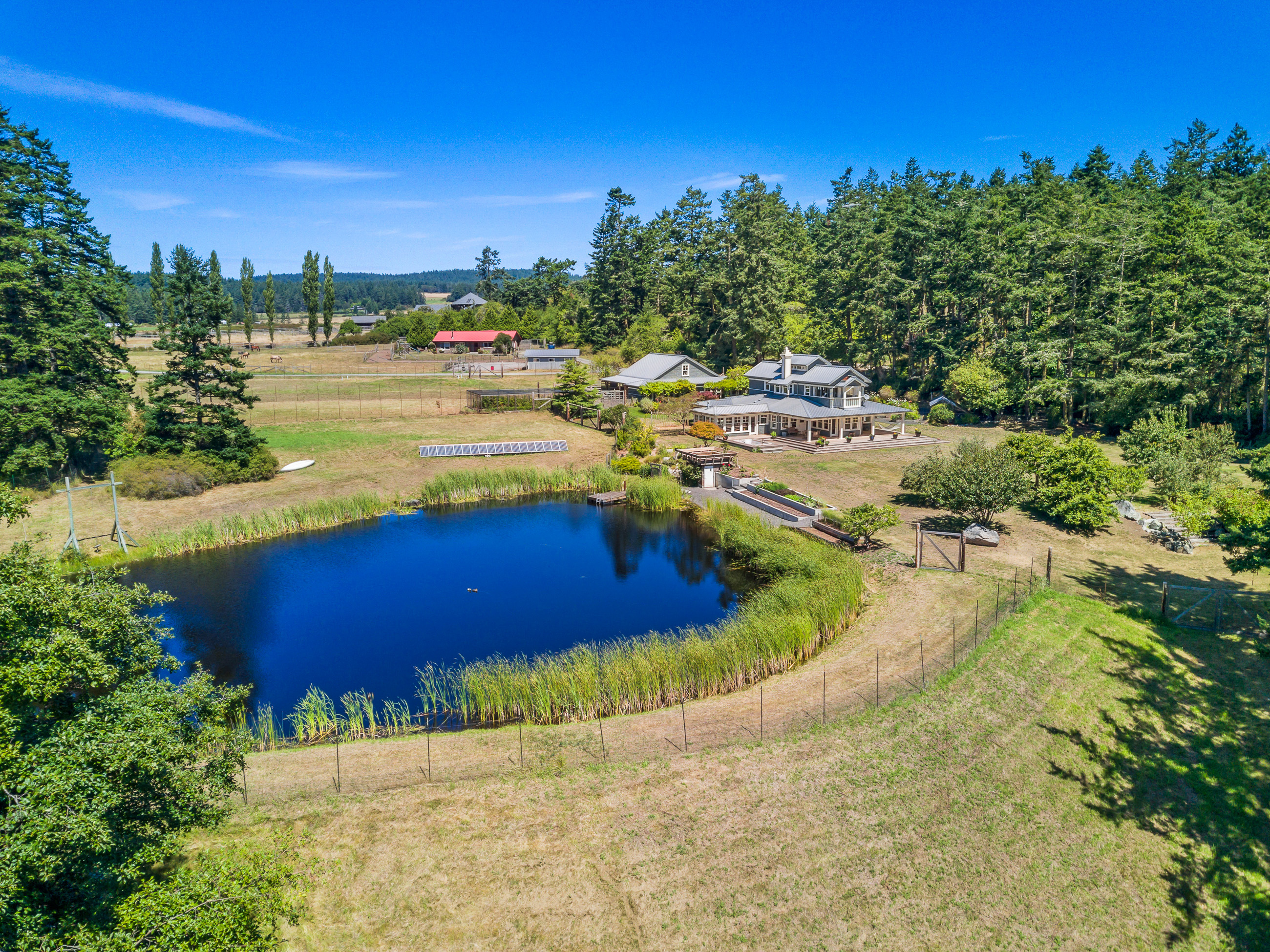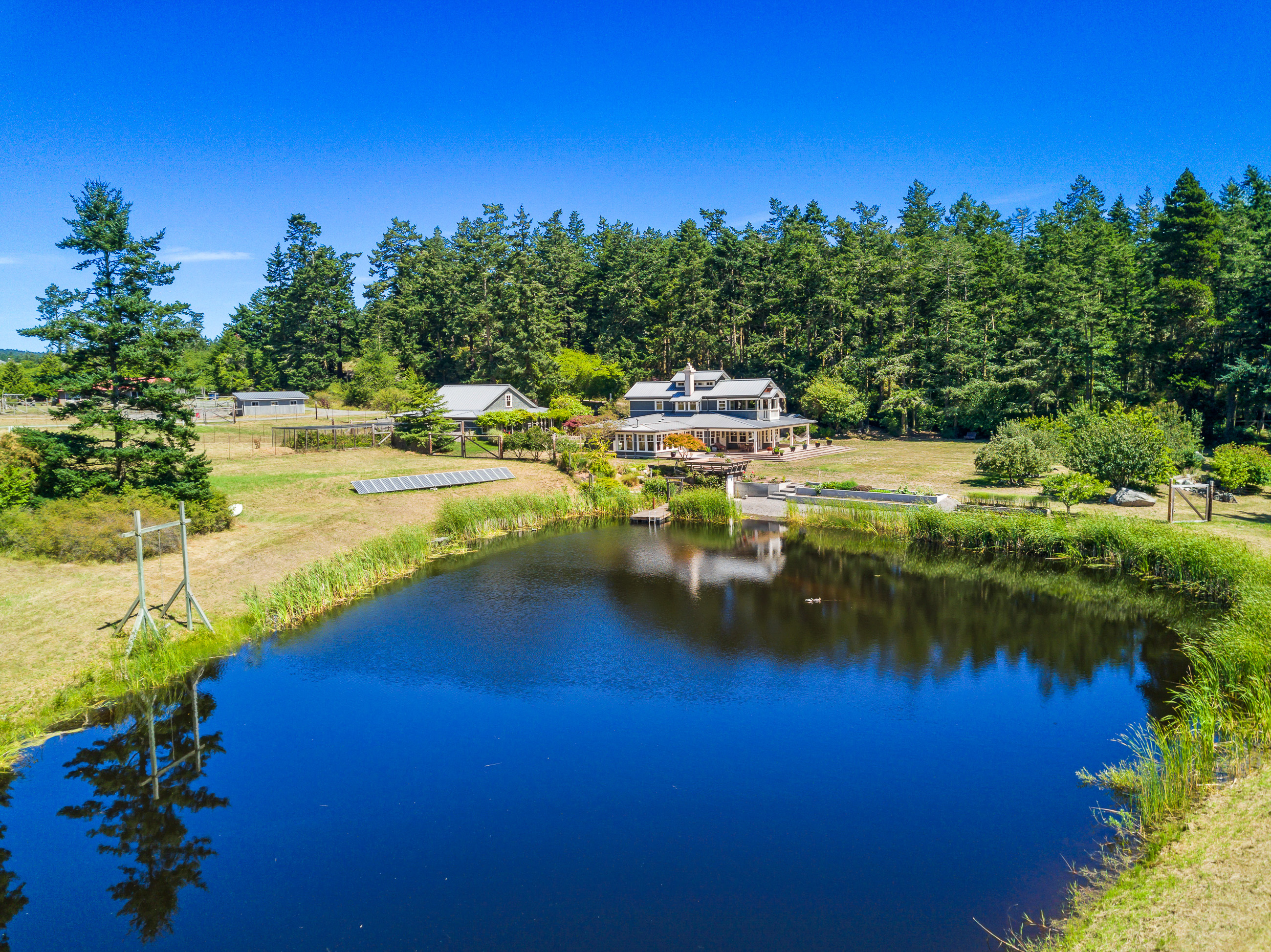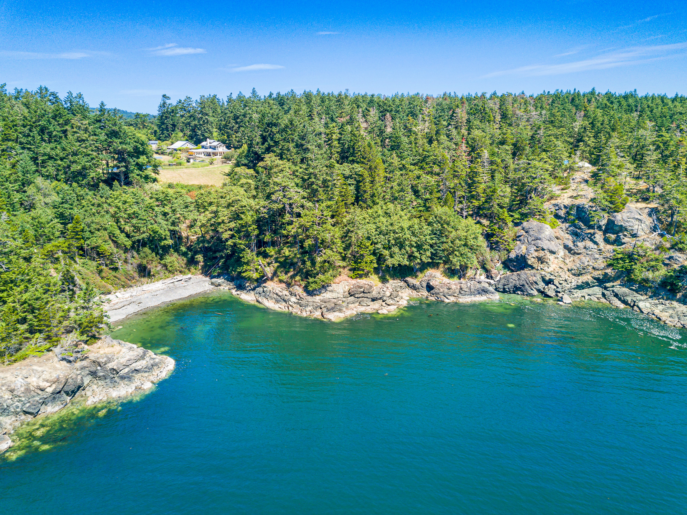 Telecommute in quiet privacy and breathtaking beauty! Artfully crafted and thoughtfully placed waterfront residence with guest house on 36+ acres on coveted Mackaye Harbor. Transcending casual elegance and luxury, boasting seaside inspired style, flowing nicely to ample decking and beyond to 1150 of waterfront with majestic views across the Straits to the Olympics. Colorful landscaping, wonderful fenced gardens, paddocks & stalls, 3-car garage/art studio/bunk room. Stylish. Sublime. Serene.