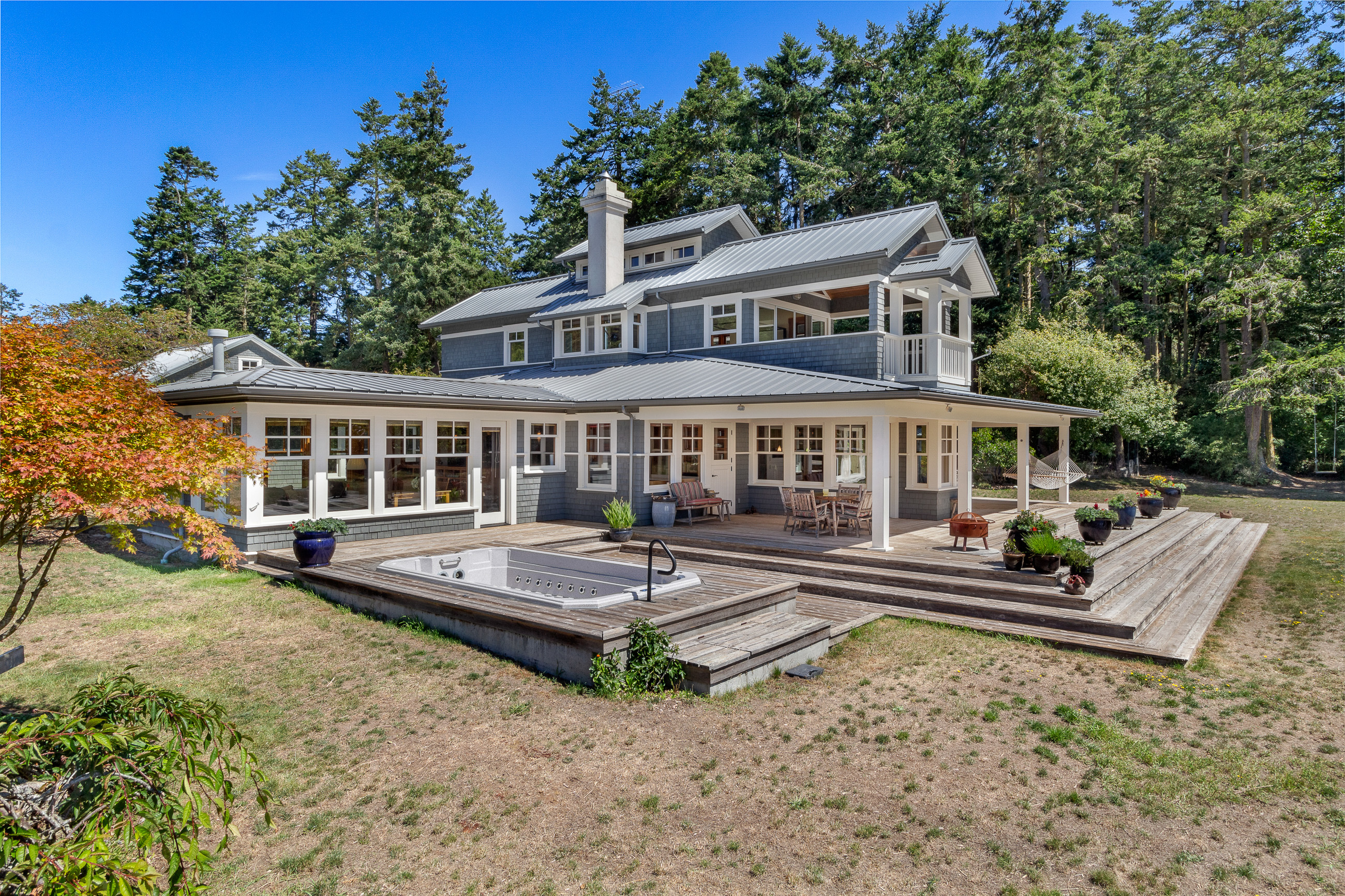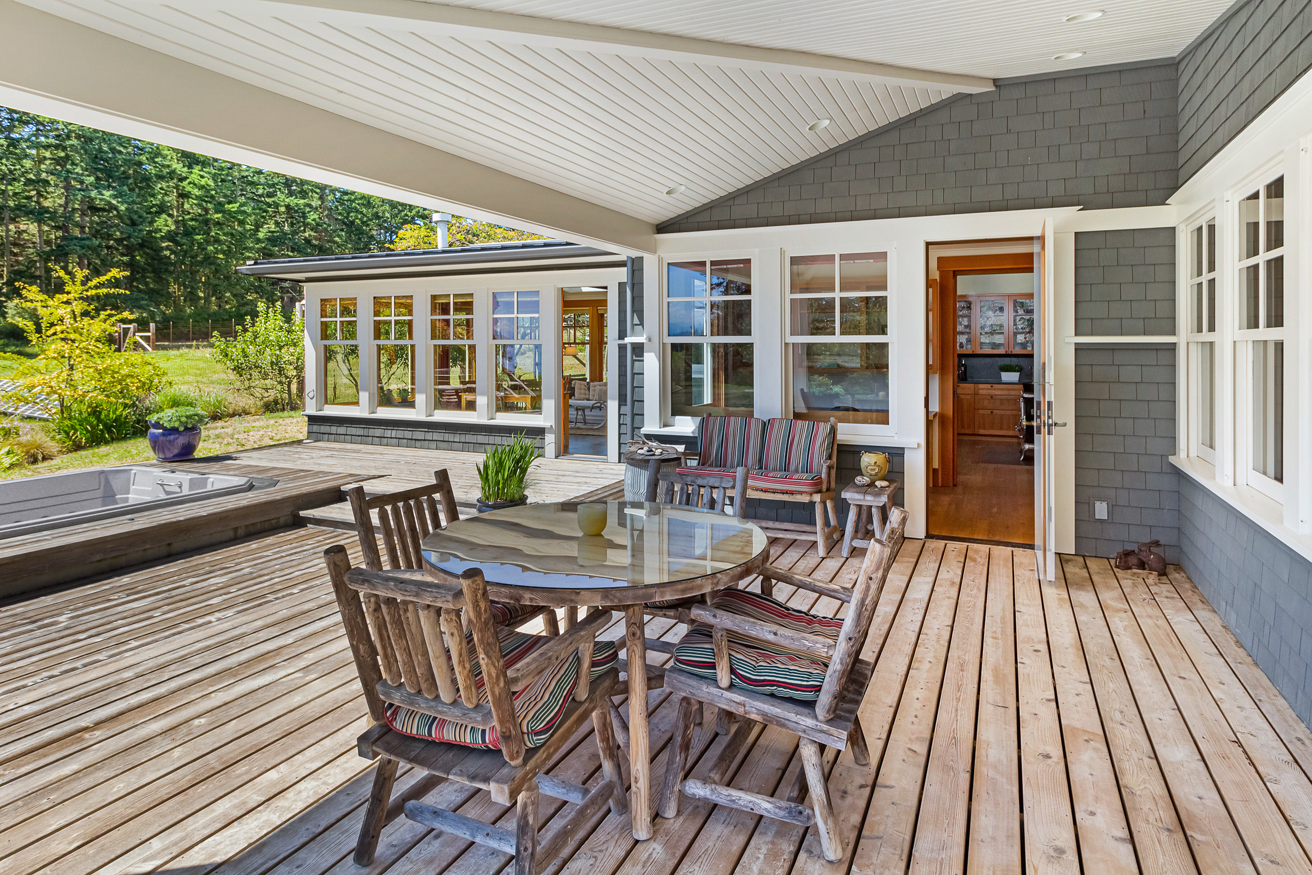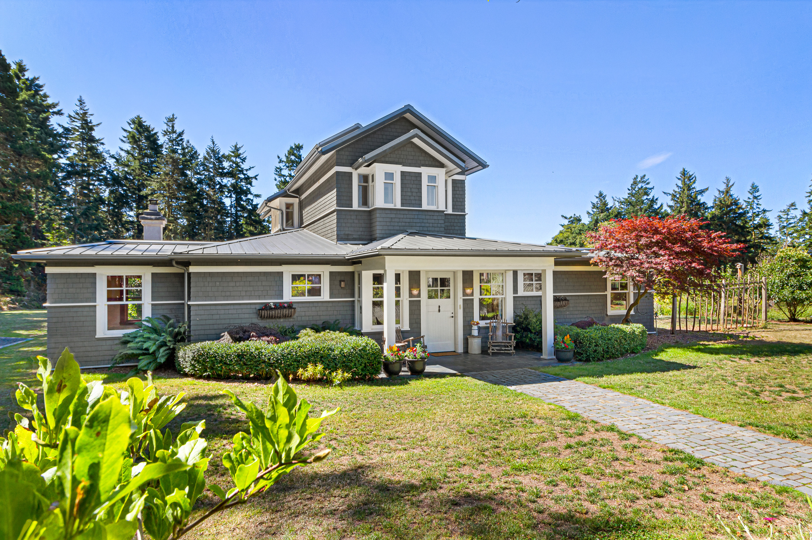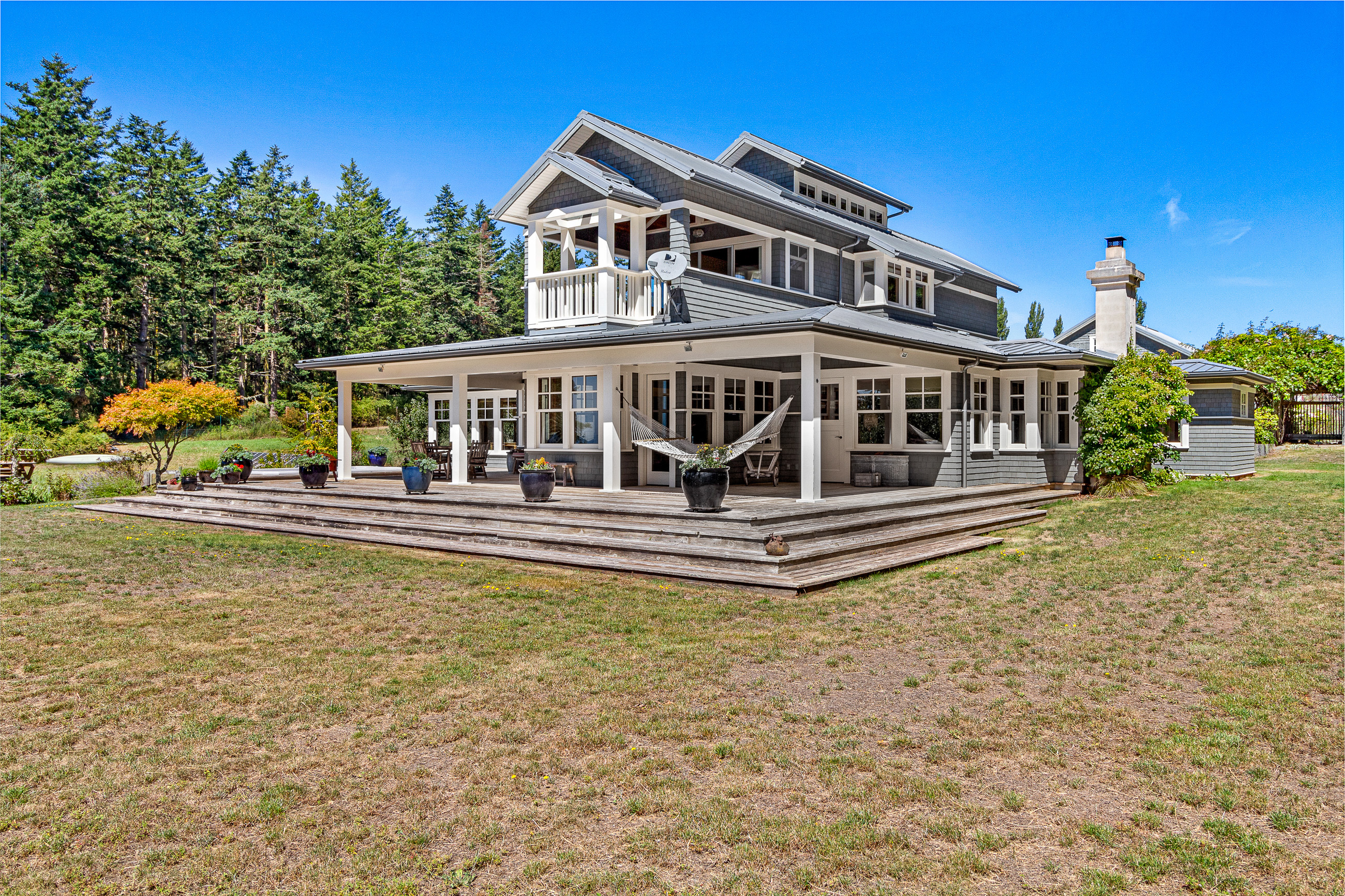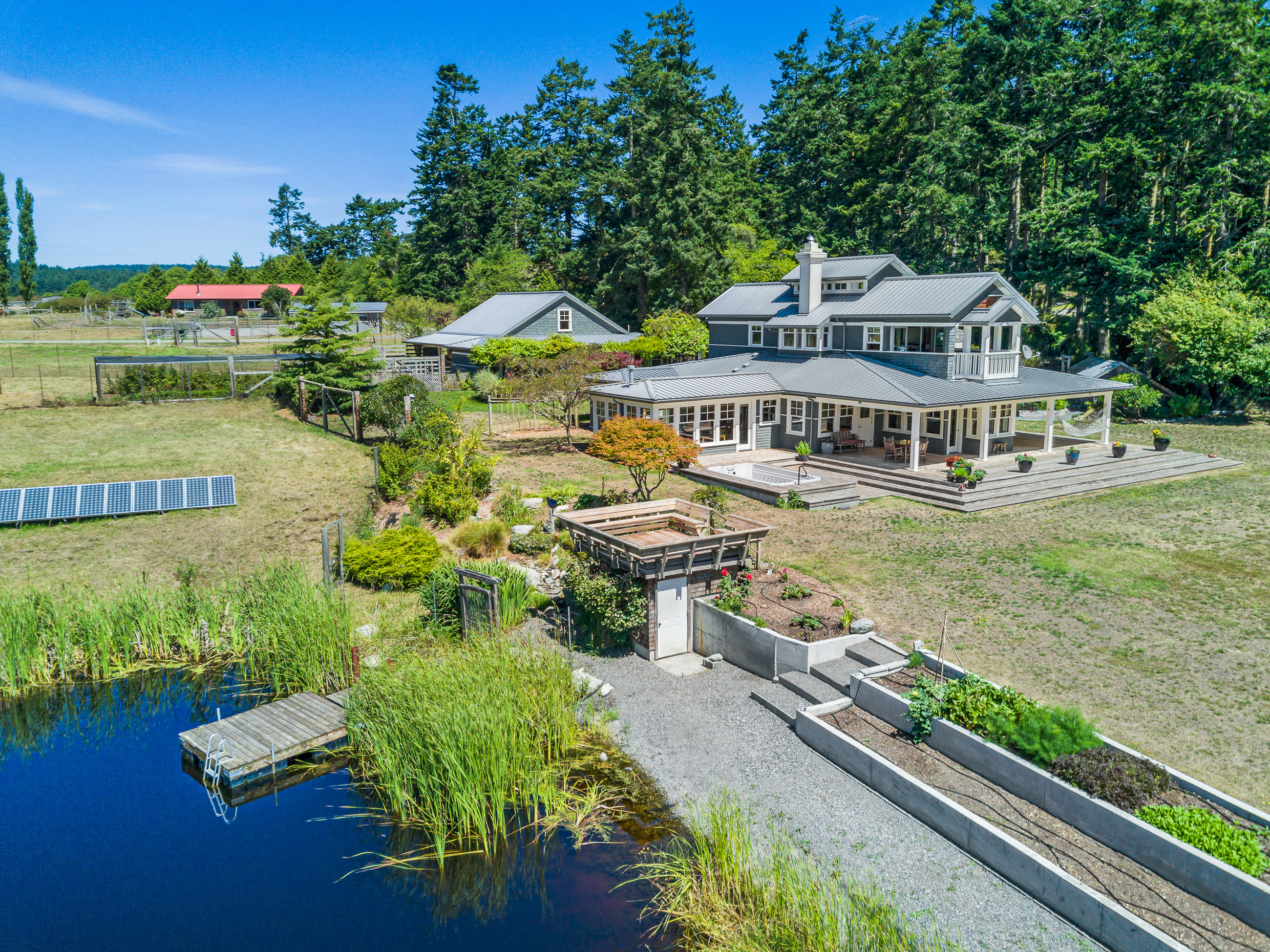 Telecommute in quiet privacy and breathtaking beauty! Artfully crafted and thoughtfully placed waterfront residence with guest house on 36+ acres on coveted Mackaye Harbor. Transcending casual elegance and luxury, boasting seaside inspired style, flowing nicely to ample decking and beyond to 1150 of waterfront with majestic views across the Straits to the Olympics. Colorful landscaping, wonderful fenced gardens, paddocks & stalls, 3-car garage/art studio/bunk room. Stylish. Sublime. Serene.