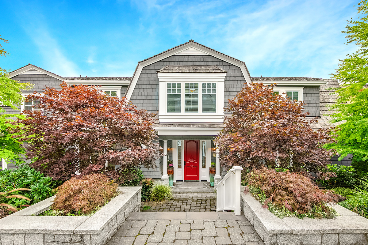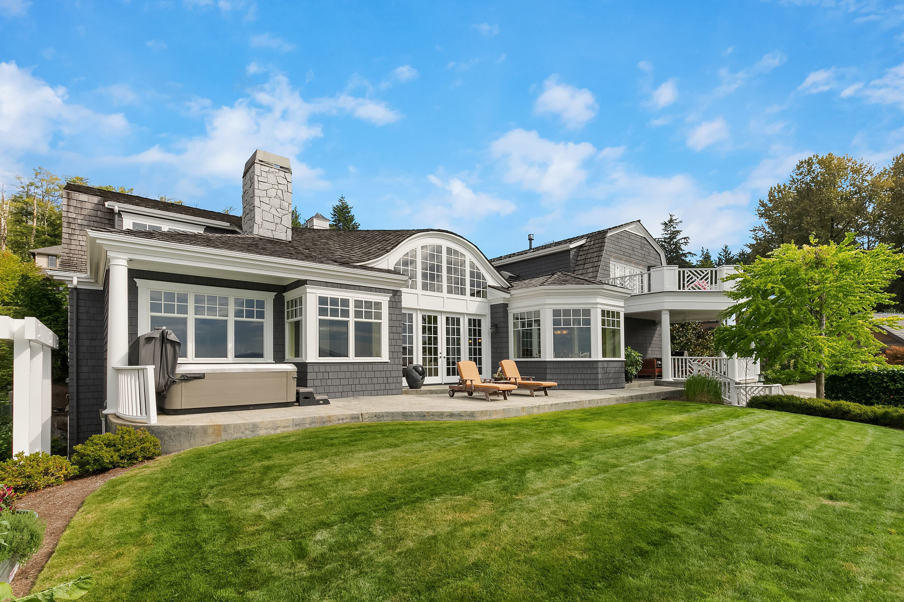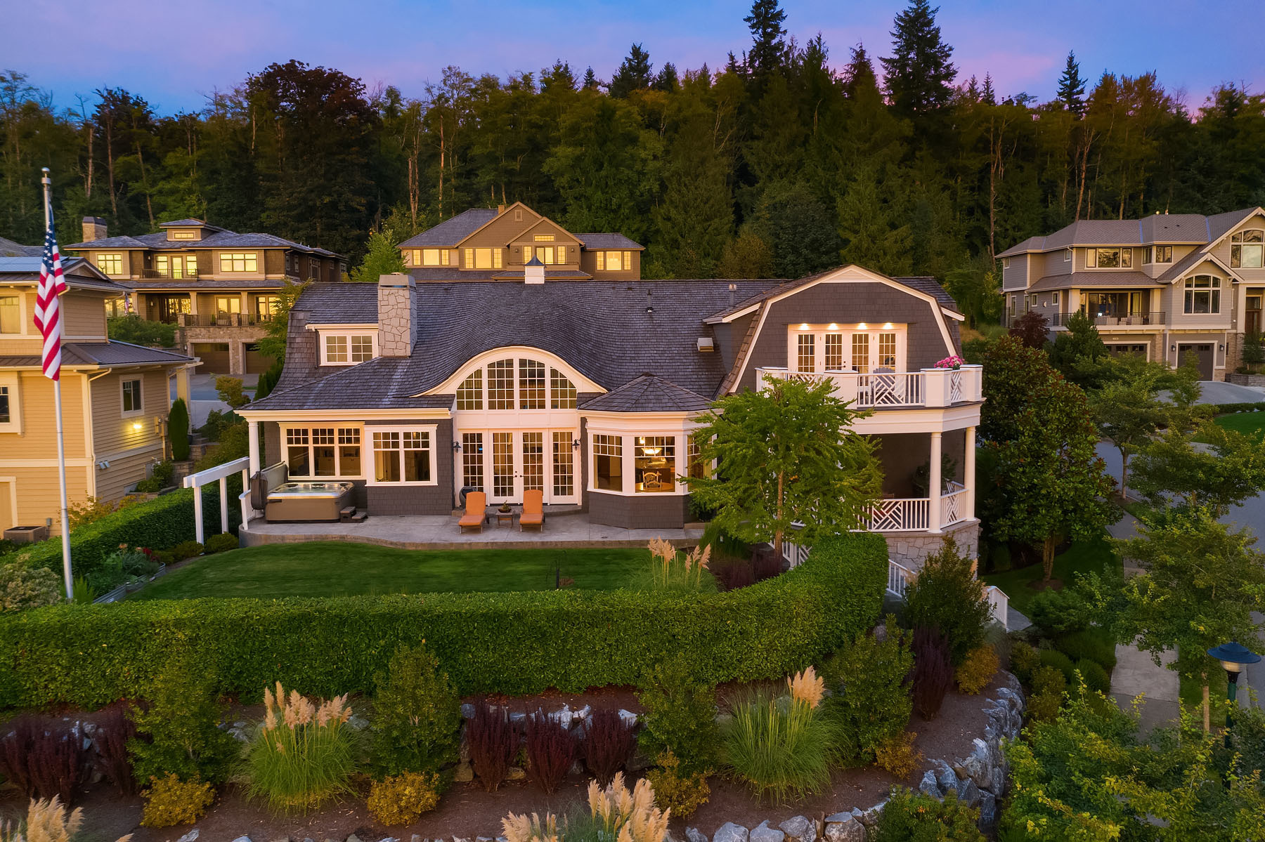 Designed by architect Curtis Gelotte to maximize lake, mtn & skyline views, this classic Dutch Colonial pairs East coast tradition w/ a warm NW sensibility. A broad eyebrow window & walls of glass invite natural light & westerly views into the 2-story great room w/ dramatic stone fp. Retreat to the sumptuous master ste w/ private deck & fp or step out on to the patio for golden hour & jacuzzi soaks. Wine cellar, theater, library & more. Perched on a corner lot just steps from neighborhood parks.