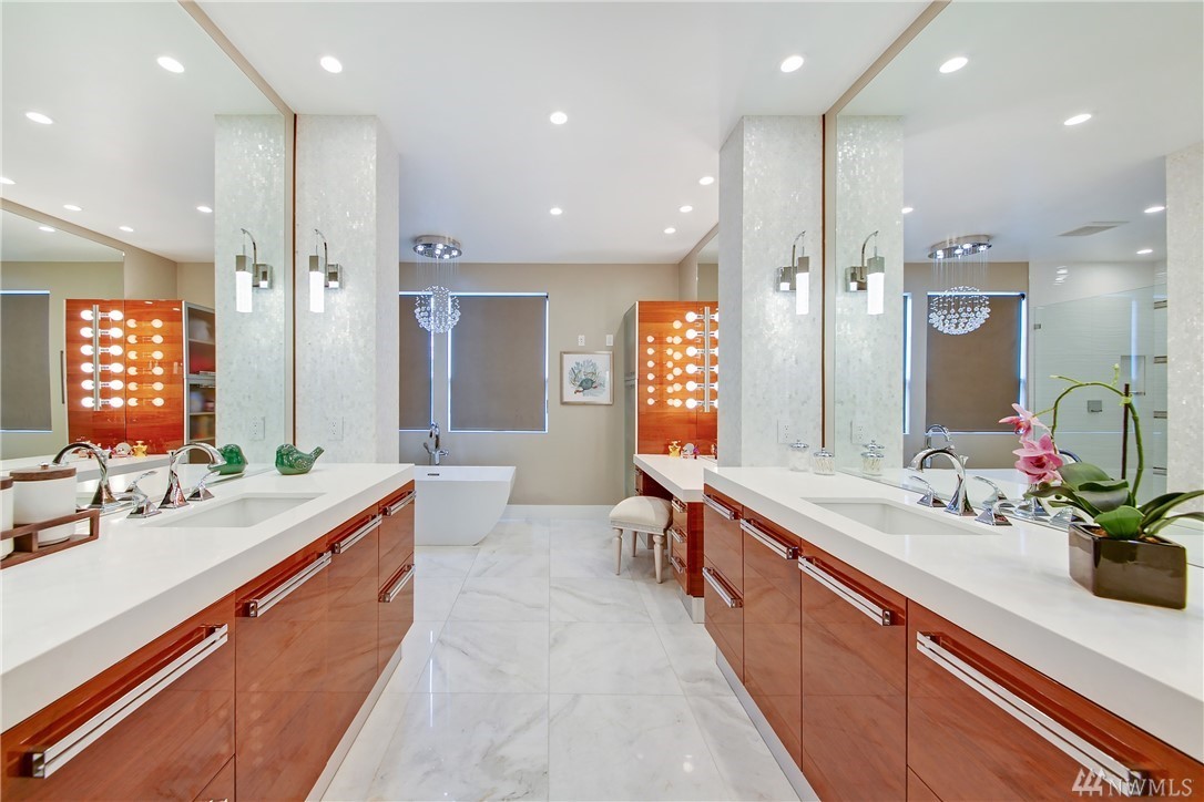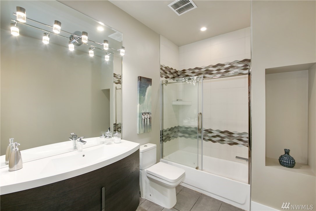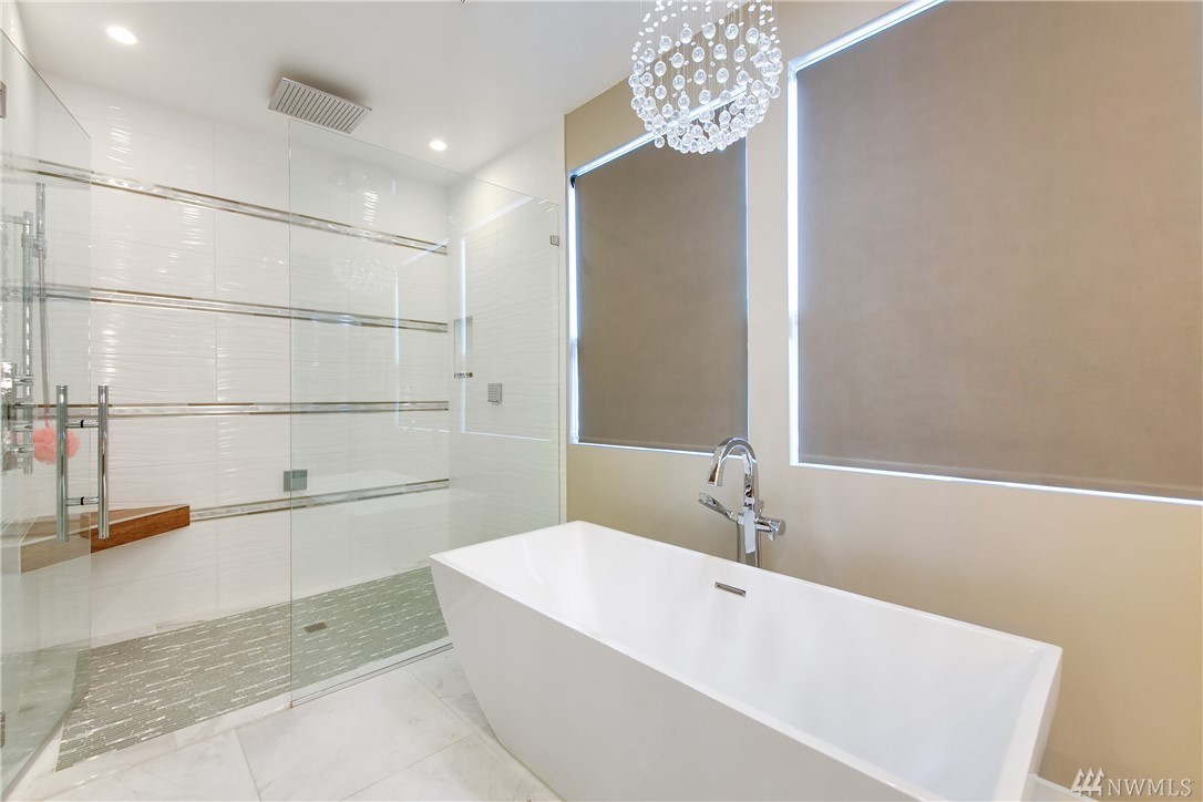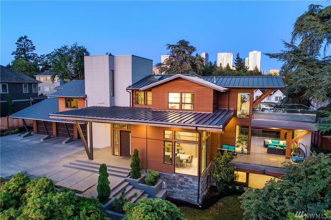 Beautifully built in 2017, this ultimate urban NW Contemporary retreat is a masterful feat of style, design & comfort feat. extensive wood & glass w/ glamorous flourishes incl. a dazzling 18 crystal chandelier. Cutting edge kitchen w/ massive slab granite island opens to covered outdoor living w/ fp. Smart home integrated systems for light, shades & sound. En-suite bedrooms, home theater, wine cellar & rooftop terrace. Nestled in peaceful Lochleven within 4 blocks to DT, Main St, parks & Lk WA.