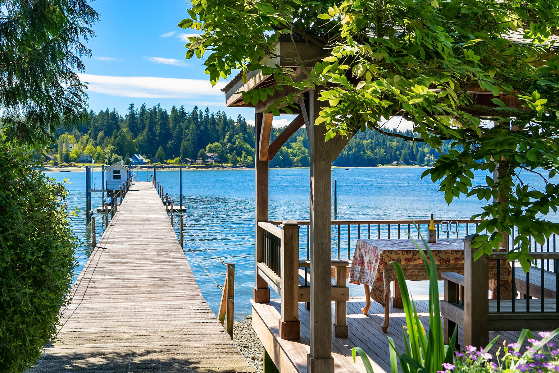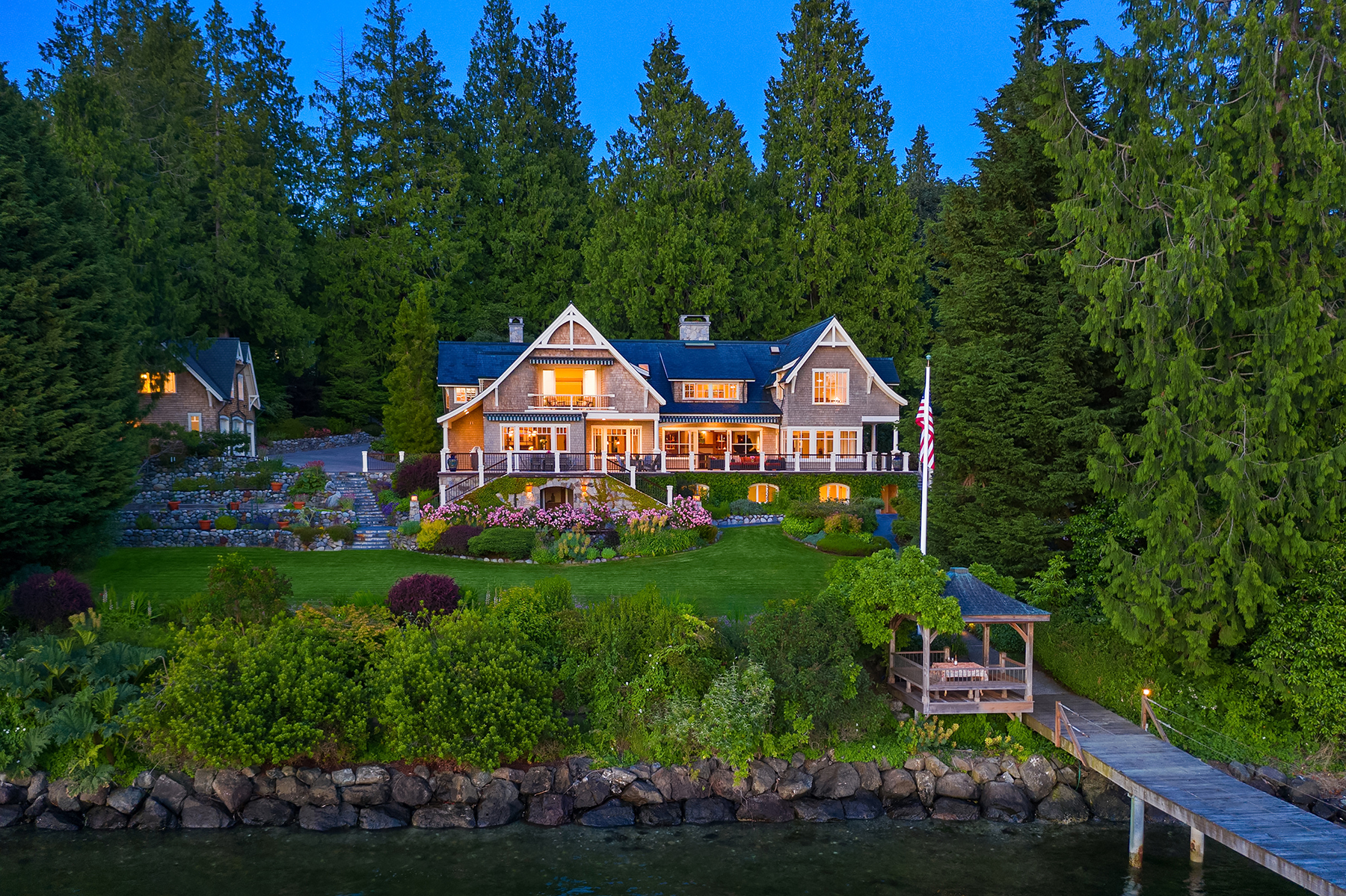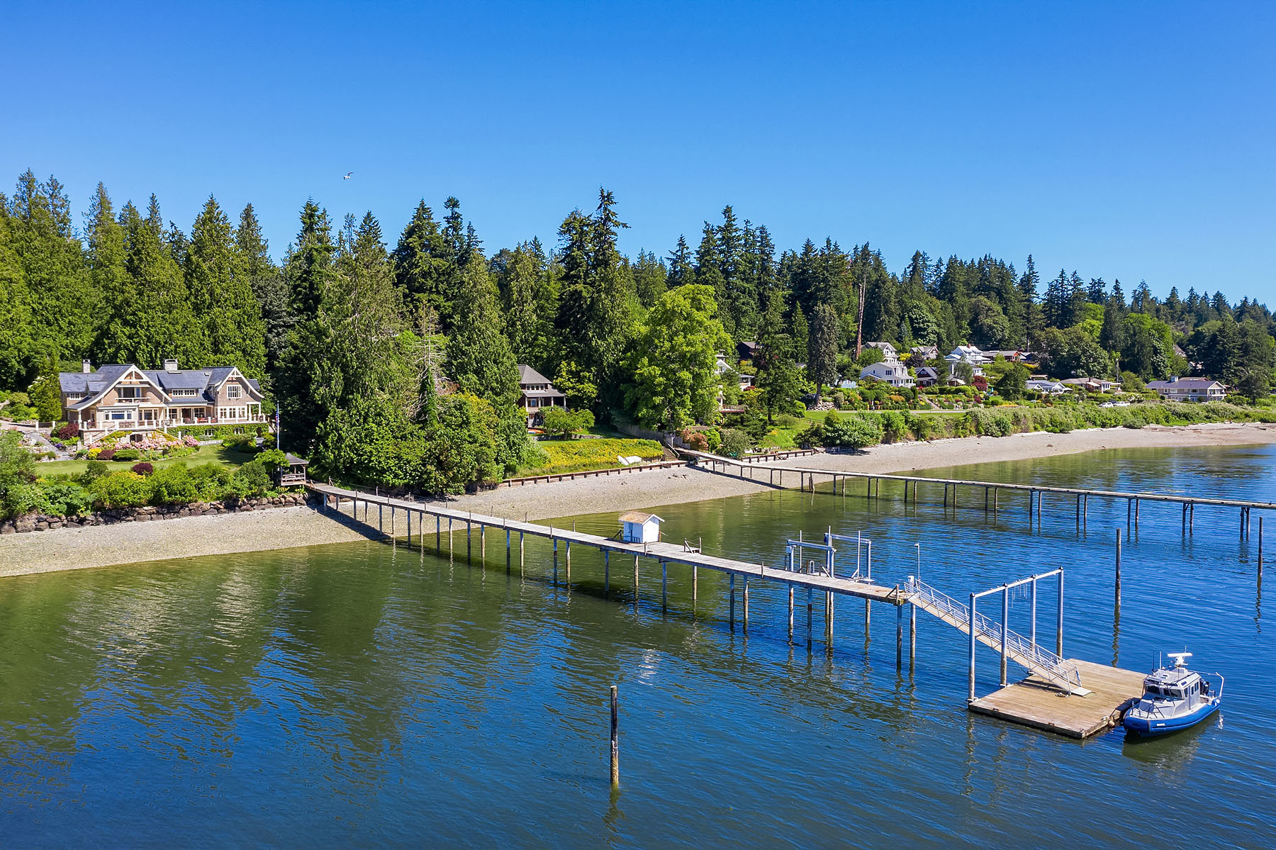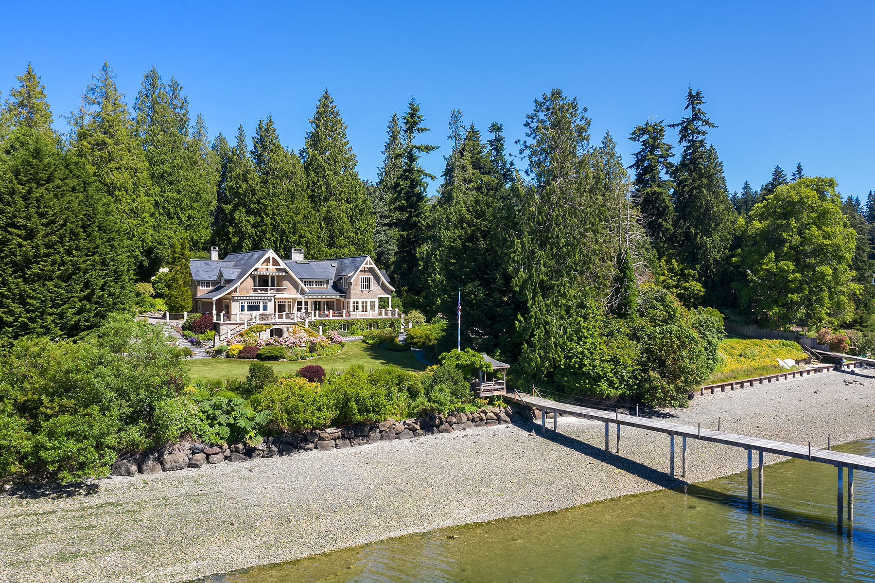 Our homes are our sanctuaries these days and this luxurious Port Madison waterfront estate offers all you could possibly wish for. Privacy, acreage, and a magnificent custom-built home. A home theater, wine cellar, personal gym, sauna, pool, hot tub, and a deepwater dock for your boat and a quick 20-minute ride to Seattle! Generous living spaces with French doors leading to decks for entertaining and all day sunshine! Plus, a guest house above a 3-car garage with extra parking on the grounds.