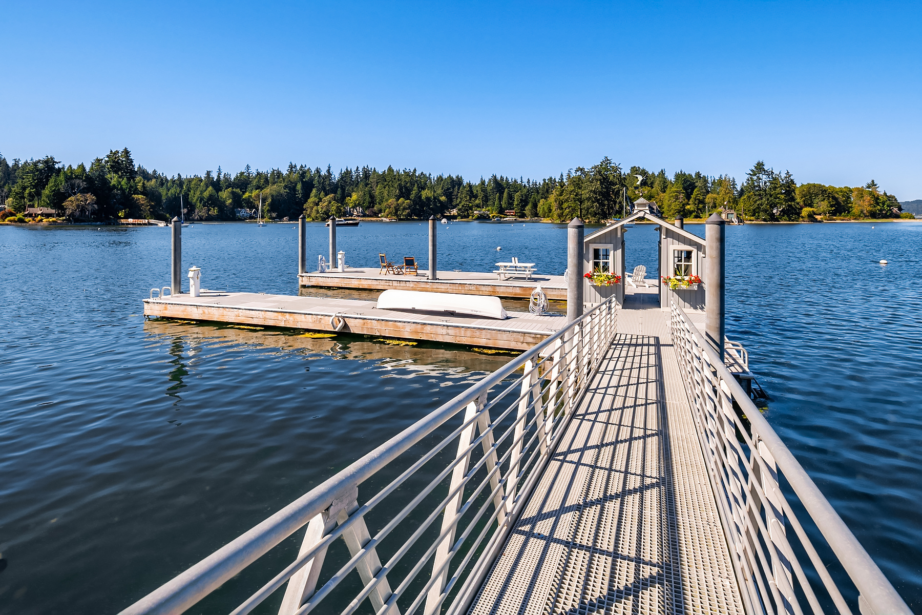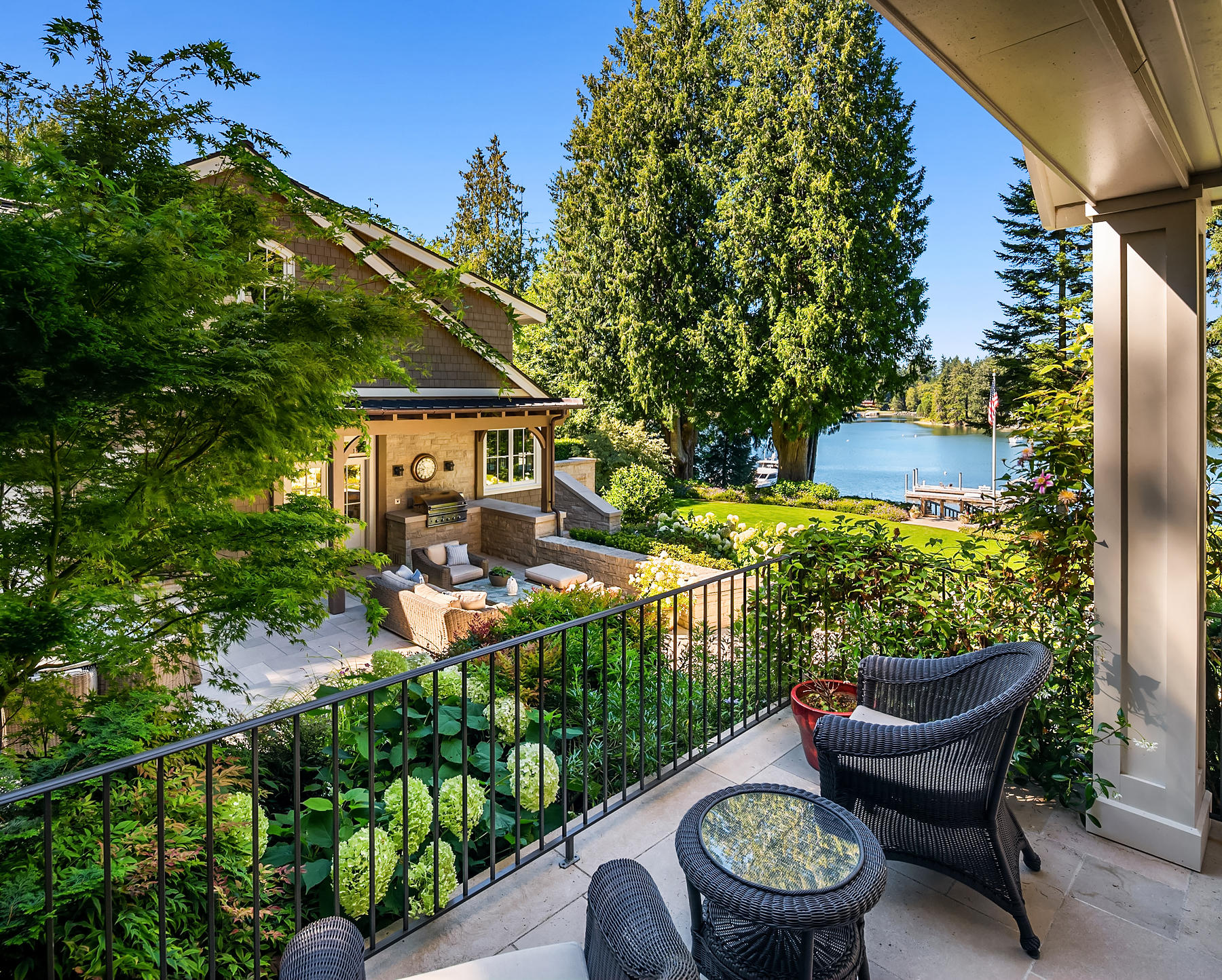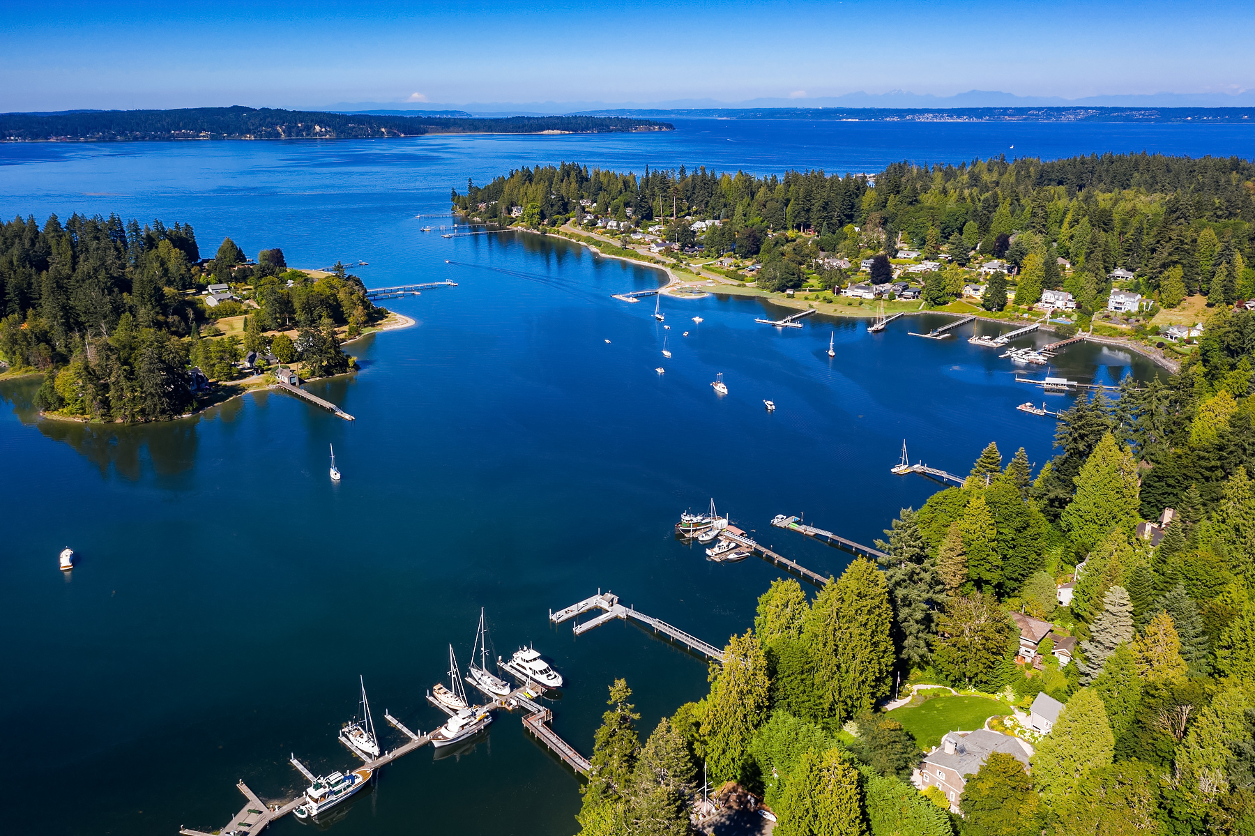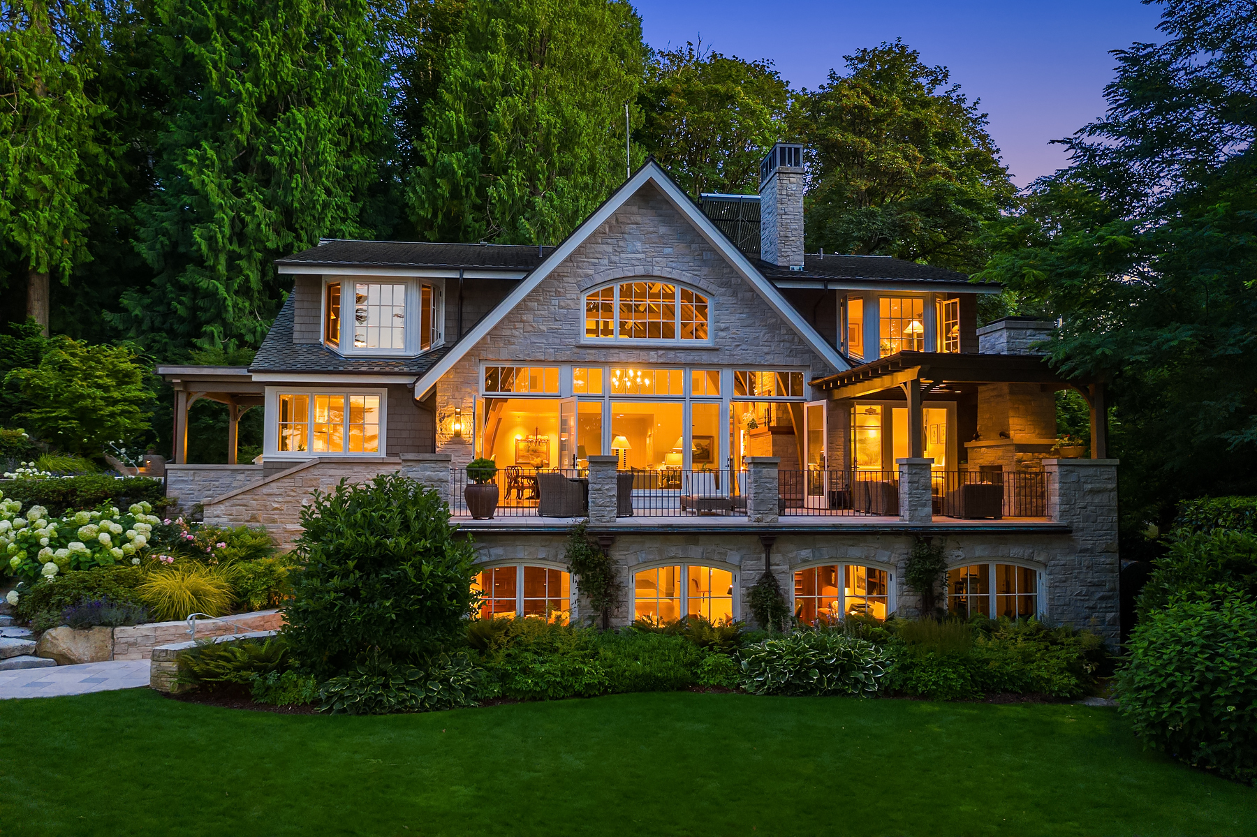This magnificent custom home is beautifully nestled on the shores of Port Madison. Meticulously designed by the sellers and architect Robert Maloney, Fairbank Construction completed the home in 2013. Lush landscaping with stately rock wall and stone walkways lead to the deepwater dock that includes two buoys. Two private offices, gym, fly fishing room, and wine cellar. A private guest house with French doors out to the gardens with peaceful island views completes this breathtaking island estate.