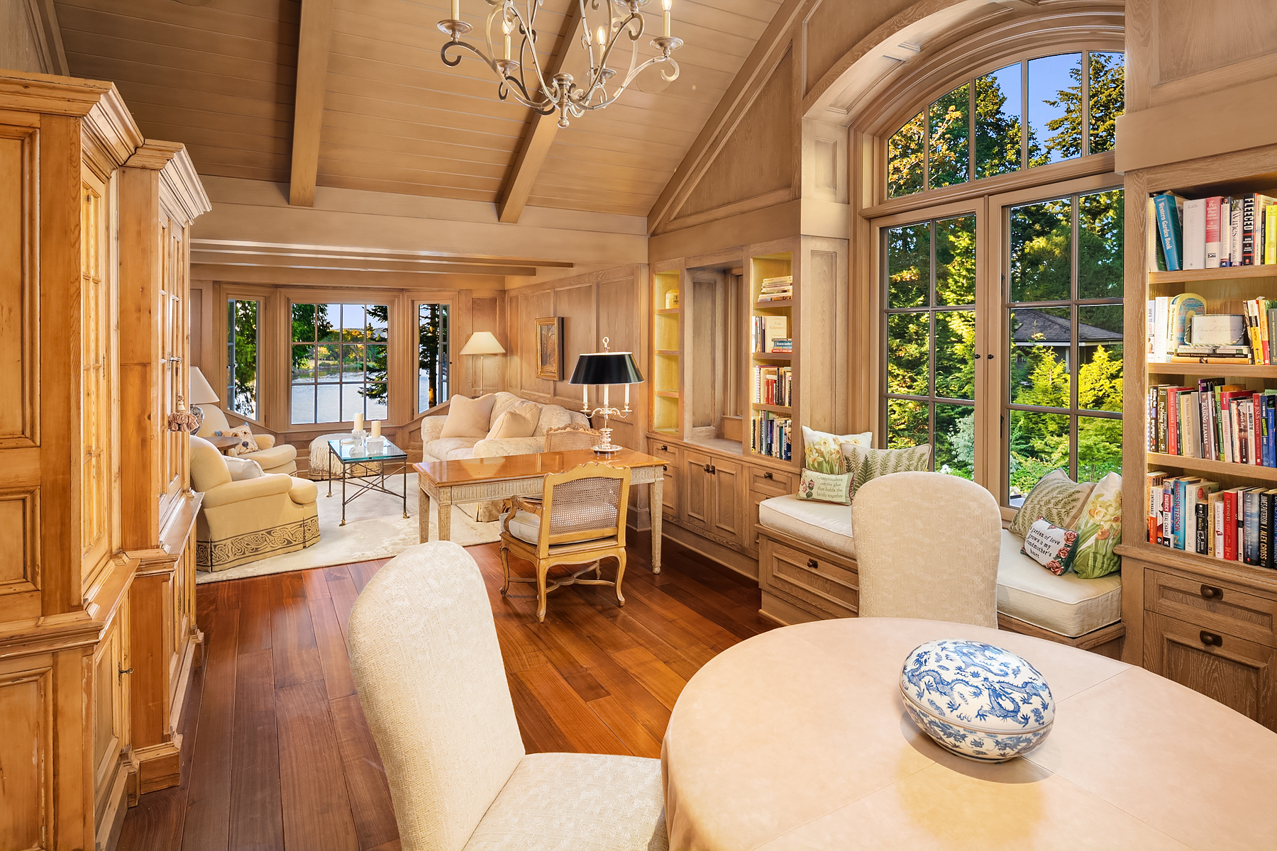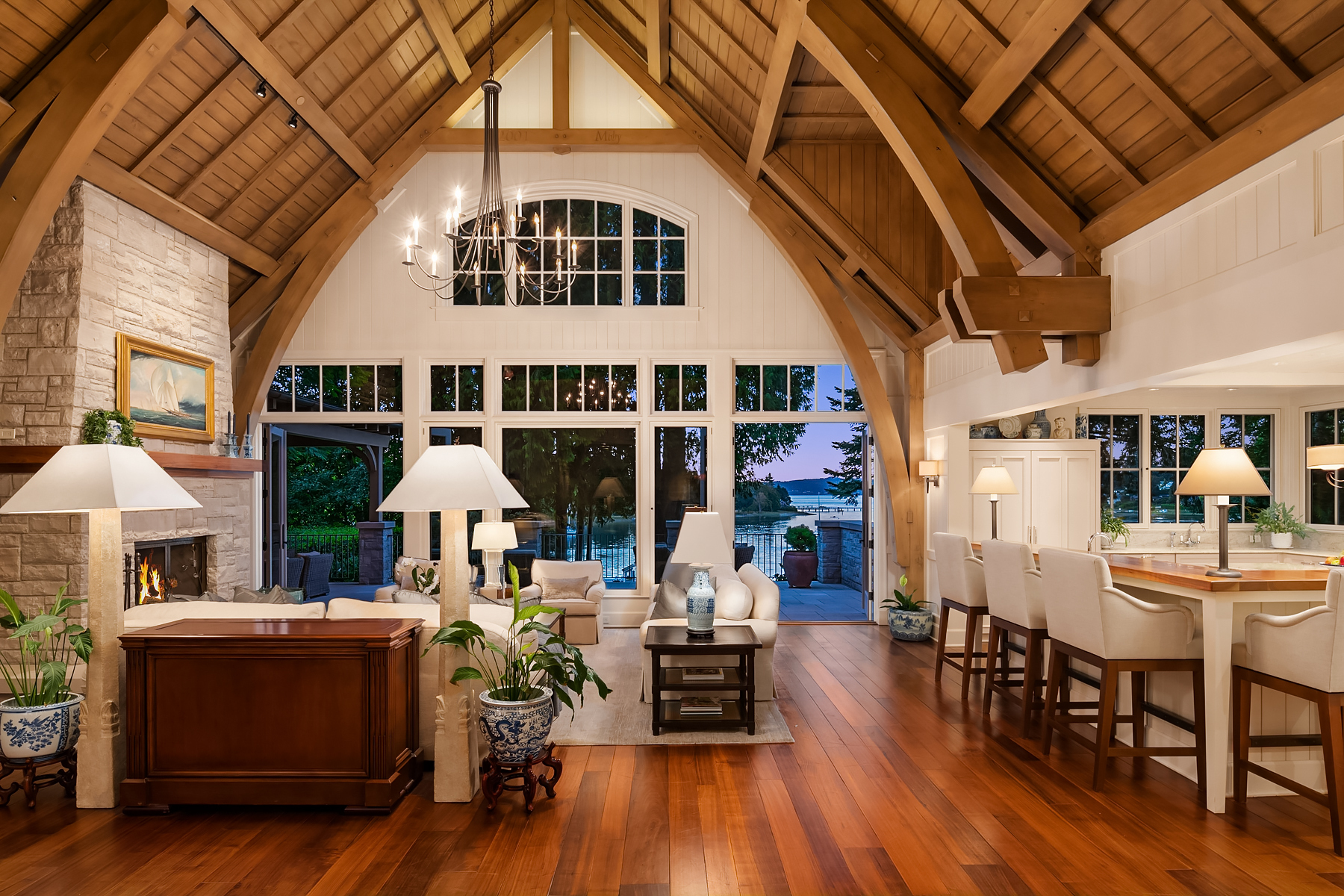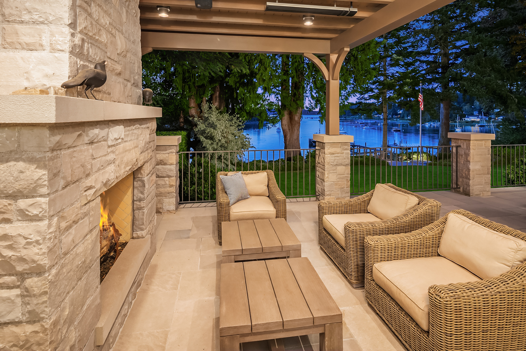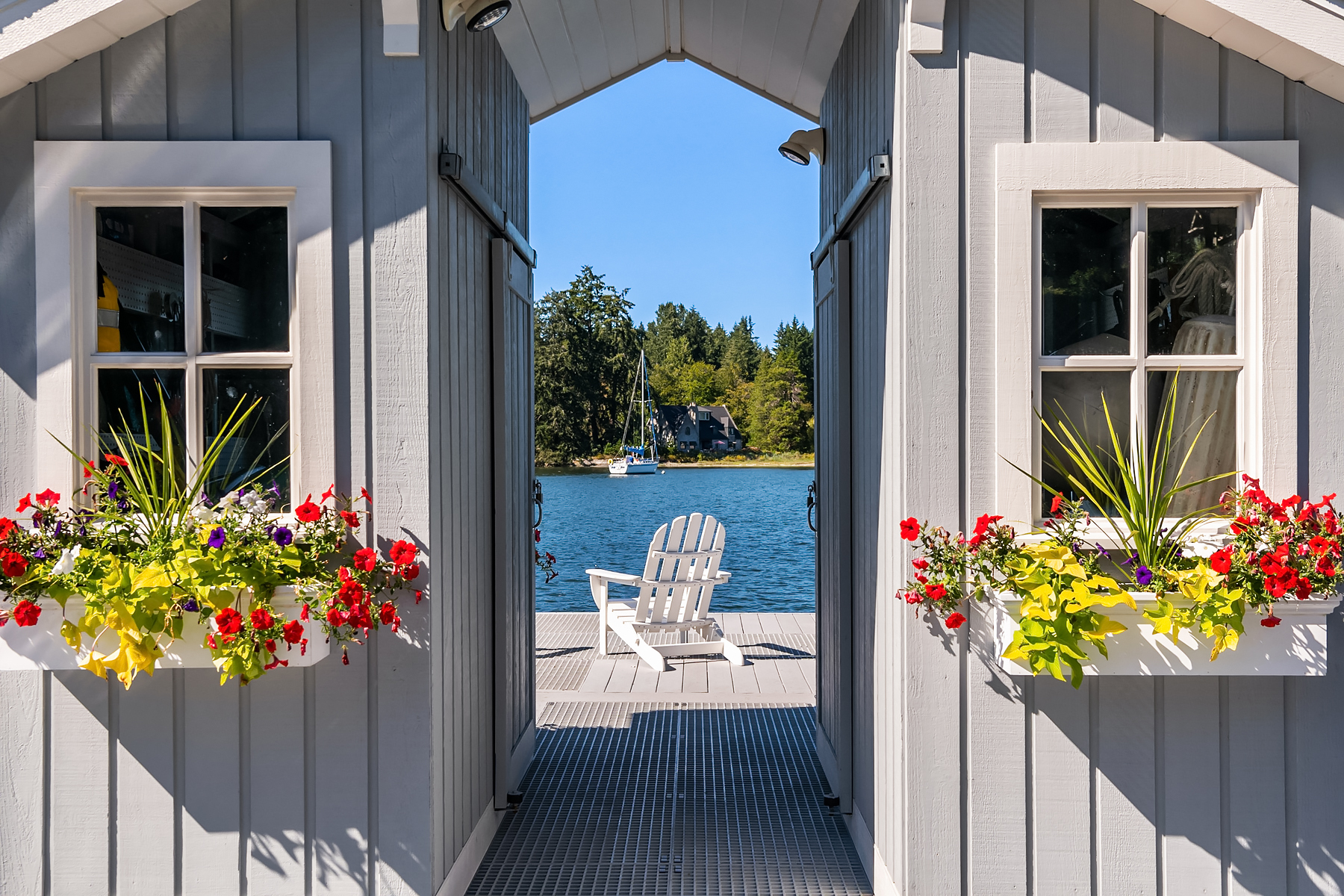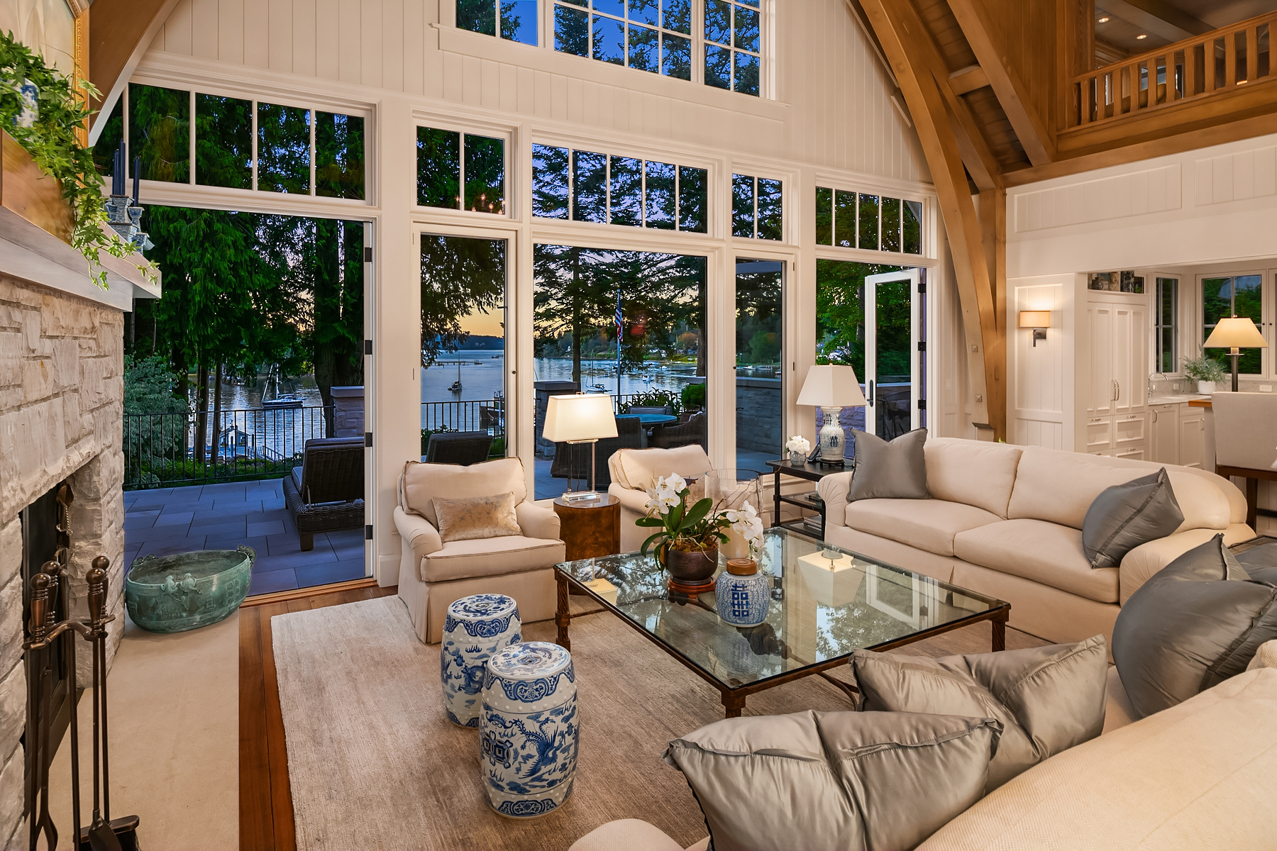 This magnificent custom home is beautifully nestled on the shores of Port Madison. Meticulously designed by the sellers and architect Robert Maloney, Fairbank Construction completed the home in 2013. Lush landscaping with stately rock wall and stone walkways lead to the deepwater dock that includes two buoys. Two private offices, gym, fly fishing room, and wine cellar. A private guest house with French doors out to the gardens with peaceful island views completes this breathtaking island estate.
