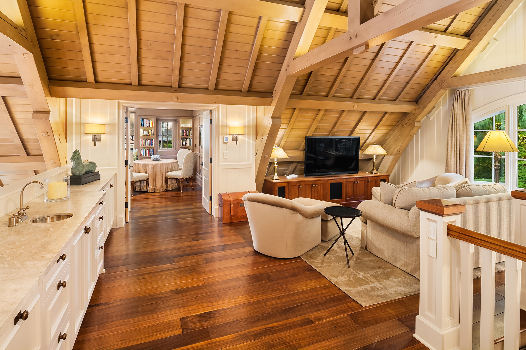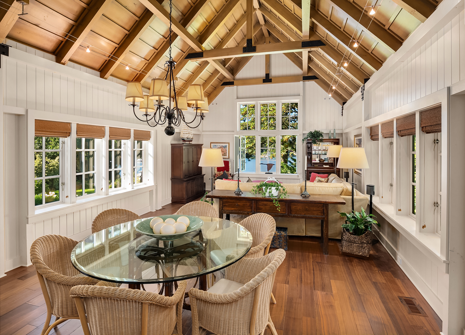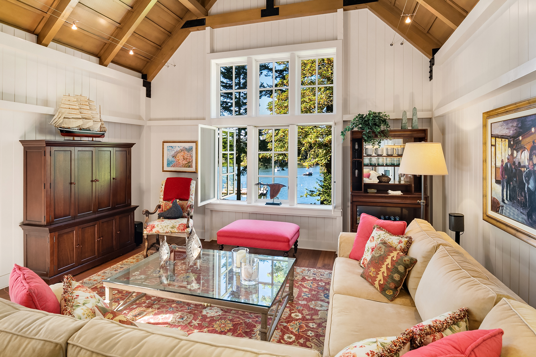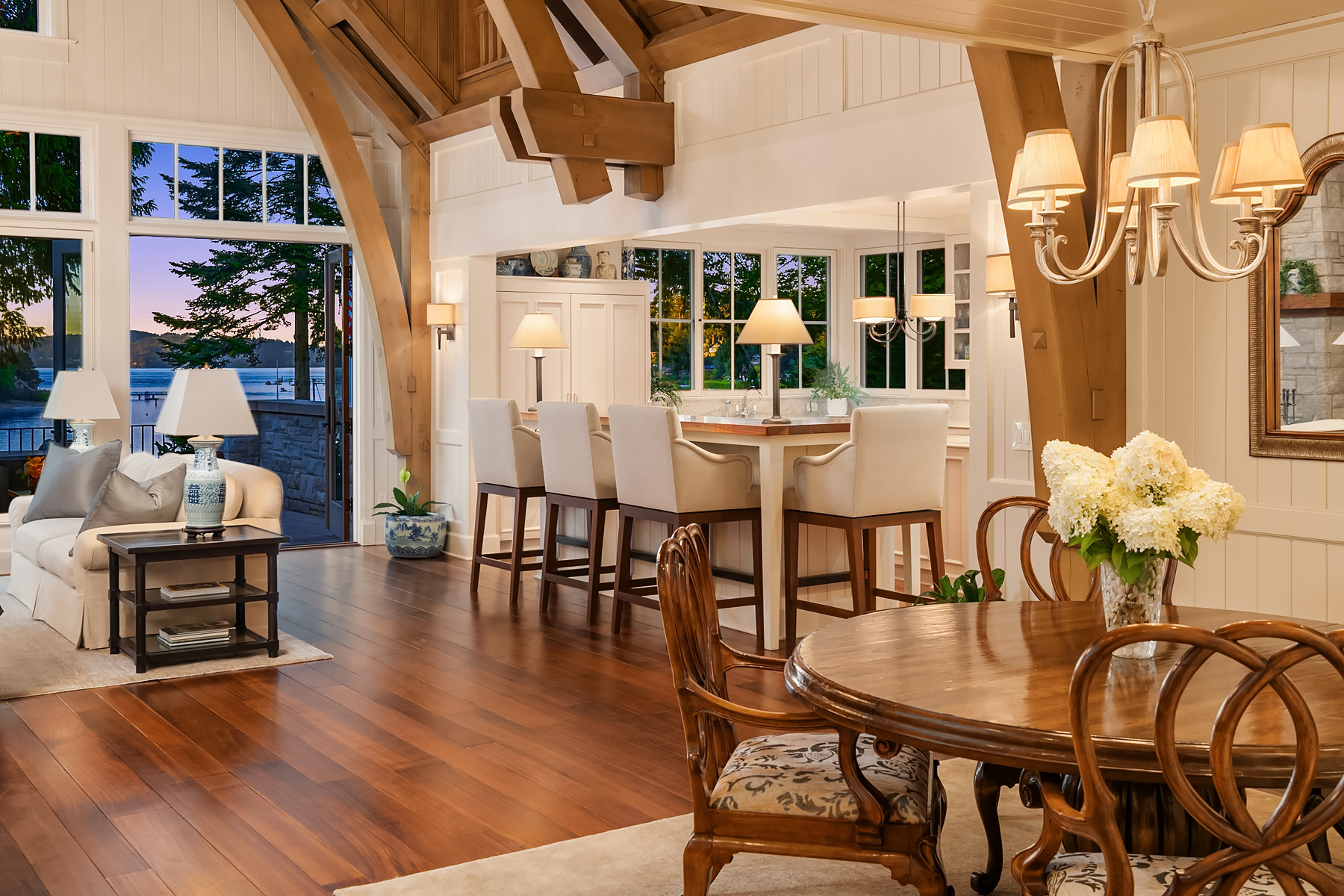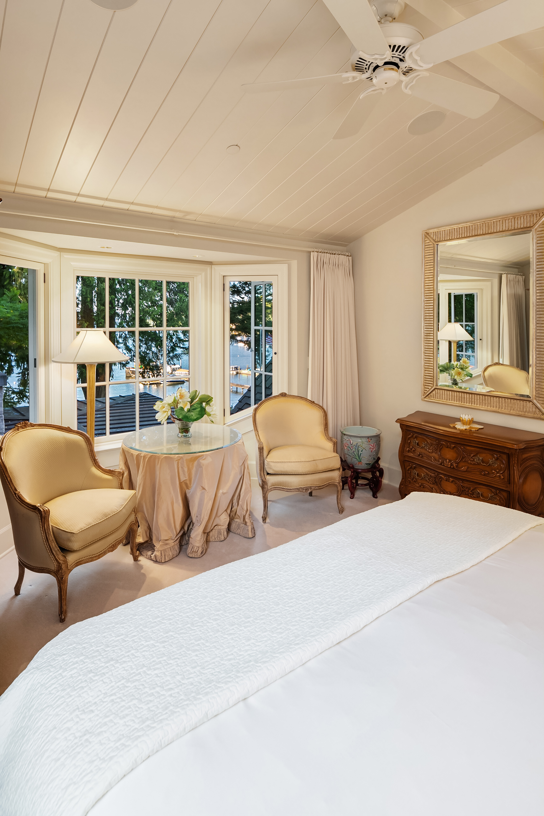 This magnificent custom home is beautifully nestled on the shores of Port Madison. Meticulously designed by the sellers and architect Robert Maloney, Fairbank Construction completed the home in 2013. Lush landscaping with stately rock wall and stone walkways lead to the deepwater dock that includes two buoys. Two private offices, gym, fly fishing room, and wine cellar. A private guest house with French doors out to the gardens with peaceful island views completes this breathtaking island estate.