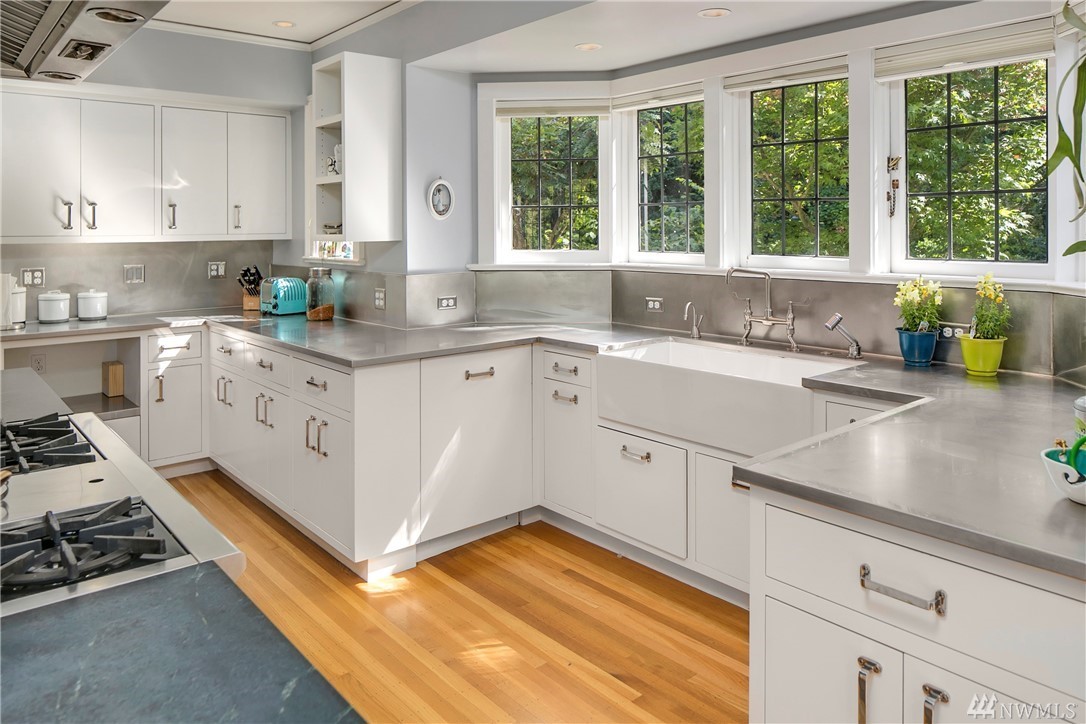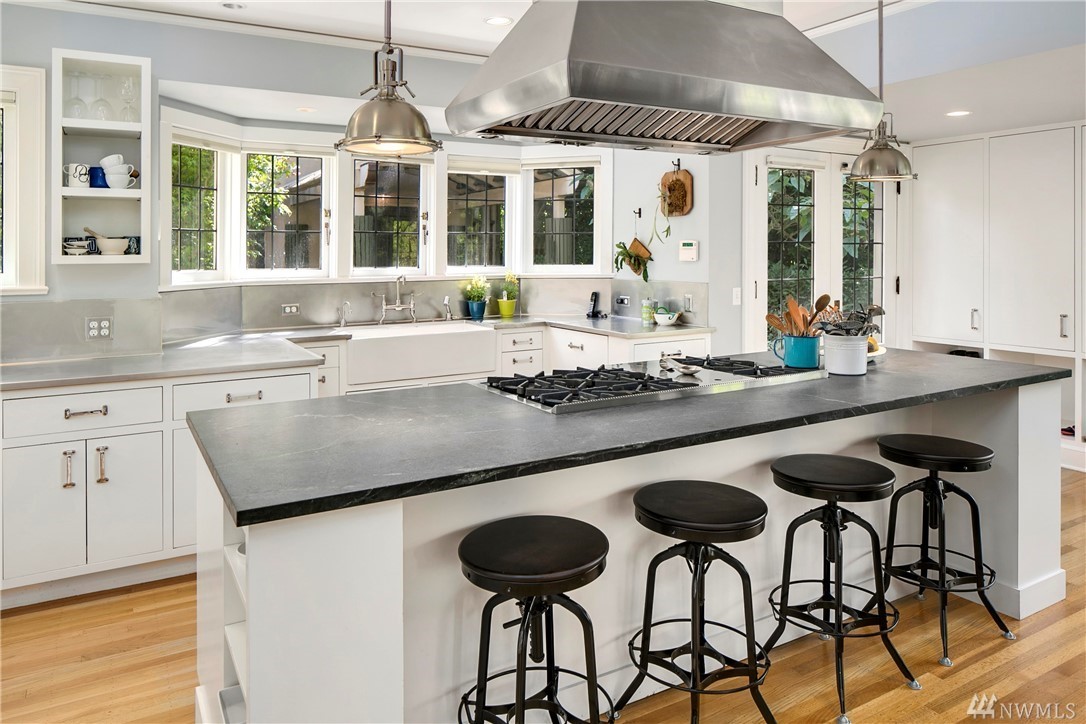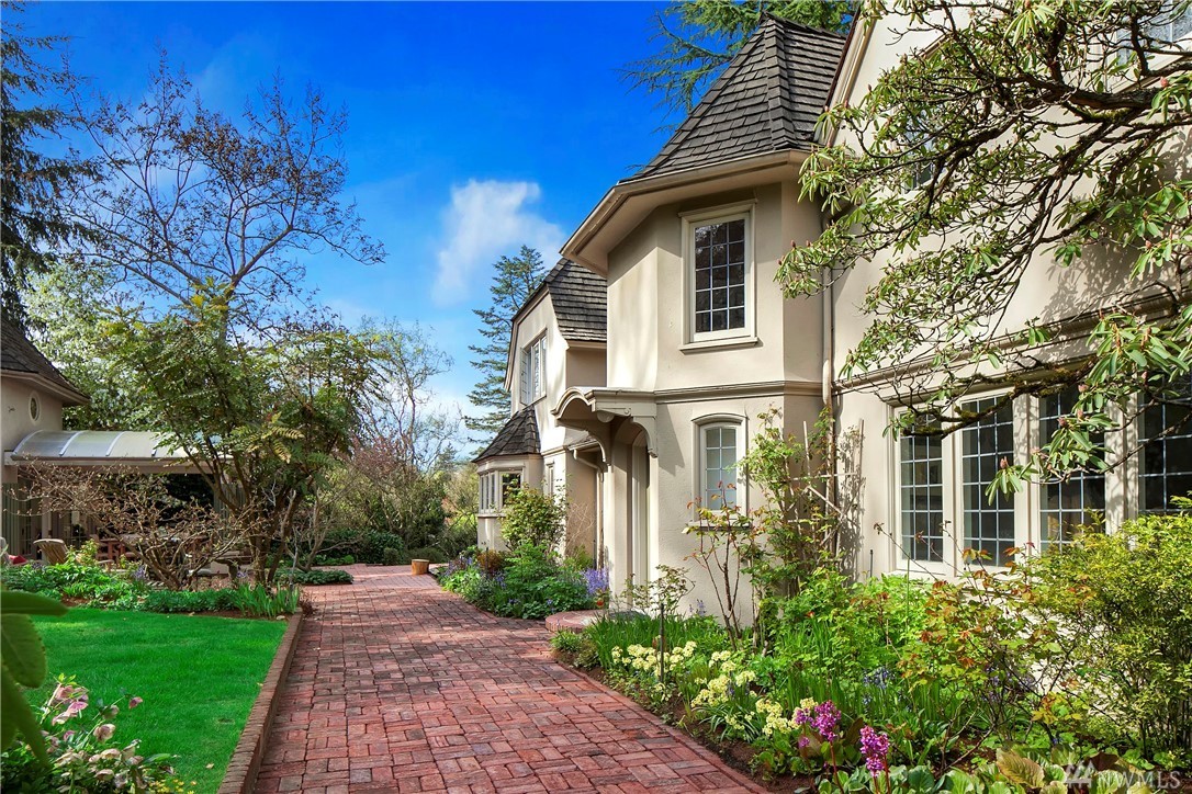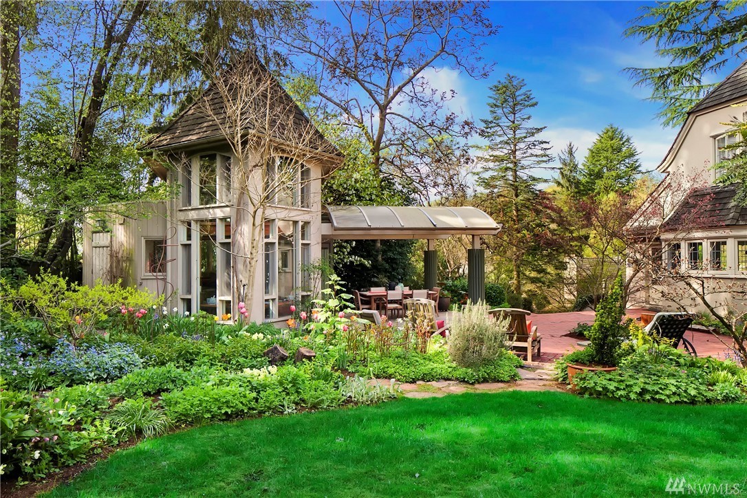 Perched on a wonderfully landscaped & private 27,635 sqft lot, this elegant storybook home features grand spaces & elegant, modern finishes. Refined formal rooms are bathed in sunlight that filters in through leaded glass windows & the gleaming hardwoods & period detailing combine with a sophisticated level of finish to create the perfect combination of old & new worlds. The grounds features a charming, artist's studio with loft & lovely 1360 sqft 1 bd/1bth apartment over a 2 car carriage house.