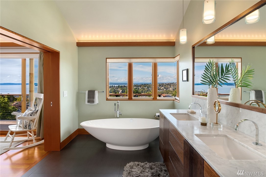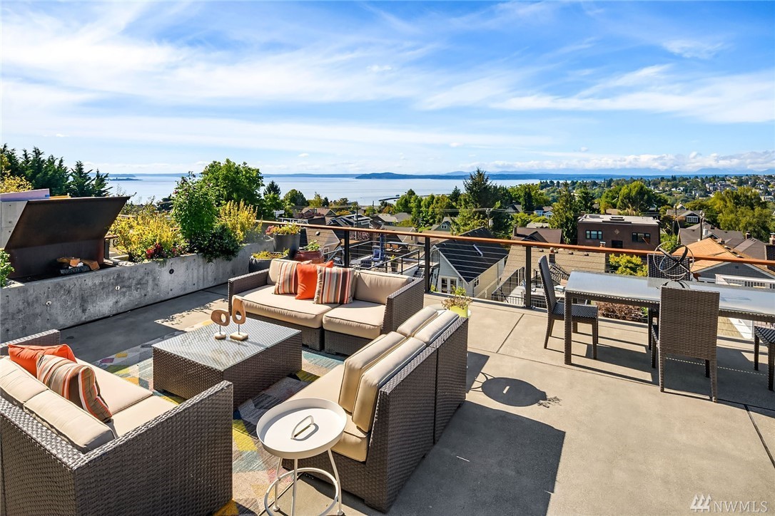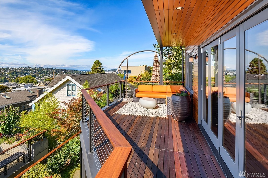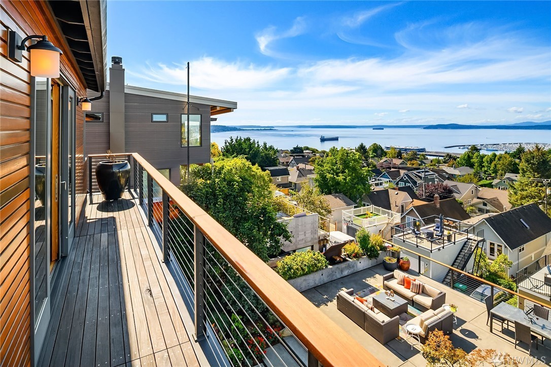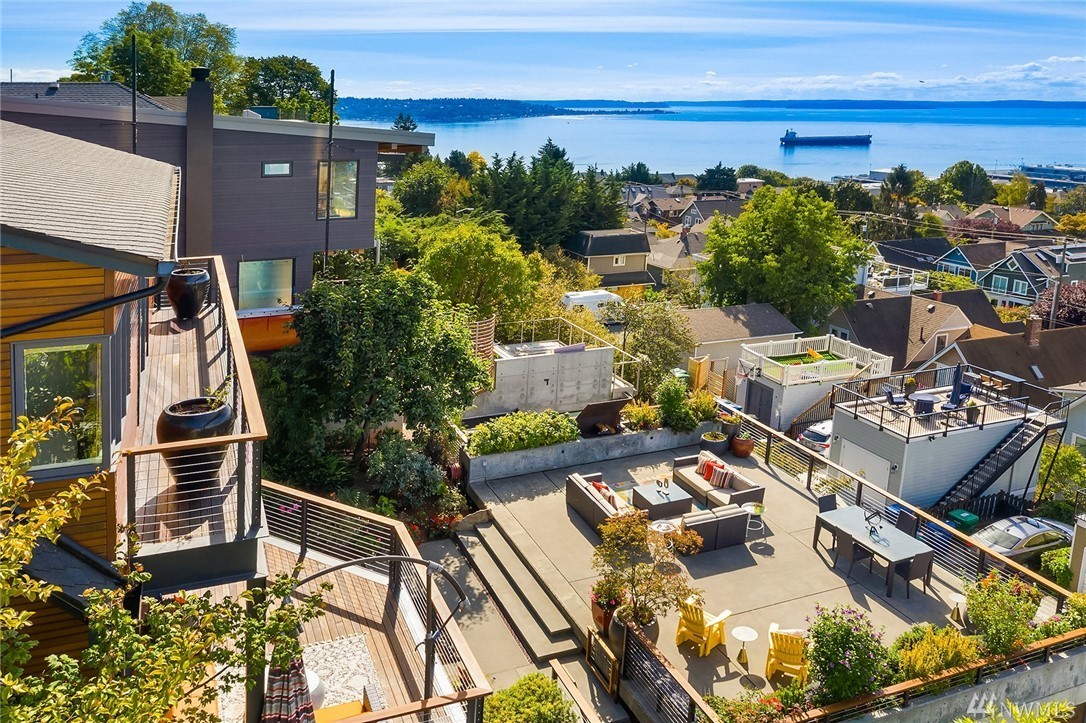 Modern 7200sqft Queen Anne estate with 4 levels of unobstructed views of Elliott Bay, Olympic Mountains, & beyond. Originally built in 1906, with a masterful and comprehensive rebuild completed in 2010, the main house features 4 beds/4 baths, two balconies, wine cellar, home theatre, home office & more. Atop the 3 car hobbyist garage sits the 1 bed/1bath, 874sqft ADU with separate entrance and side yard. Whether working from home, playing at home or retreating at home, this marvel tops them all.