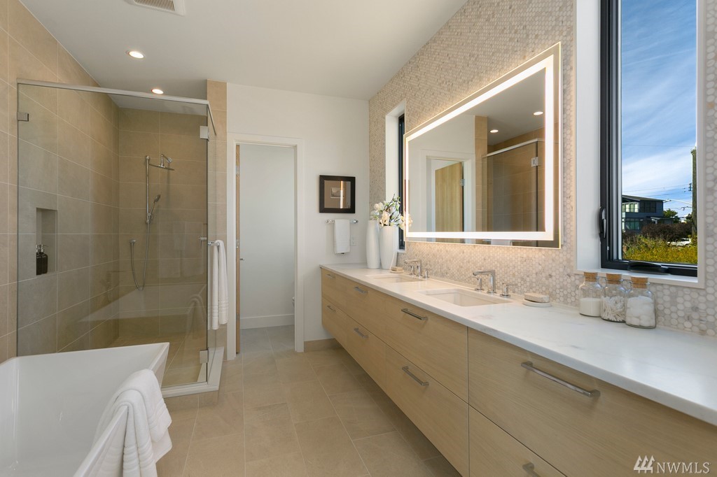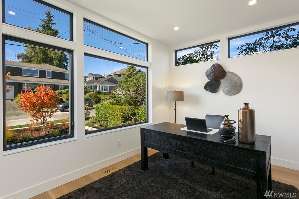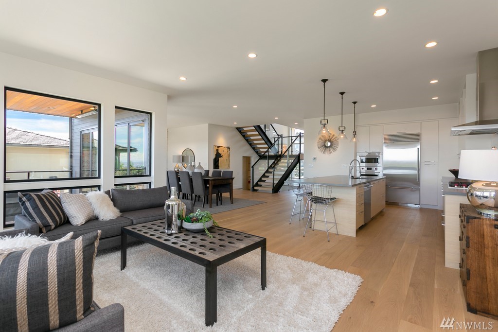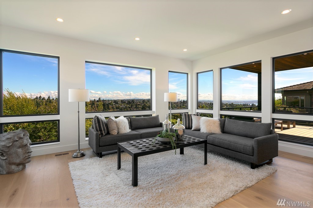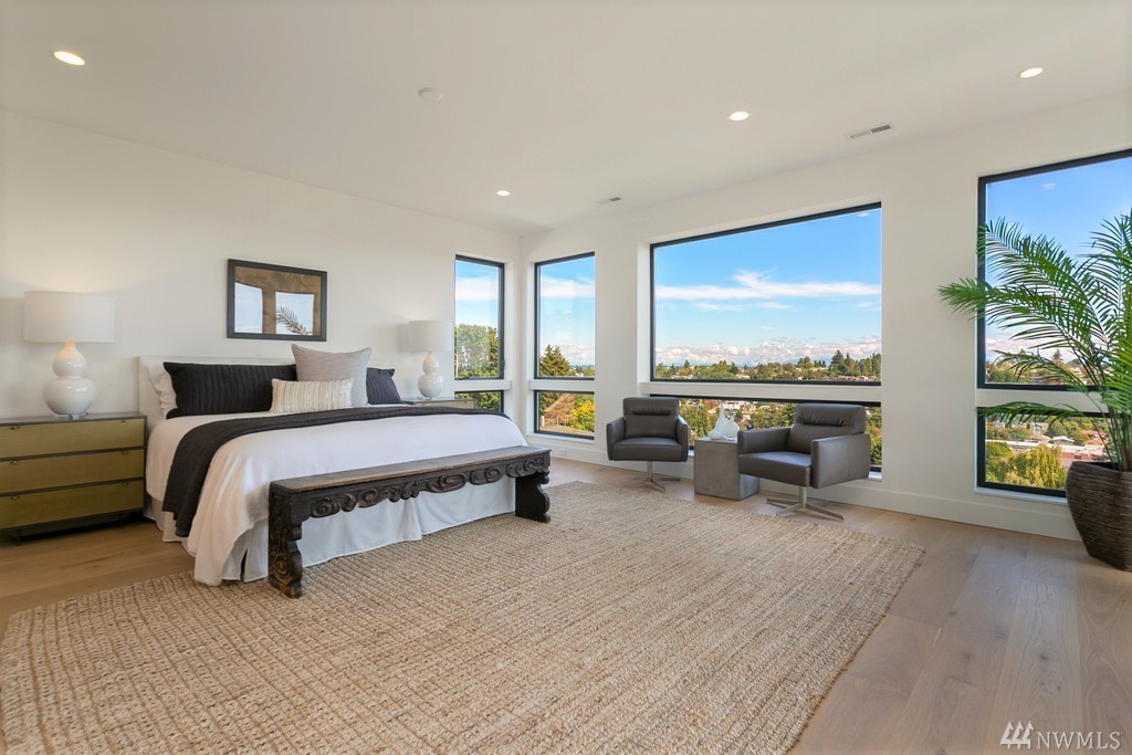 New Construction! Thoughtfully designed state of the art home located in one of Seattles premier neighborhoods. Expansive wall of windows frame panoramic city, sound and mountain views. Floating steel staircase with glass railings create open seamless flow, epicurean kitchen with Wolff & Sub-Zero appliances, wide plank oak floors, heated deck, sauna, A/C, spacious level yard with irrigation & lighting. Exceptional build quality at every turn. Minutes to Magnolia Village and Discovery Park!
