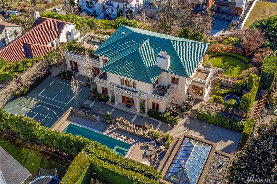 Commissioned in 1928, the landmark Gibbs House sits on a gated, in-city compound on Queen Anne's fabled South Slope. Featuring iconic views of the City & Sound + unrivaled construction, this meticulously restored jewel is on an exquisite 18944 SF lot with manicured landscaping, sport court, elevated pool with adjoining 530 SF cabana & outdoor kitchen space; 2 large 2-car garages, potting room & terraced garden. Elegant formal spaces and wondrous views, a truly stunning historic Seattle property.