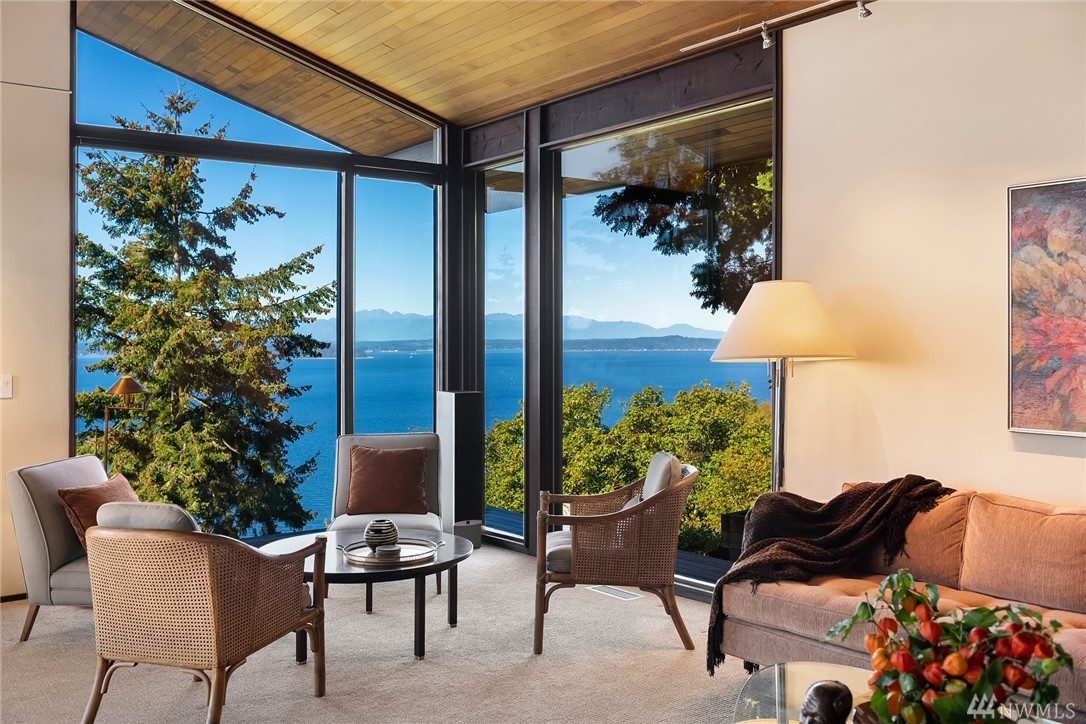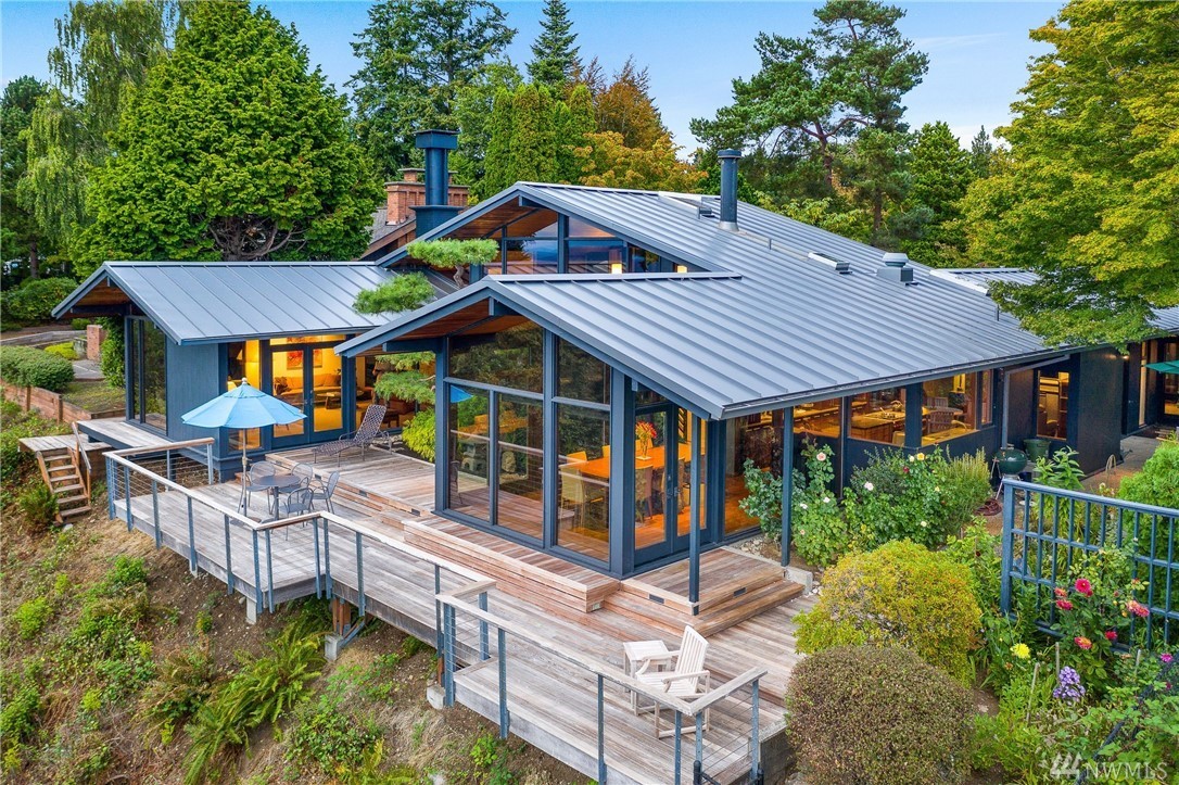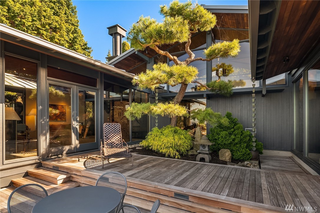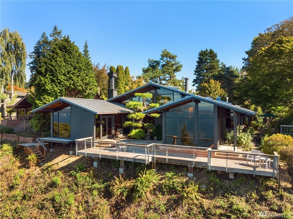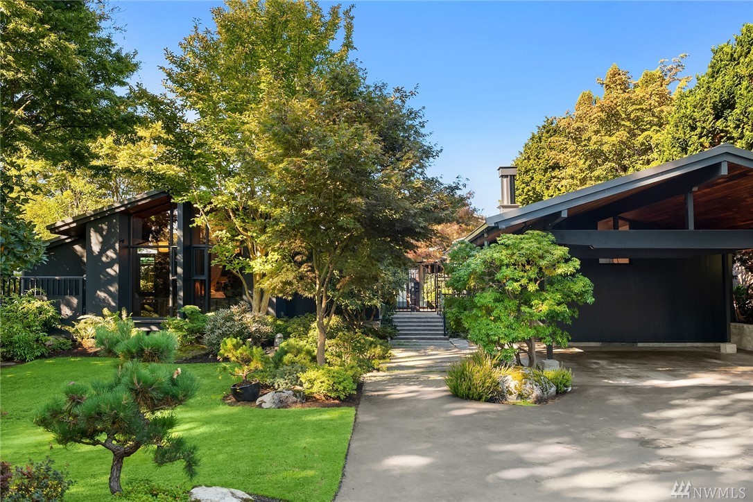 A stunning Bumgardner mid-century modern view home, re-imagined by Trogdon w/award winning results. Meticulously maintained & updated w/seamless style & attention to detail. Million dollar views- lovely AND protected w/partial ownership of 10 acre preserve. The stunning grounds surround the home w/lush Northwest Asian gardens offering ultimate privacy, dual patios & large view deck. Chef's kitchen, sunken double sided fireplace, glass surround dining room, cozy family room, & loft office space. Detached studio perfect for 2nd office, home gym, art studio, or ??? Situated on a premium lot w/home at the furthest point forward on the bluff. The home has pedigree, multiple press, awards. A special & unique opportunity for a discerning buyer.