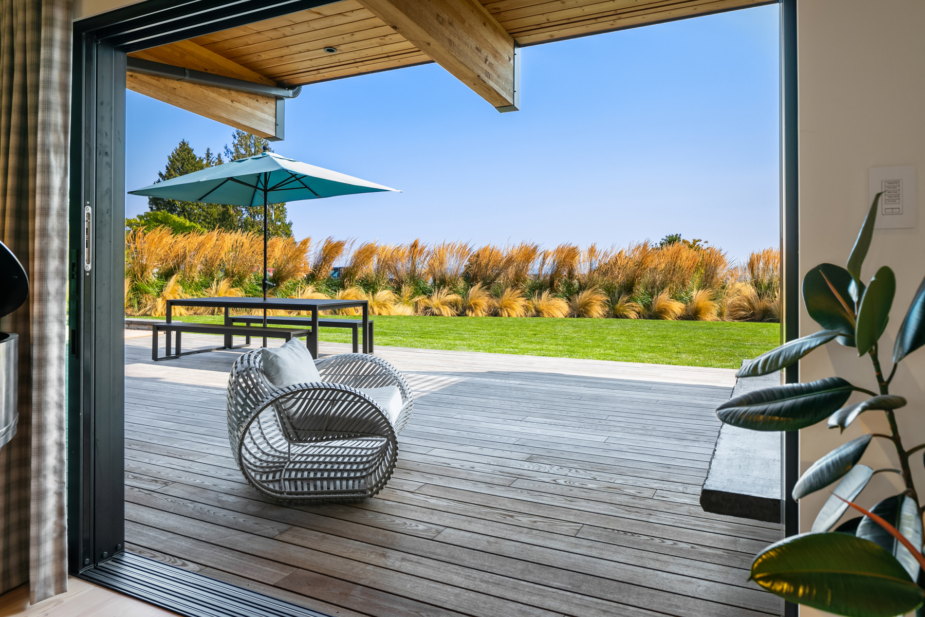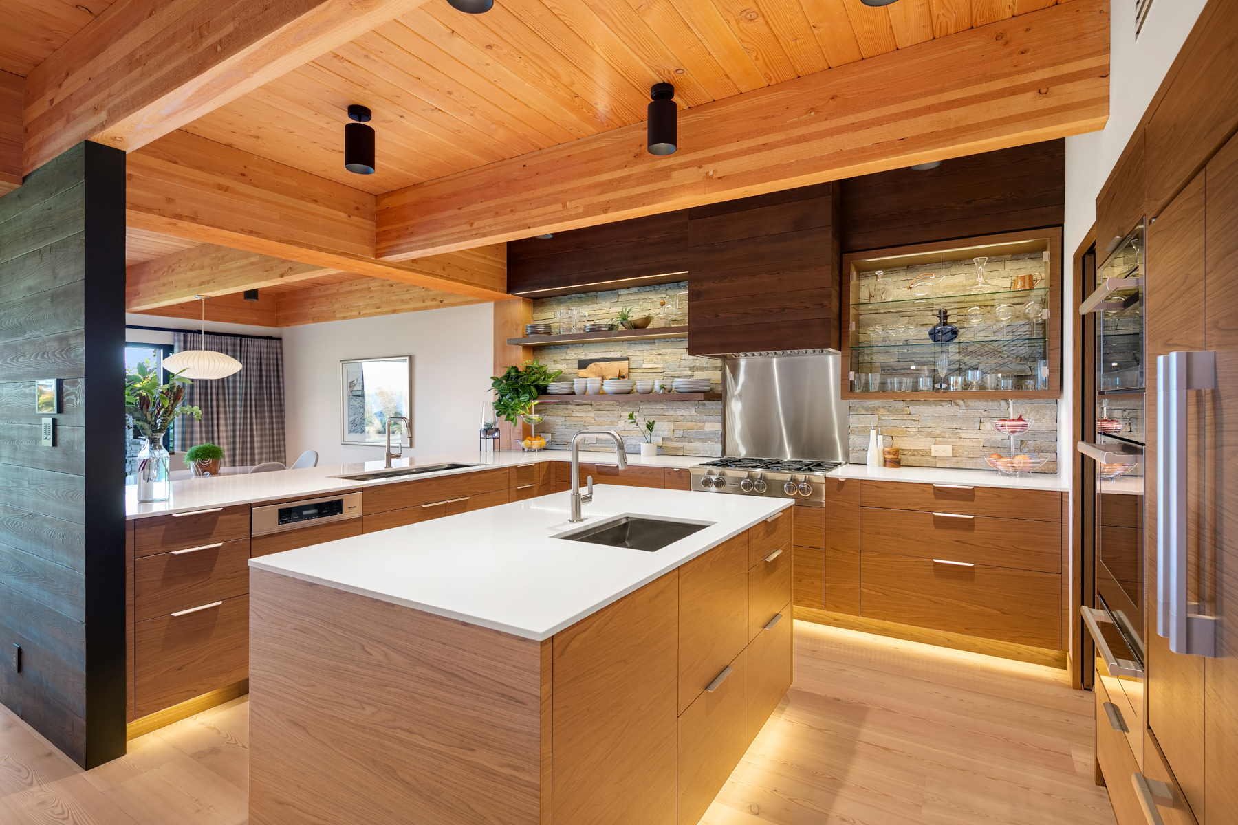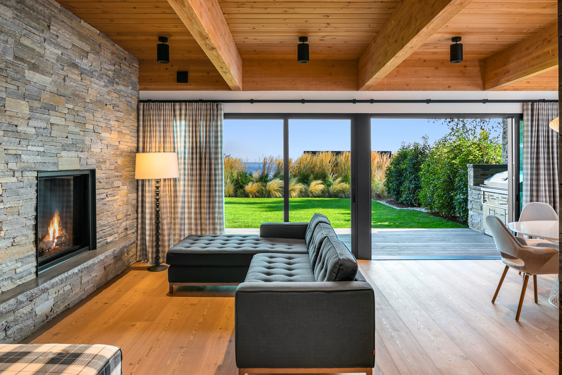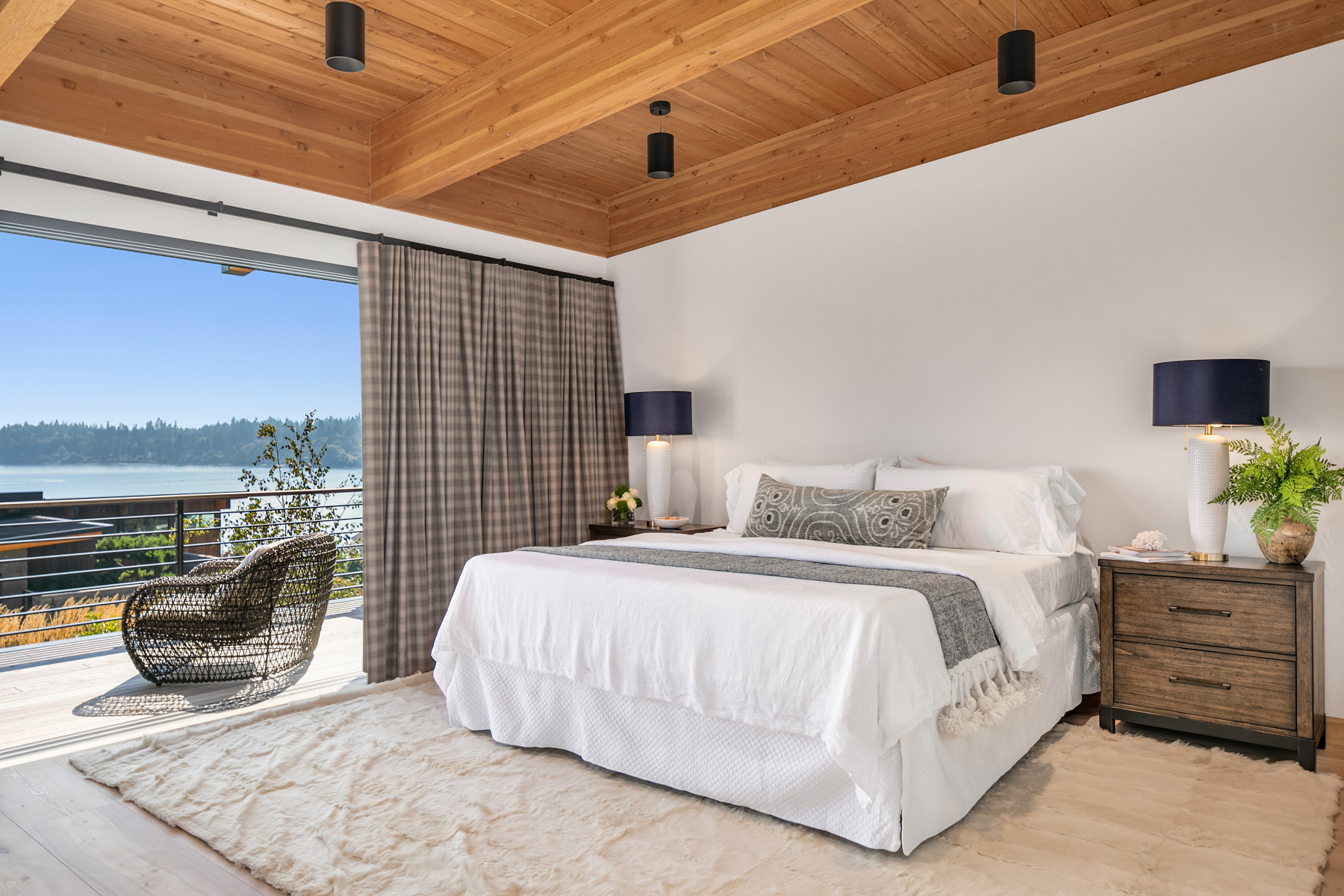 Welcome home to this stunning custom designed contemporary retreat and the peaceful water, island and city outlook. Thoughtfully built with exquisite attention to detail, filled with coveted south facing sunlight, the house features 3 en suite bedrooms and a chef's kitchen. Walls of glass open to an expansive wood deck with a heated saltwater plunge pool, a double sided gas fireplace and a built-in grill. Nestled in a small enclave of luxury homes with private deeded beach access, close to the shops in vibrant Rolling Bay, settle in and enjoy views of the serene gardens, the boating activity in Puget Sound, Mt. Rainier and the sparkling lights of the Seattle skyline.